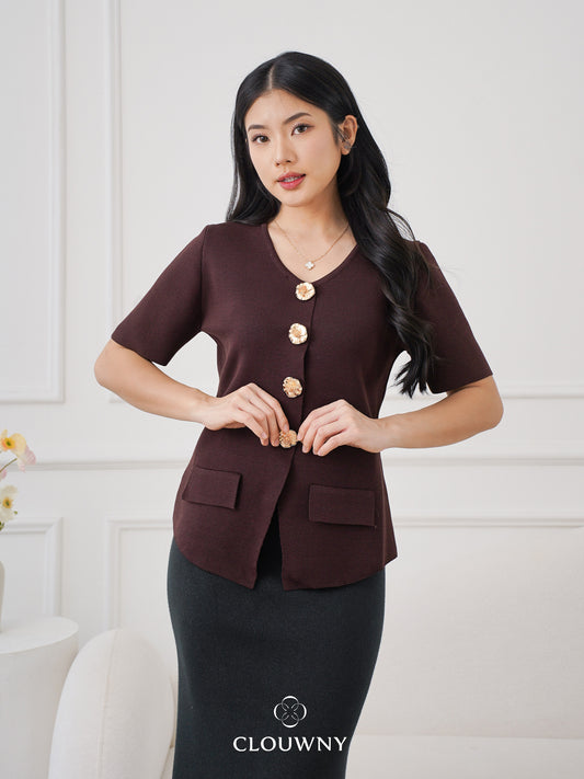Valencia Peplum Button Top - Coffee