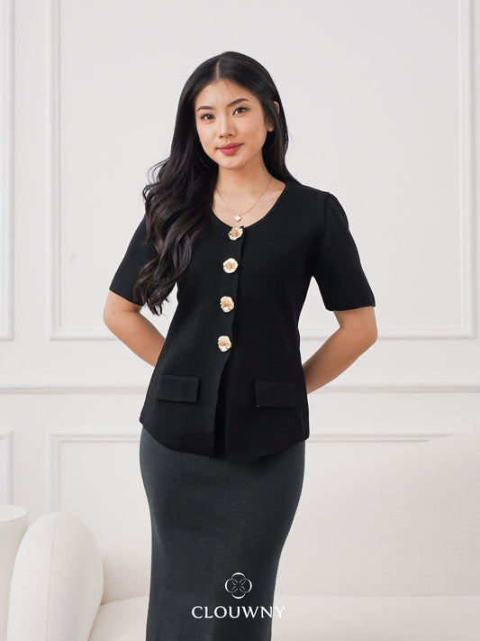 Christa Button Vest - Black