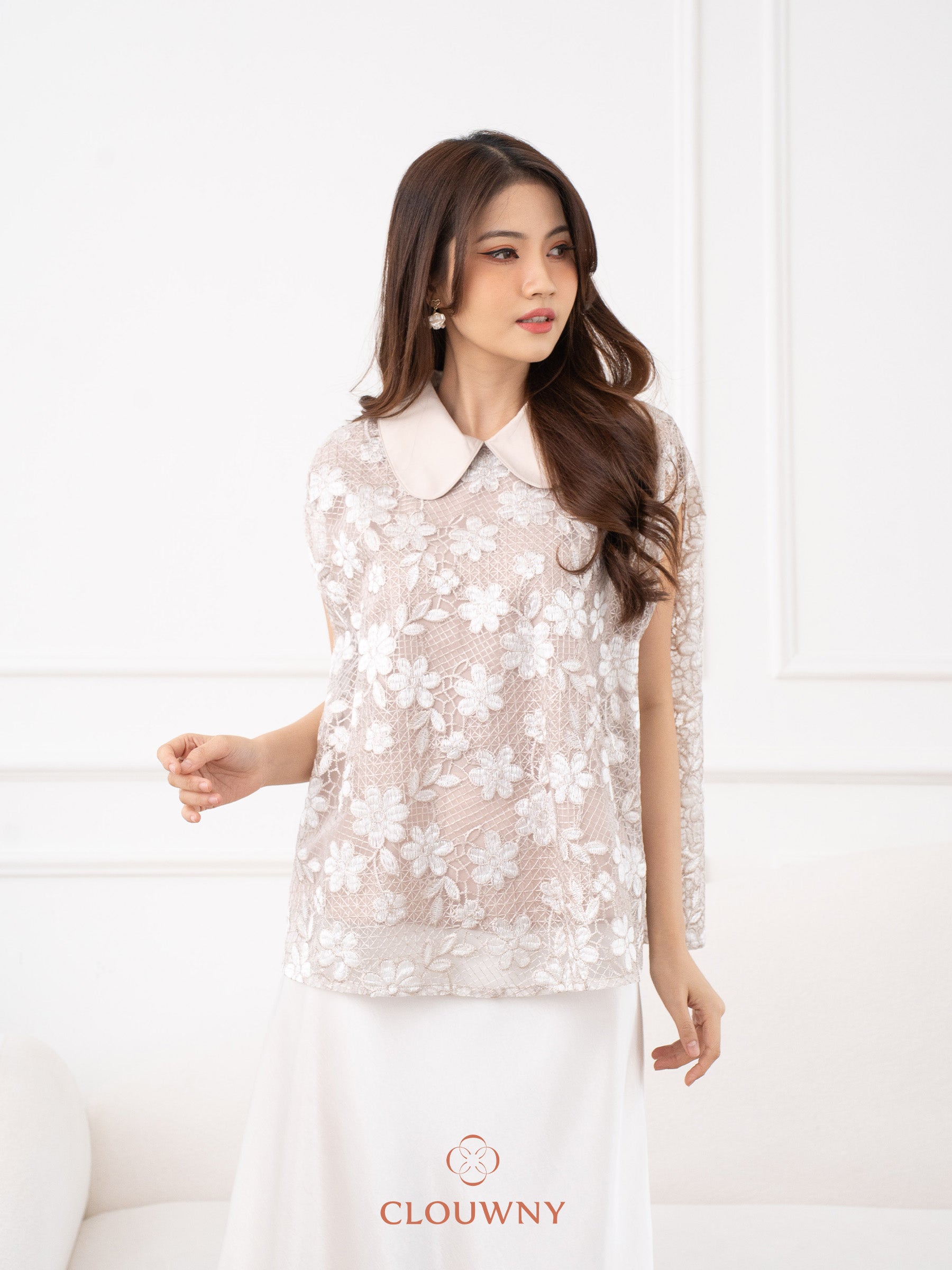 Bethari Collar Lace Top - Cream