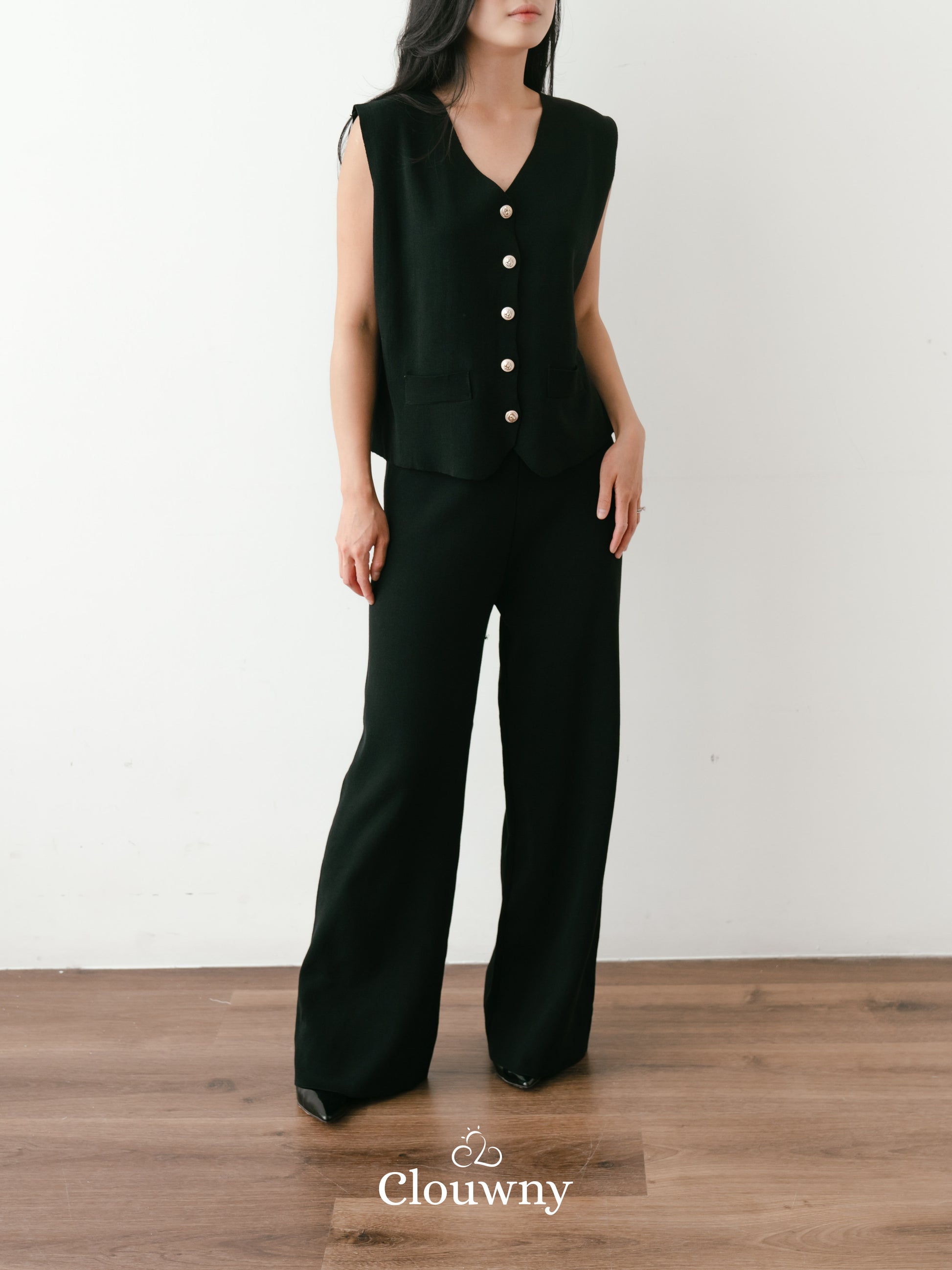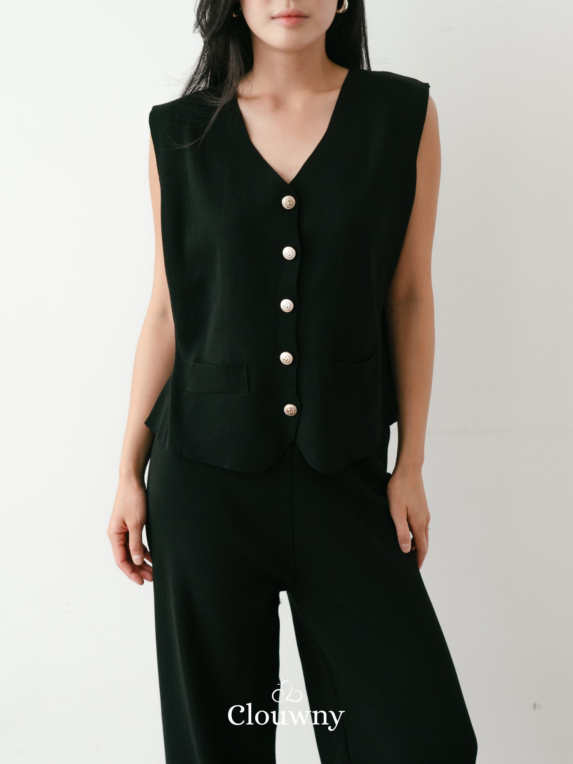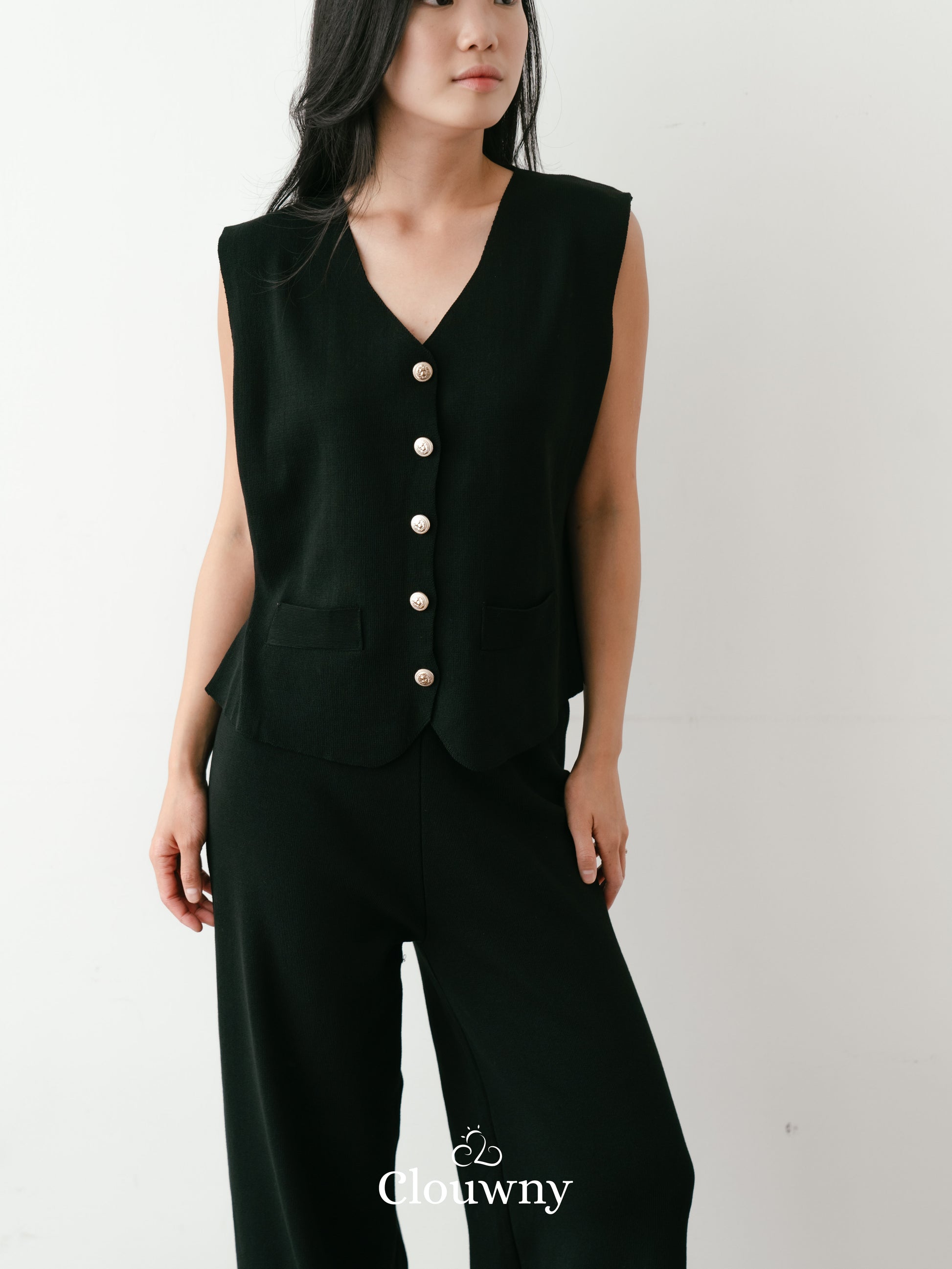 Amy Button Vest Set - Black