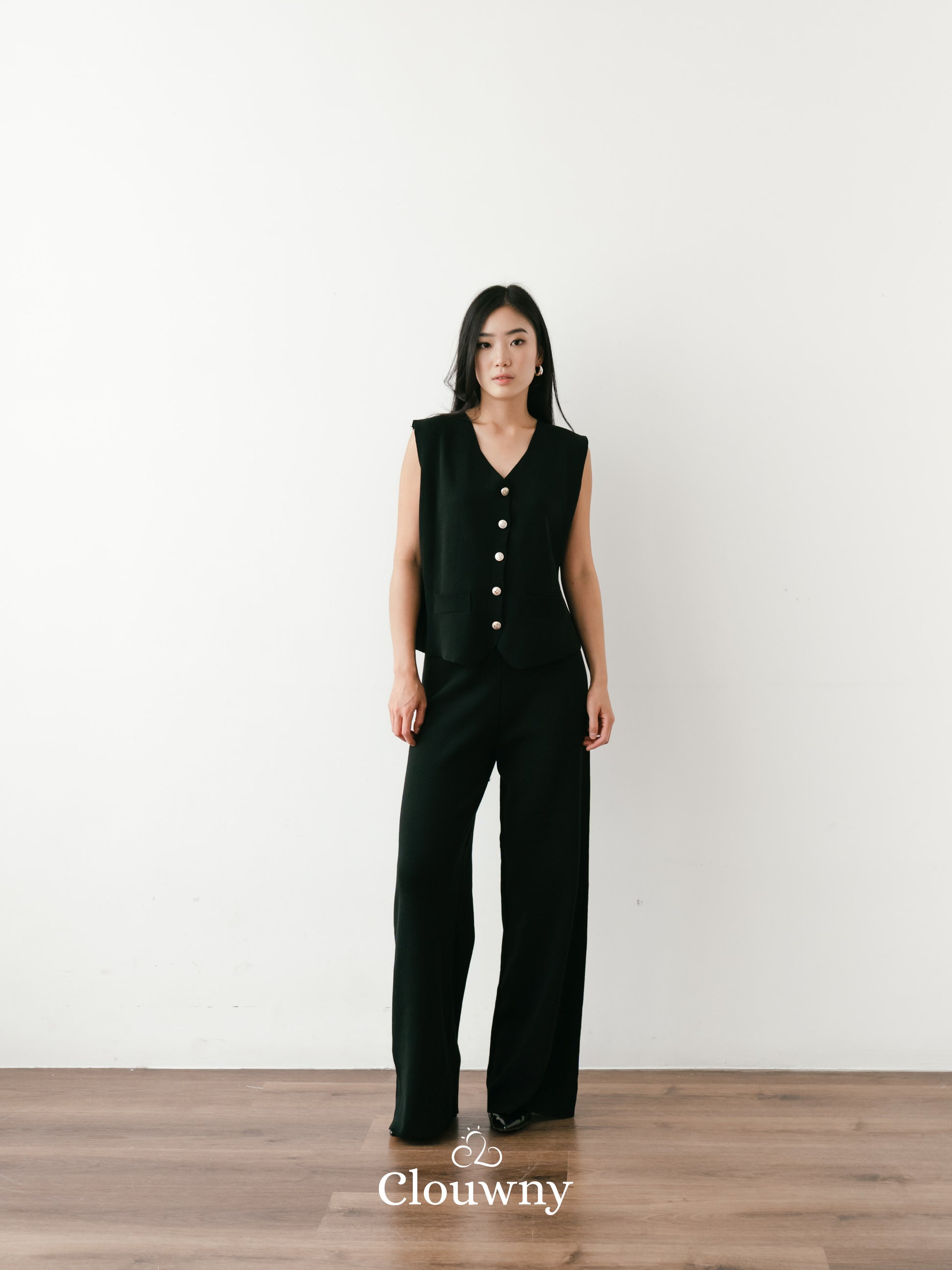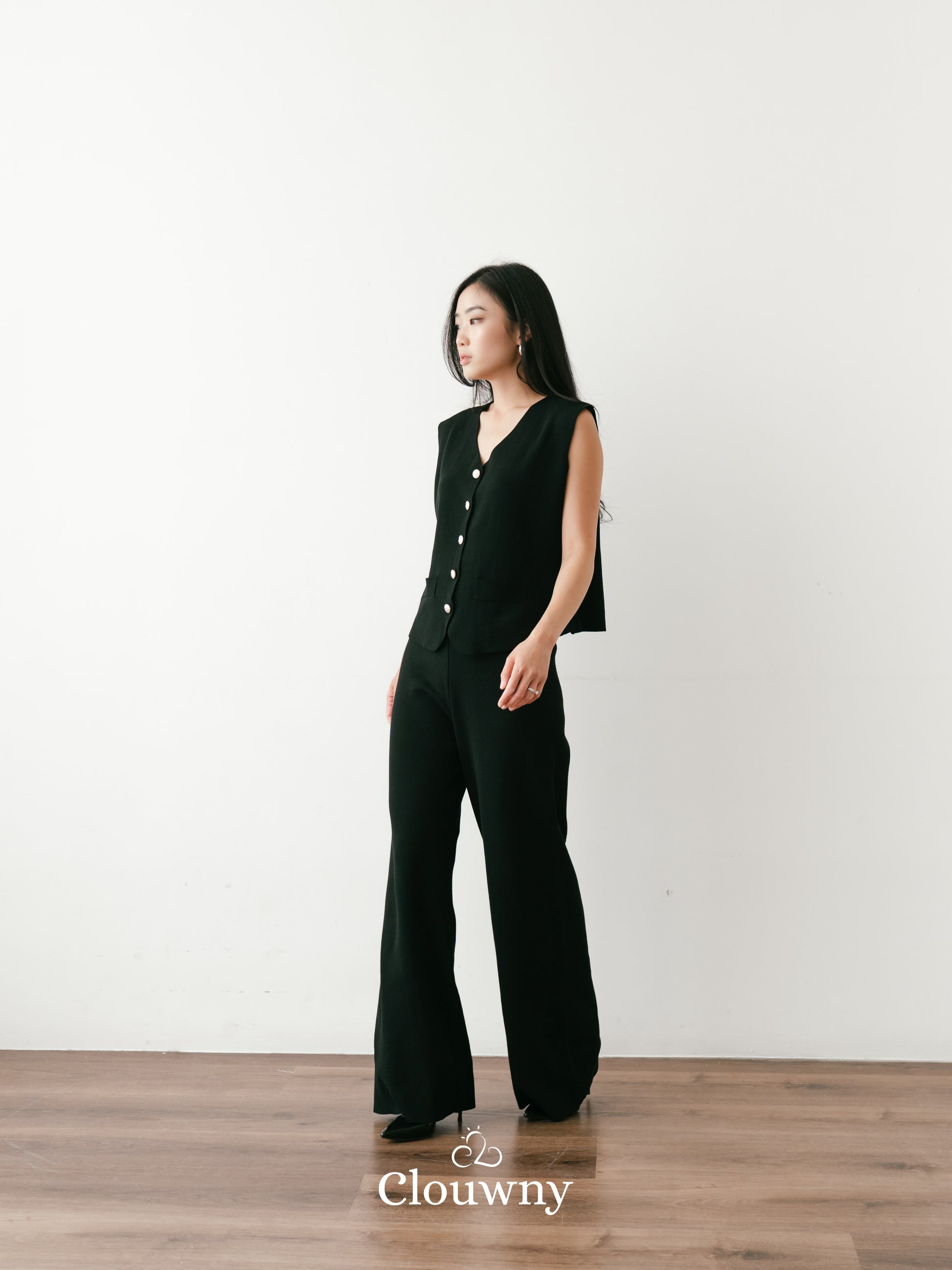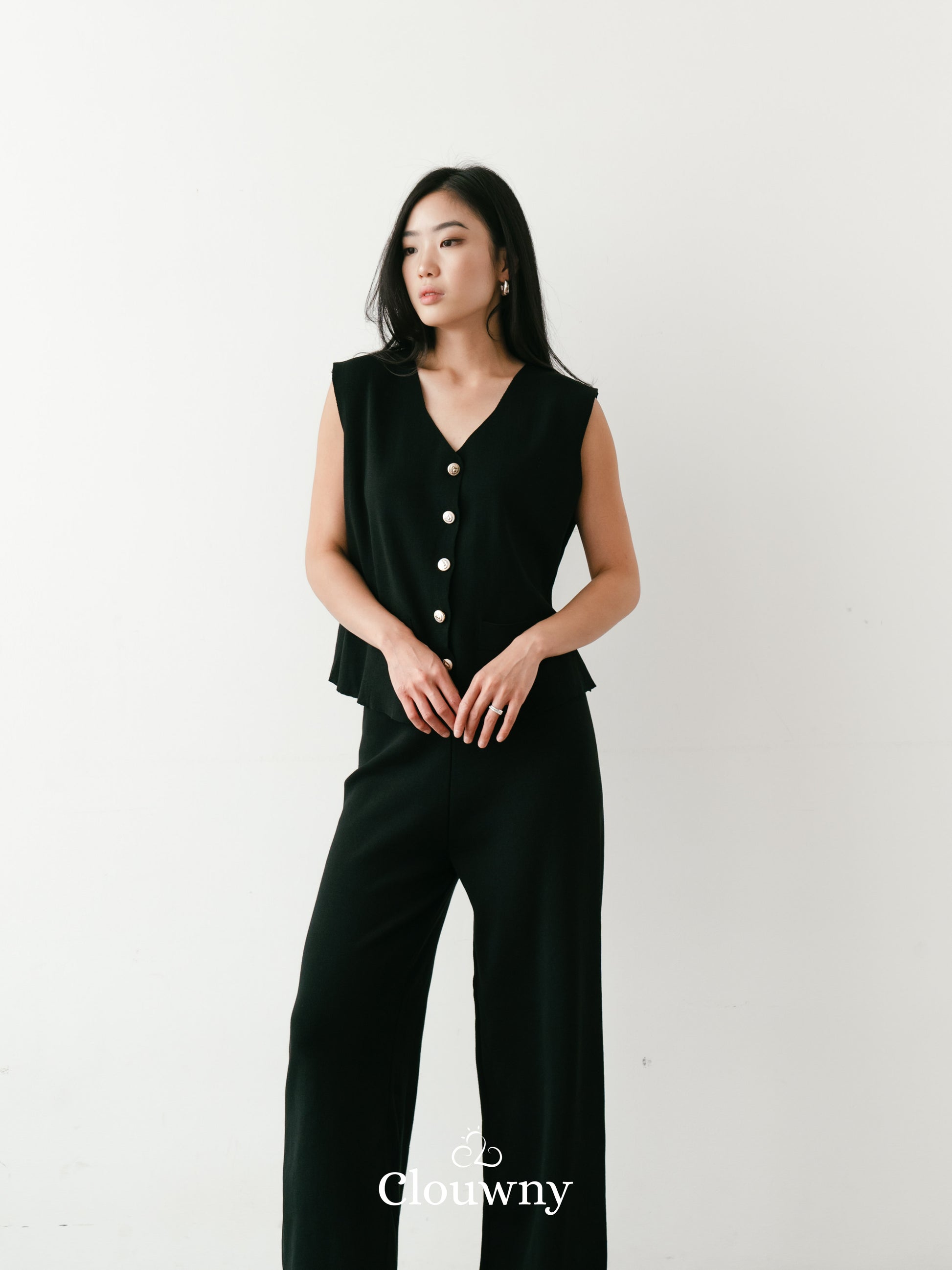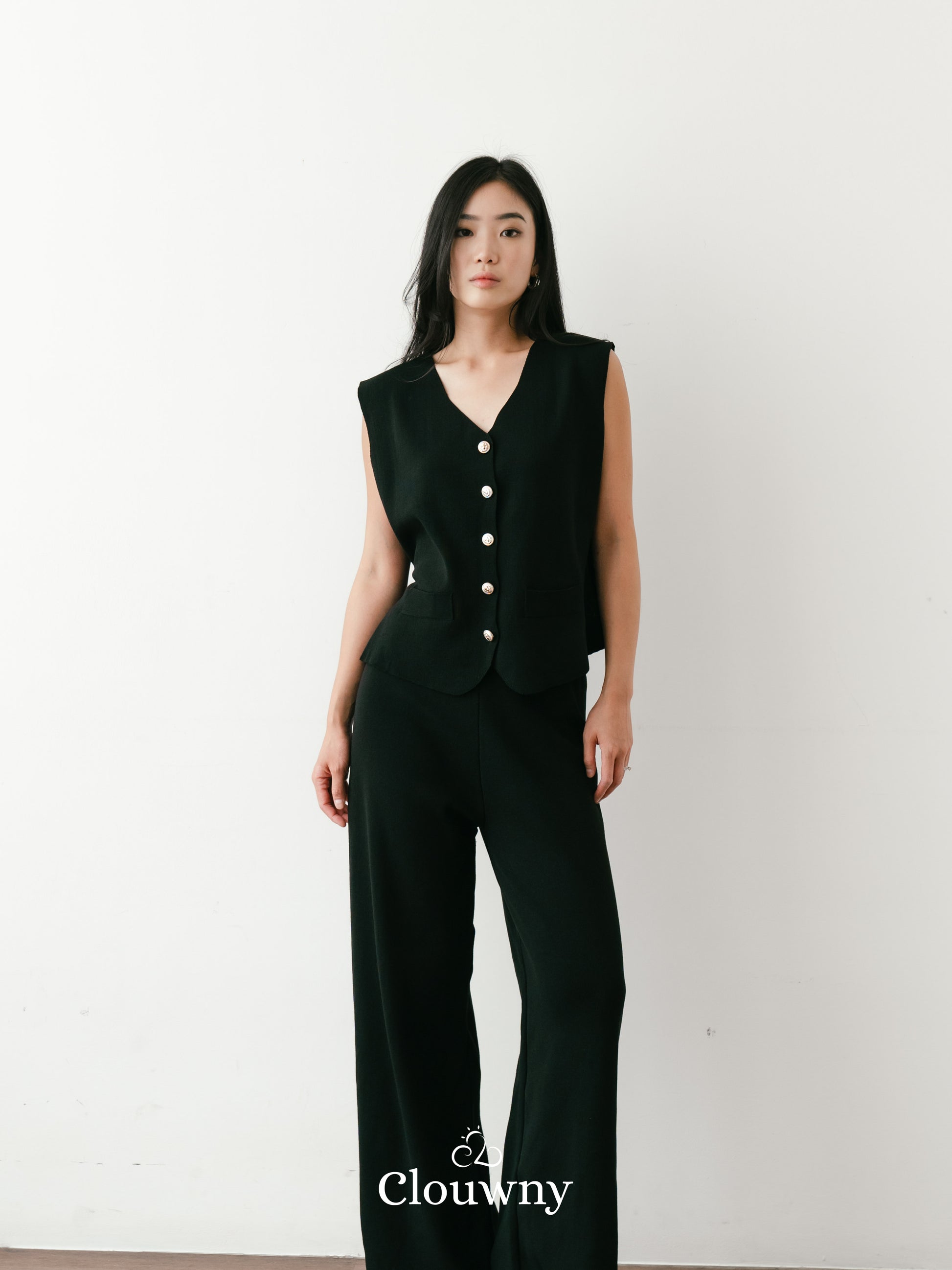 Amy Button Vest Set - Black