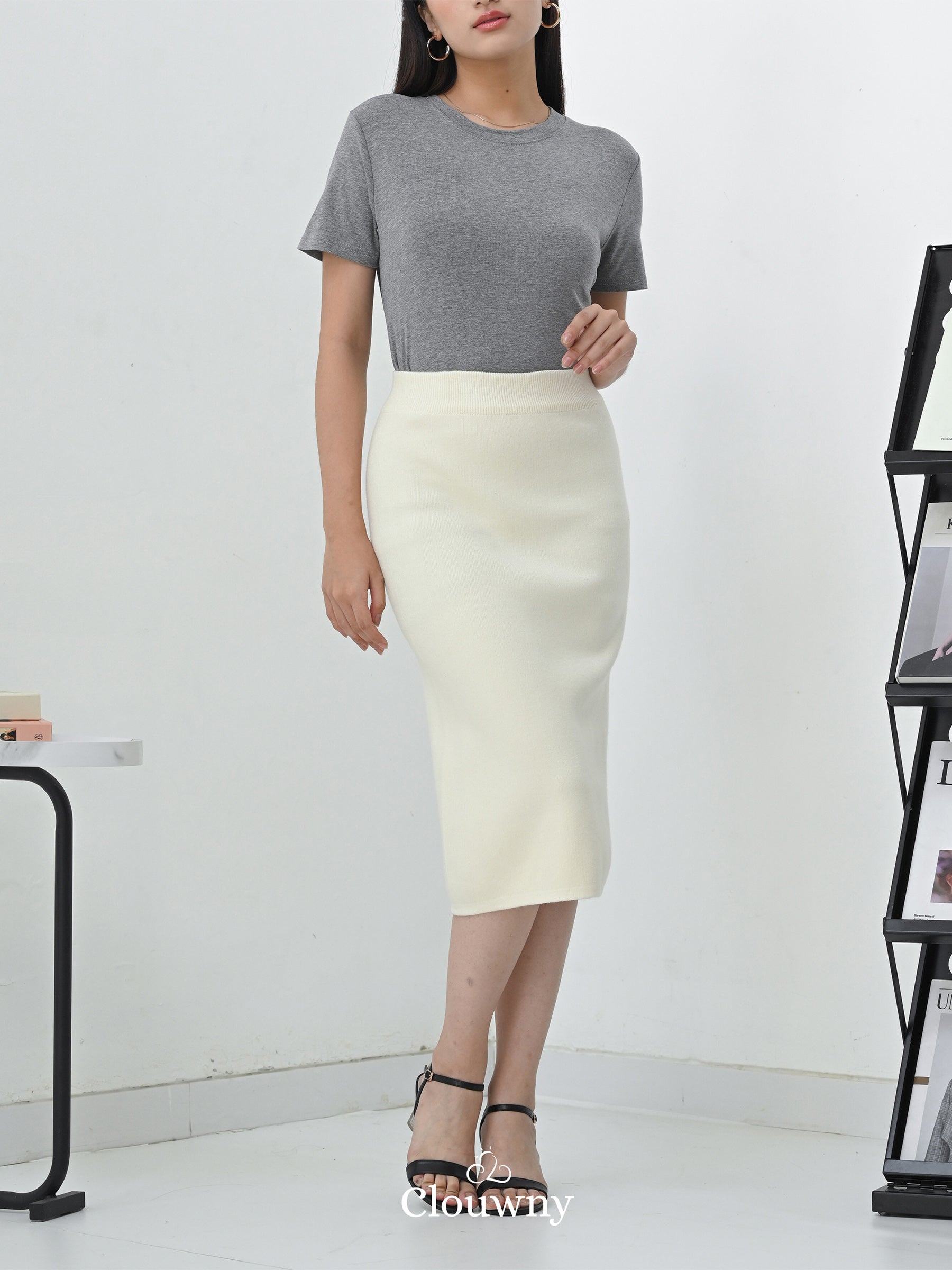 Betrand Basic Midi Skirt - Cream