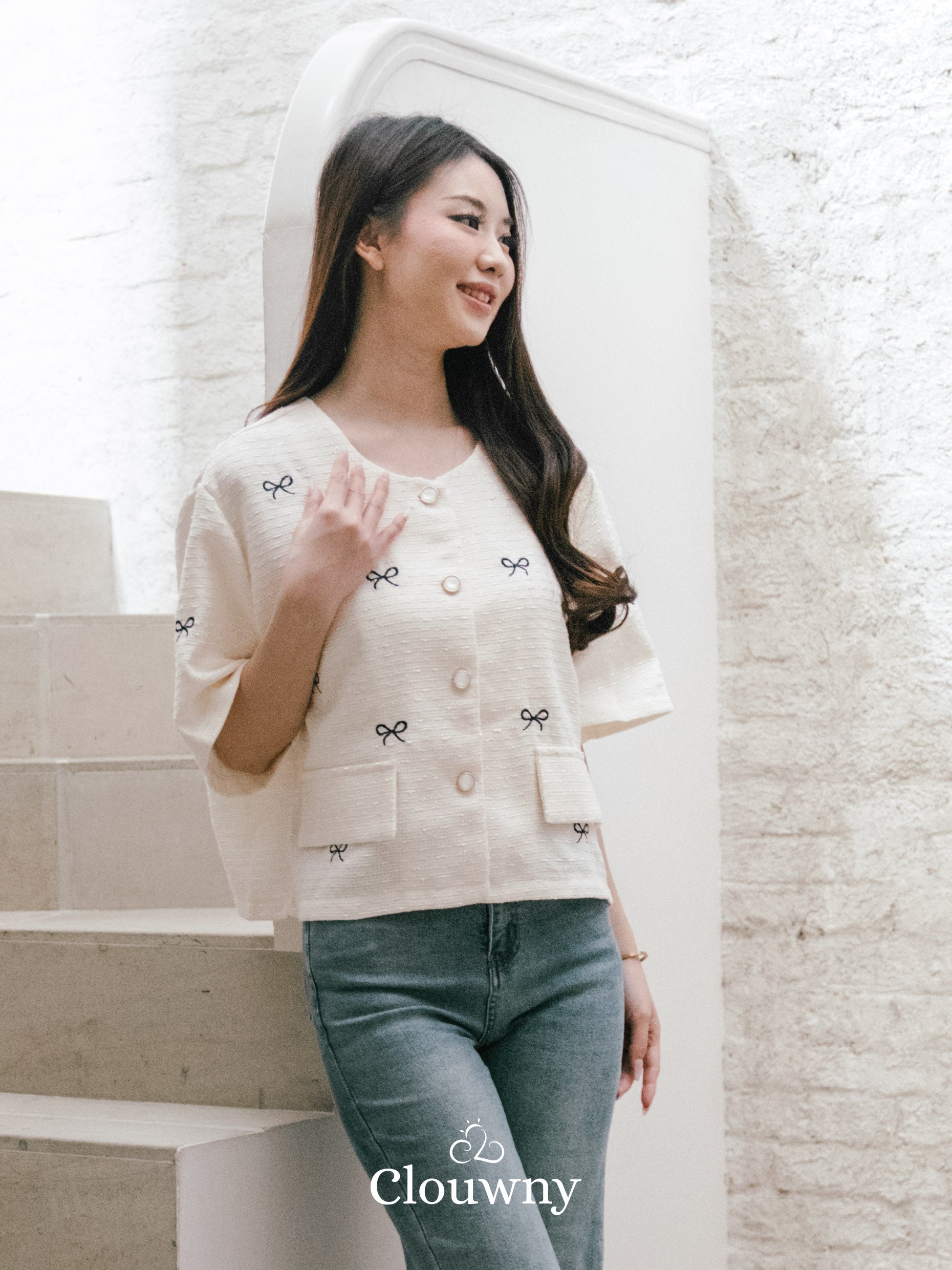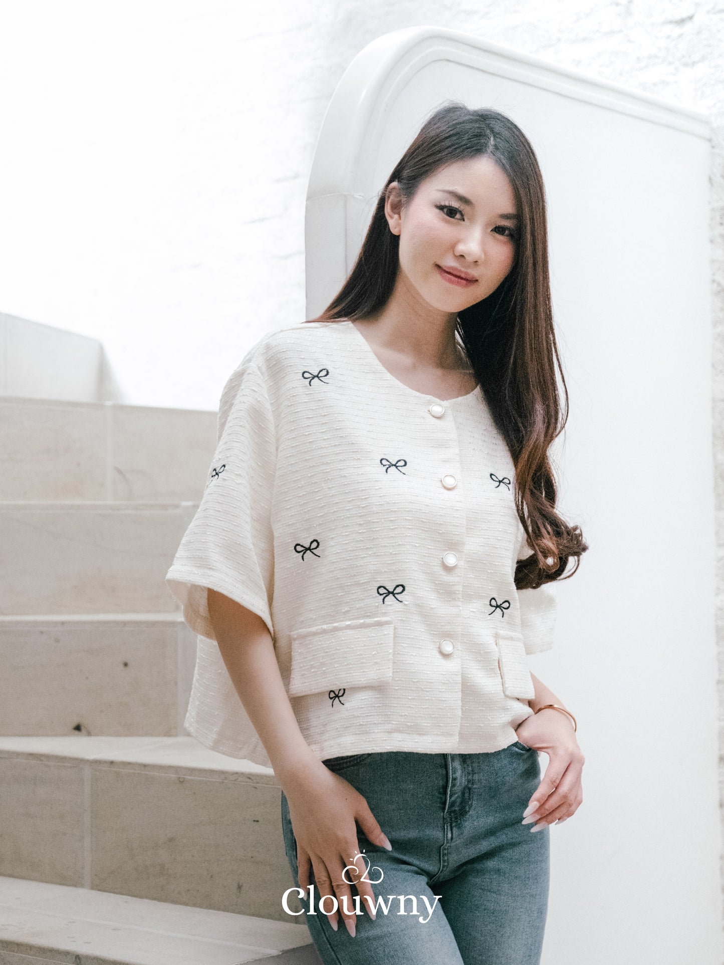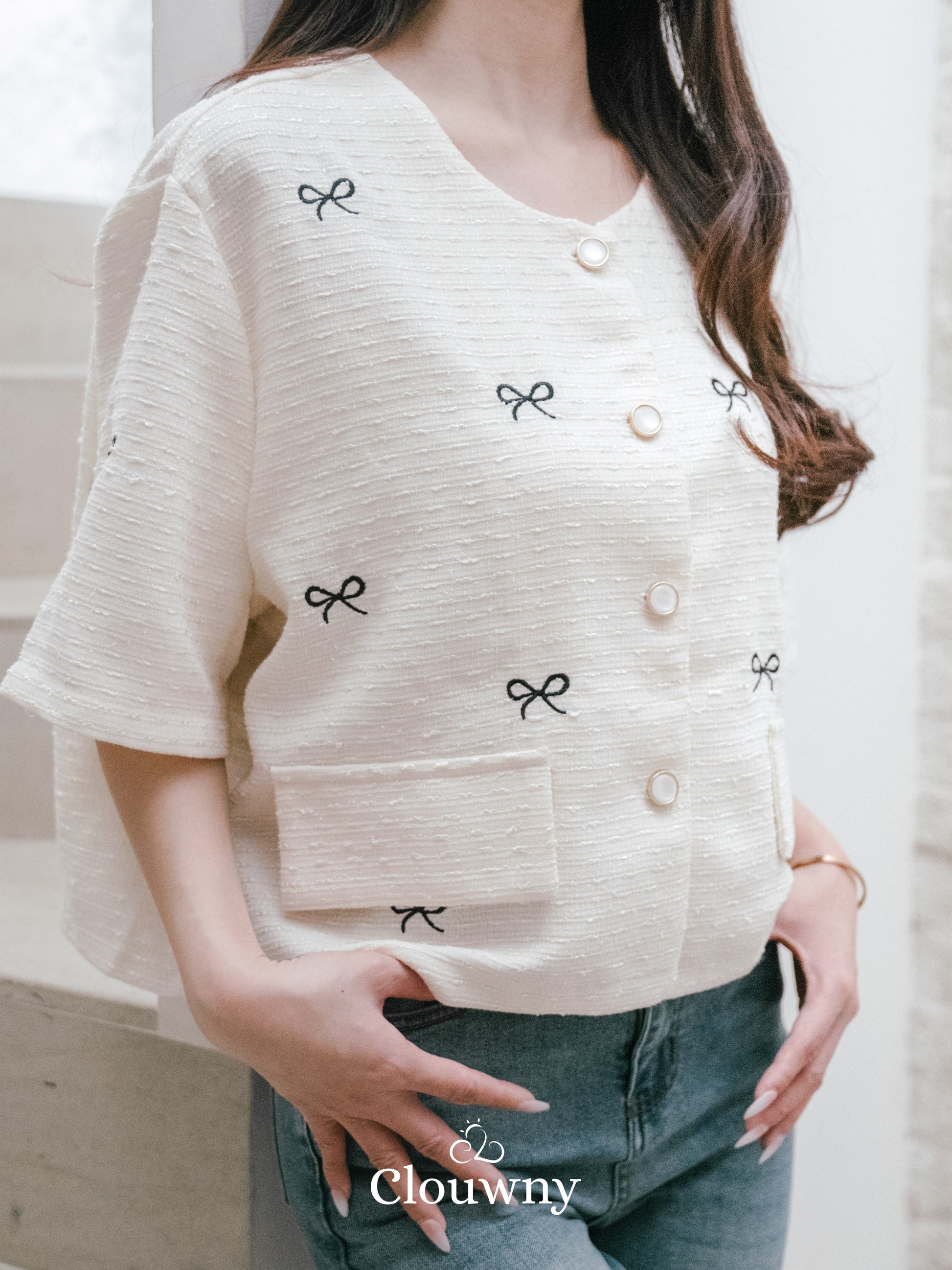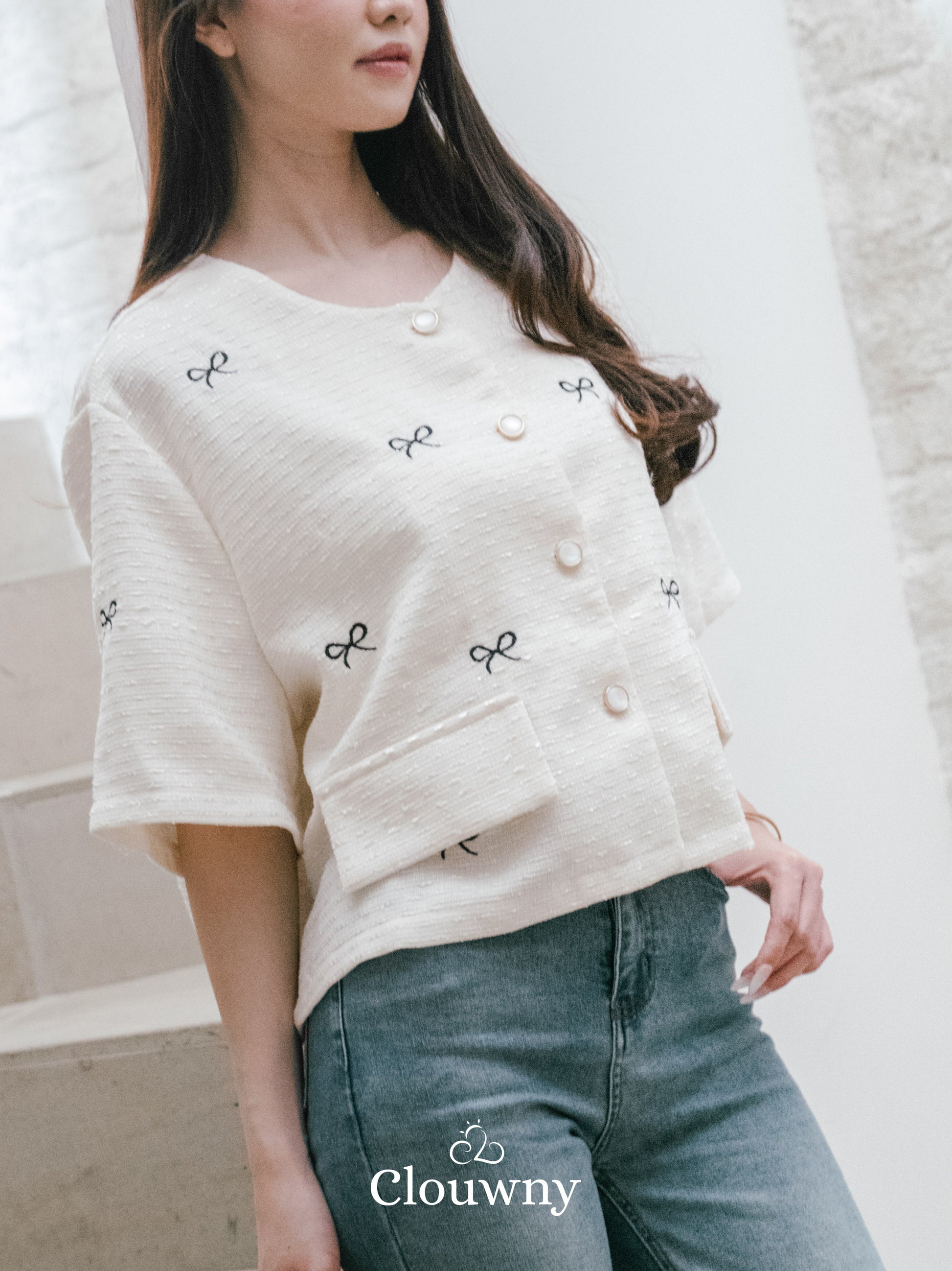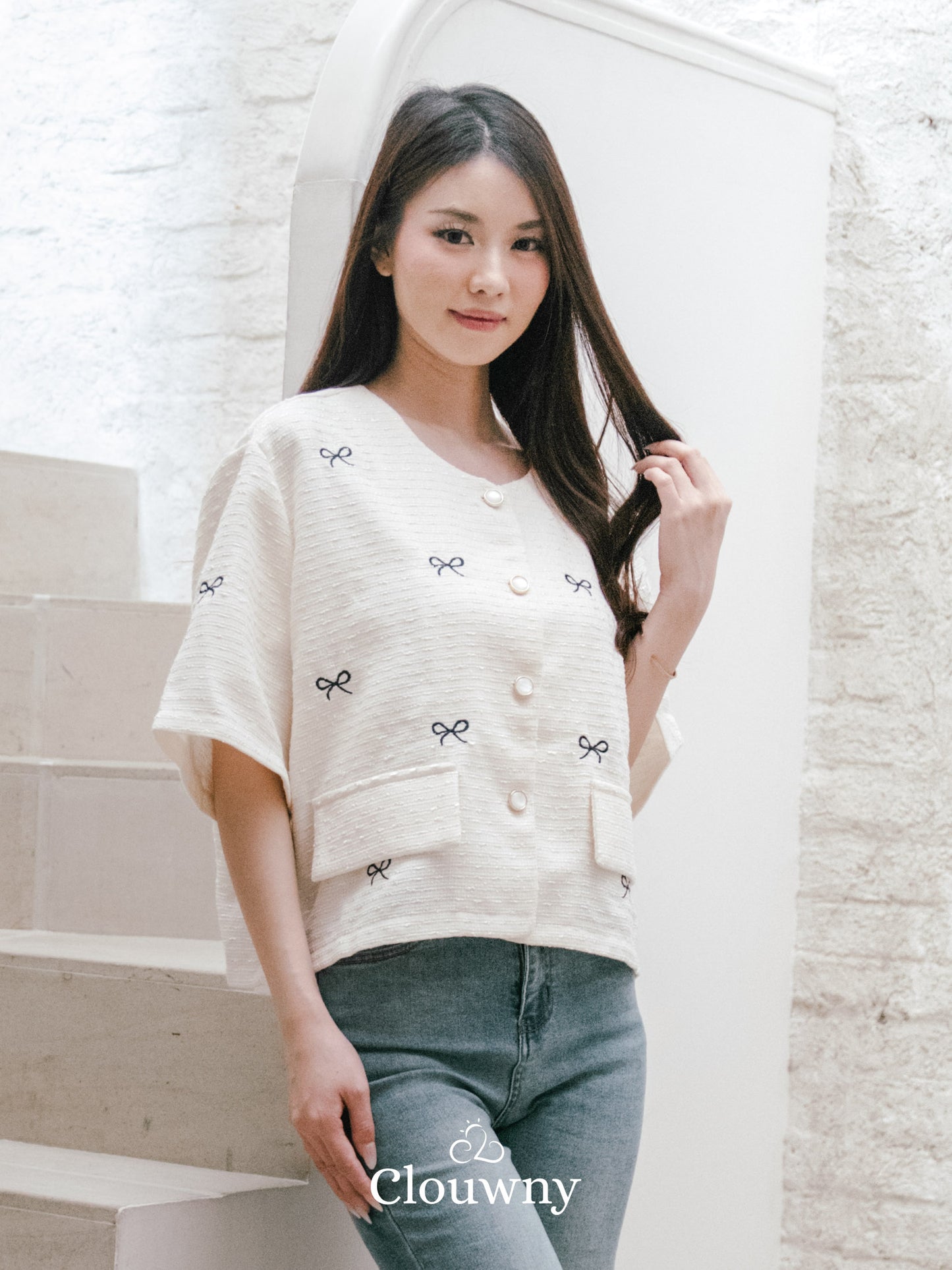 Elevate your style with our Emery Ribbon Tweed Top! This playful piece combines classic tweed texture with whimsical ribbon details for a look that's both sophisticated and fun. Perfect for mixing and matching, this versatile top adds a touch of texture to any outfit while keeping your vibe light and cheerful. Wear it from office hours to happy hours with ease!