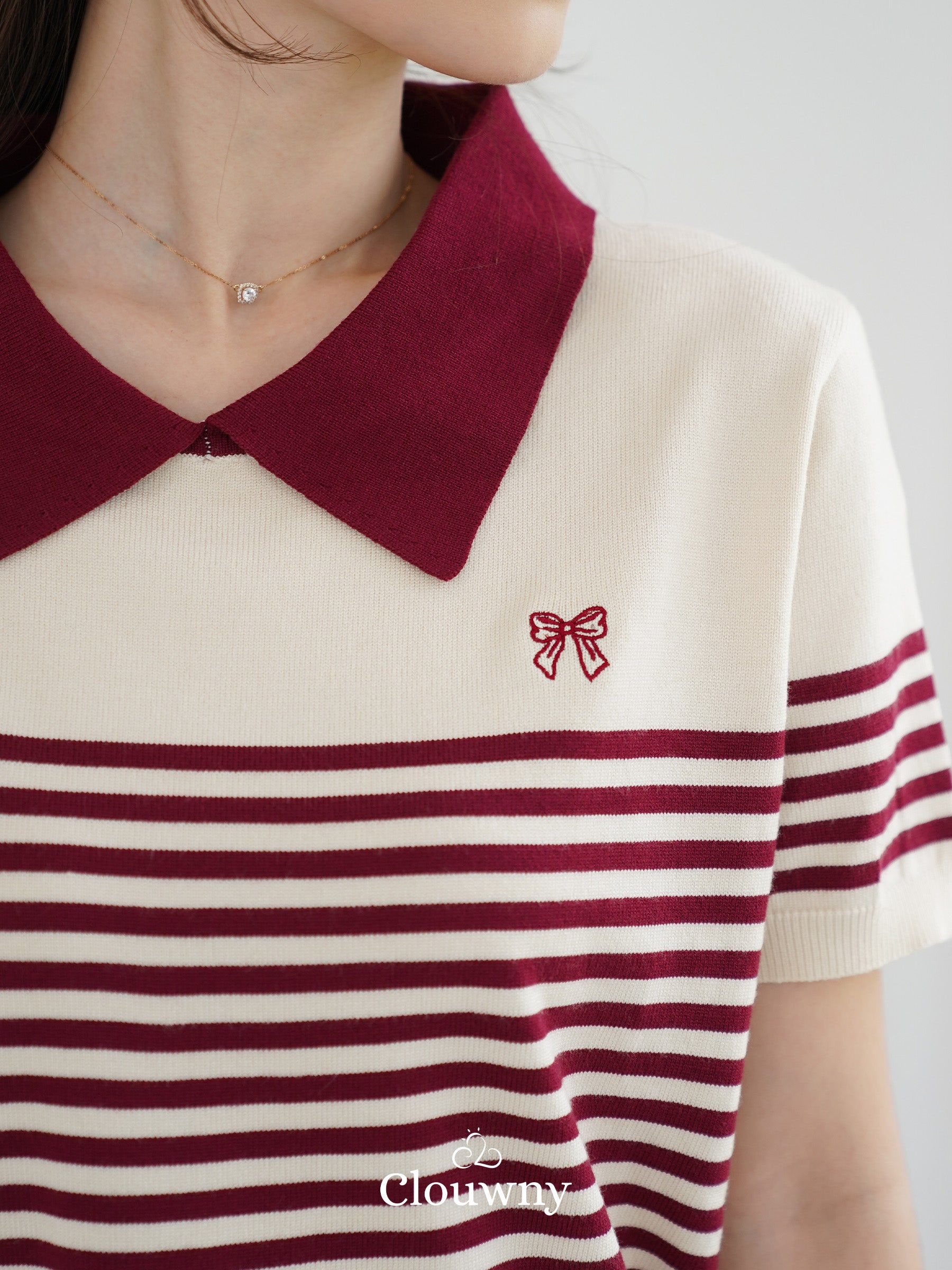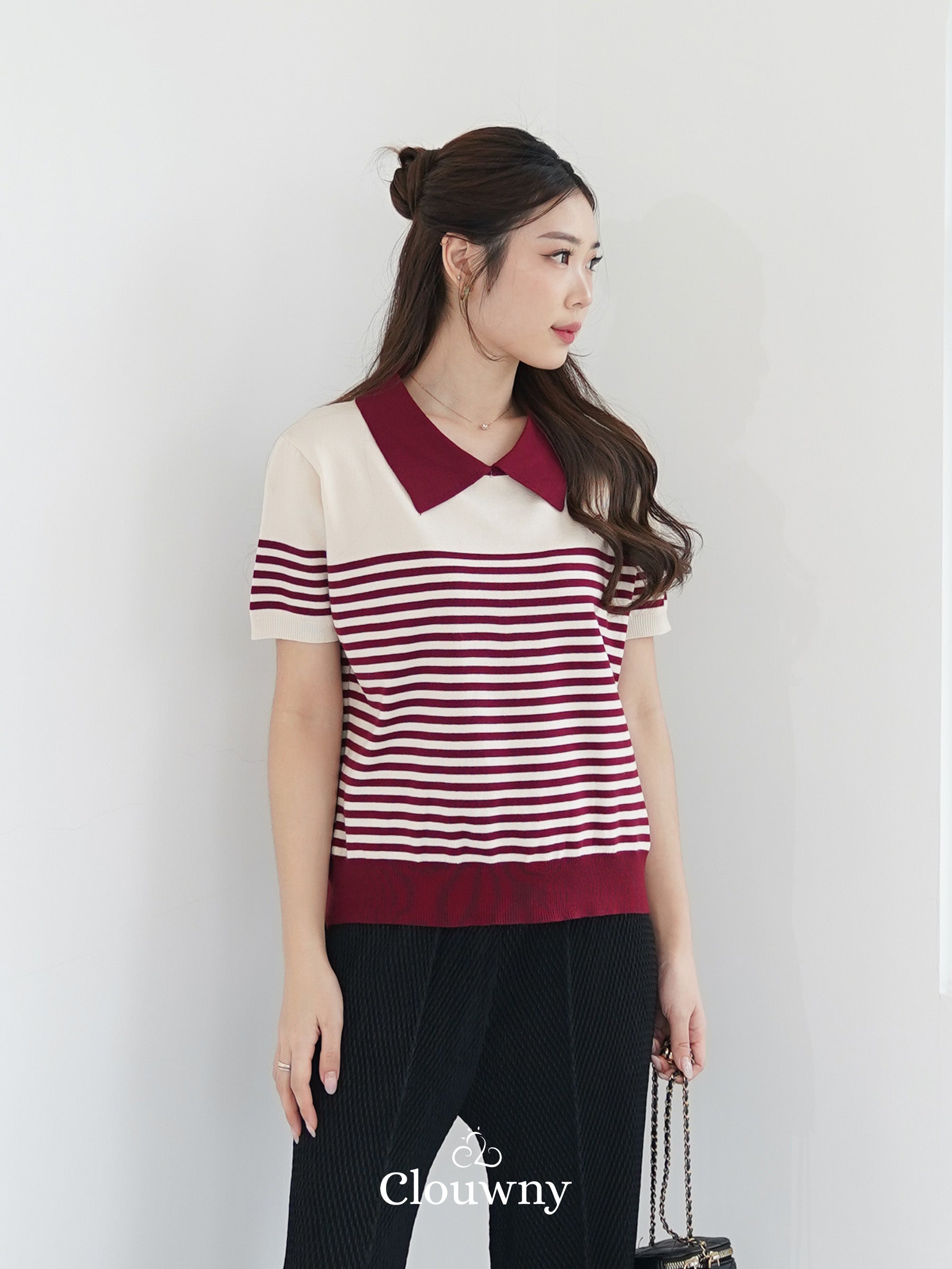 Erlan Collar Stripes Top - Maroon