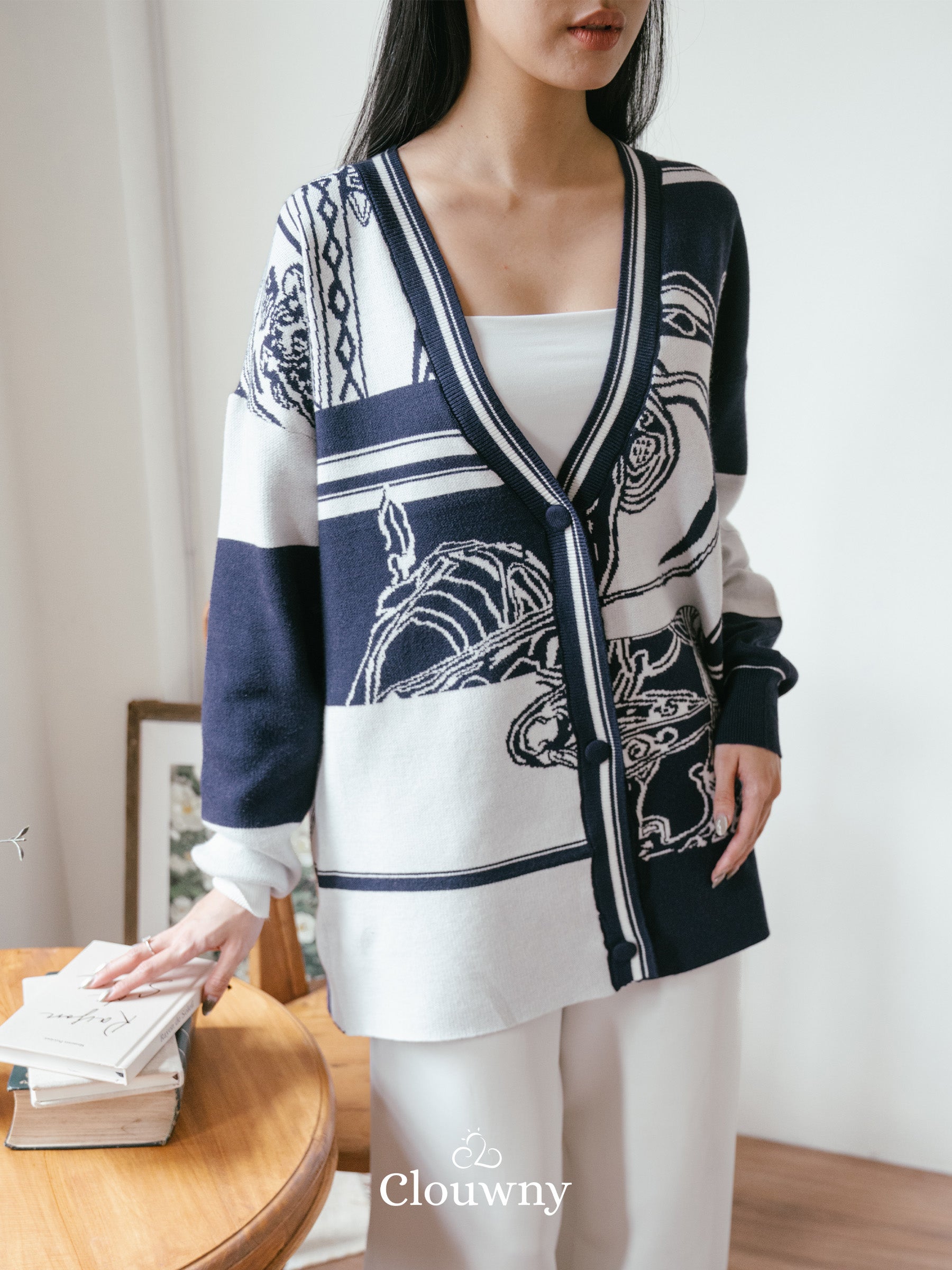Fleur Knit Cardigan - Navy