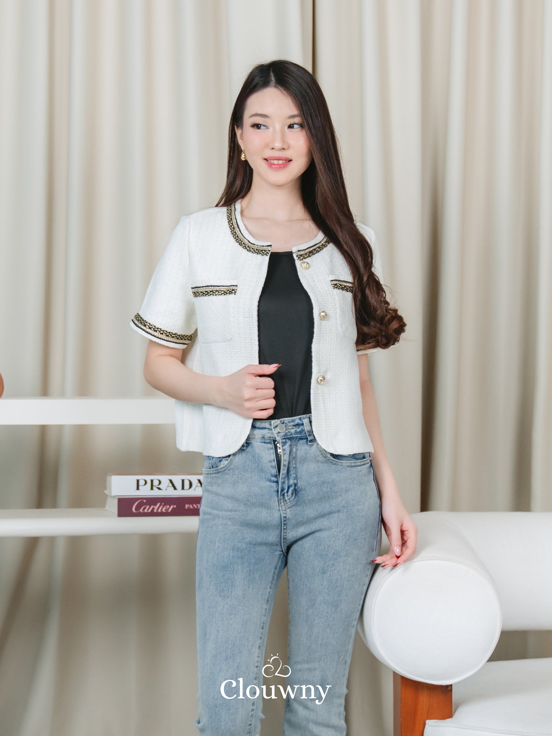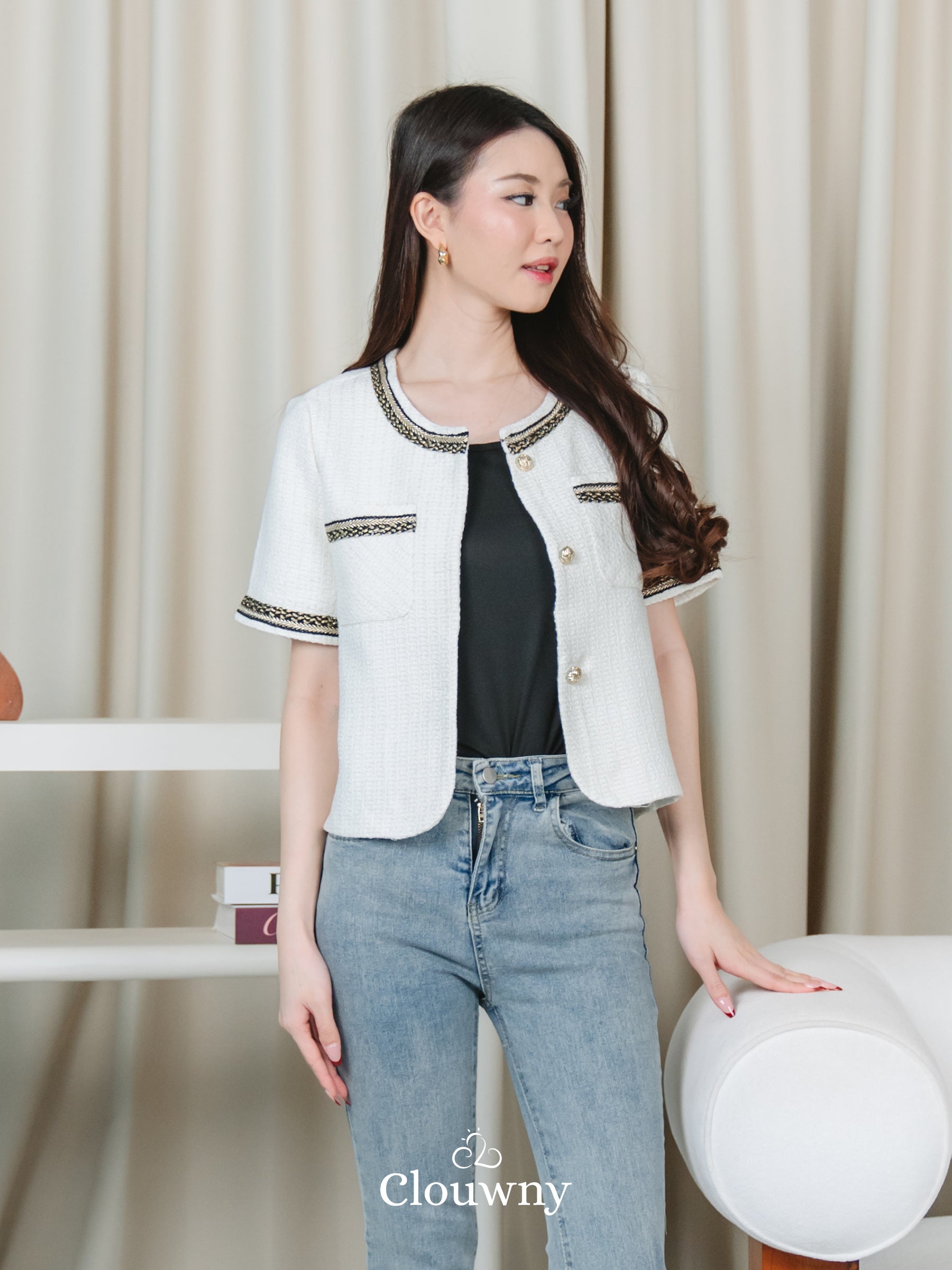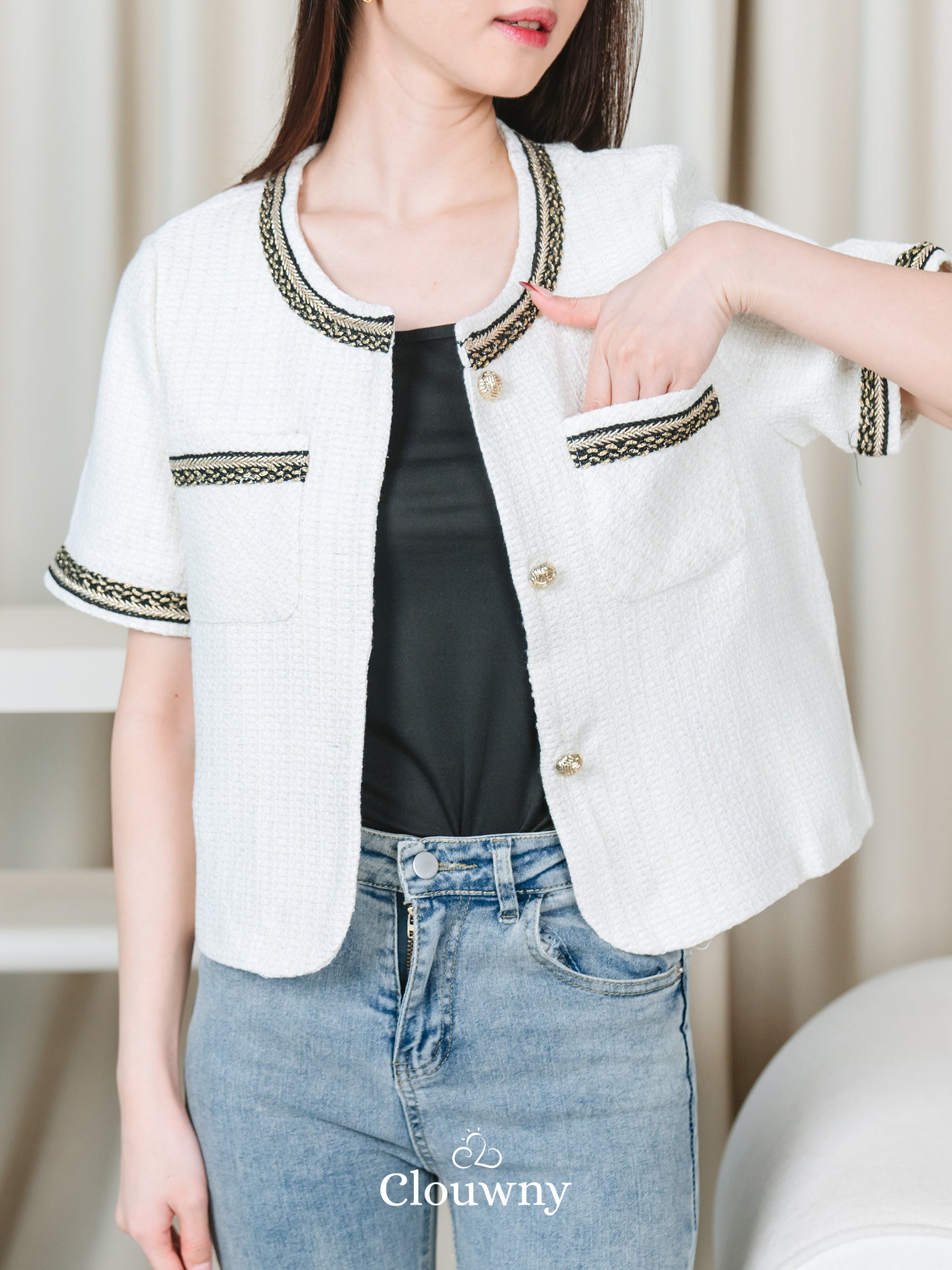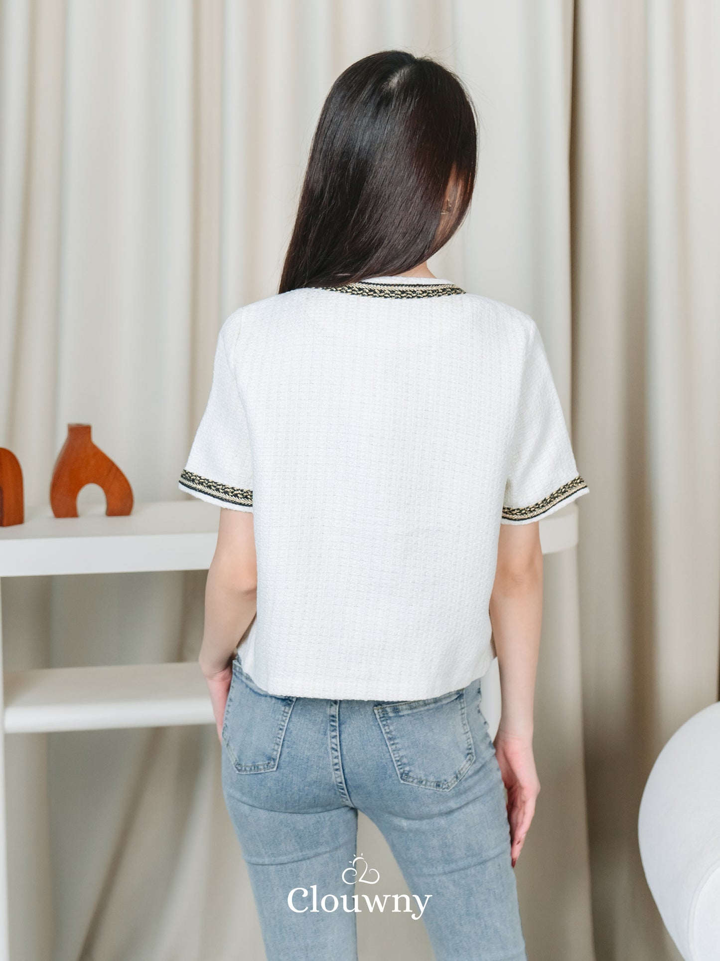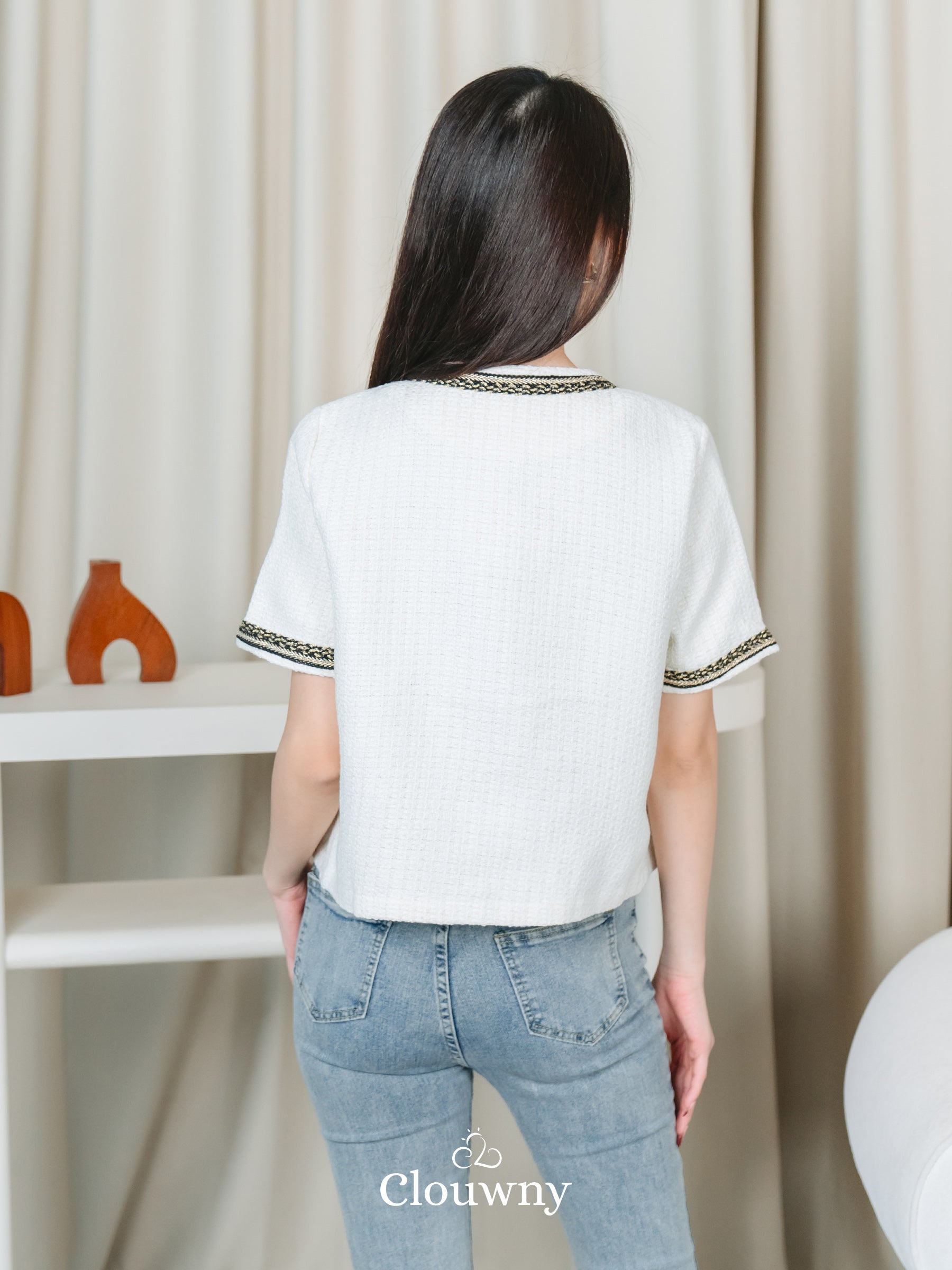 Fumi Pocket Tweed Top - Broken White