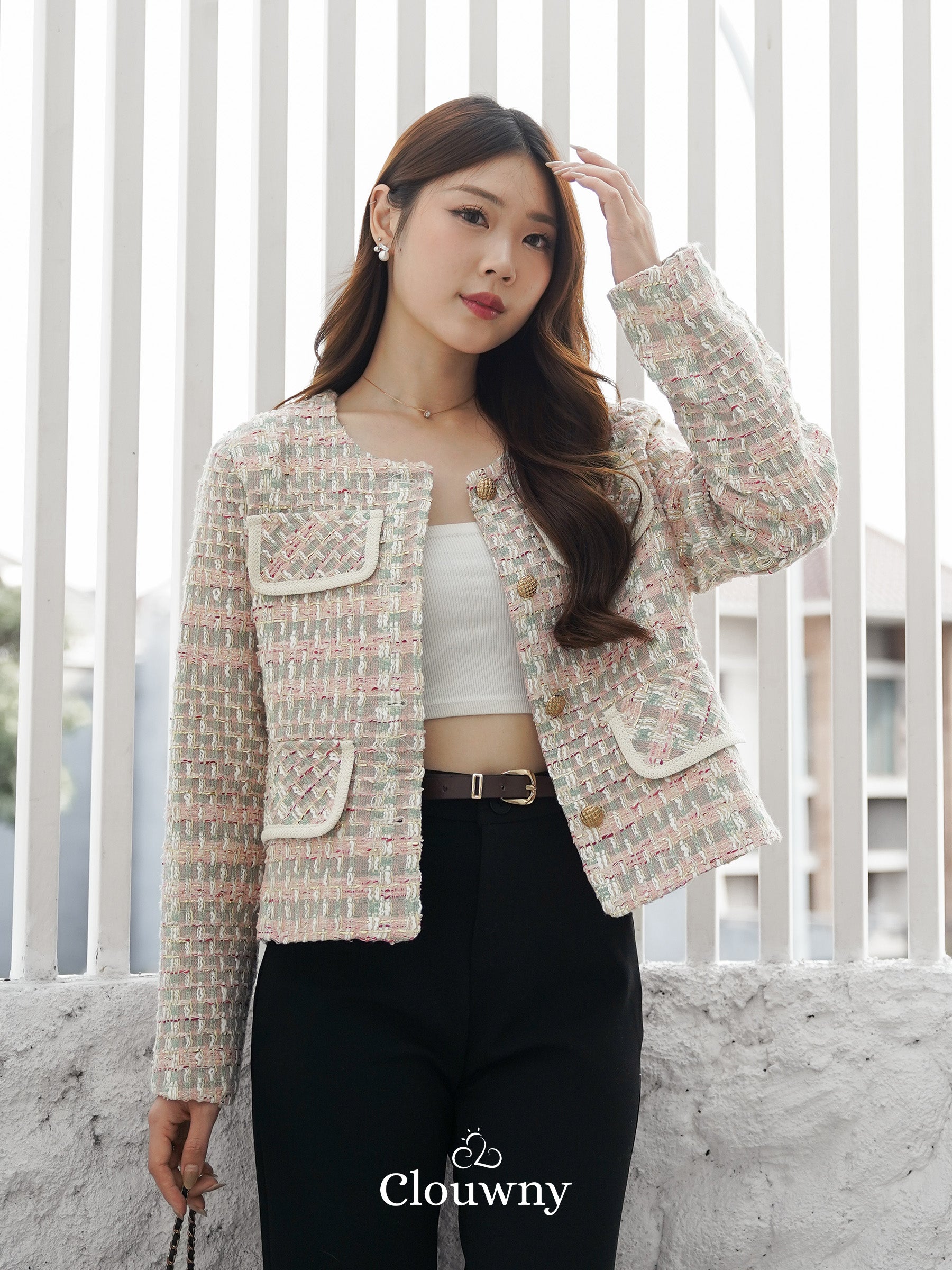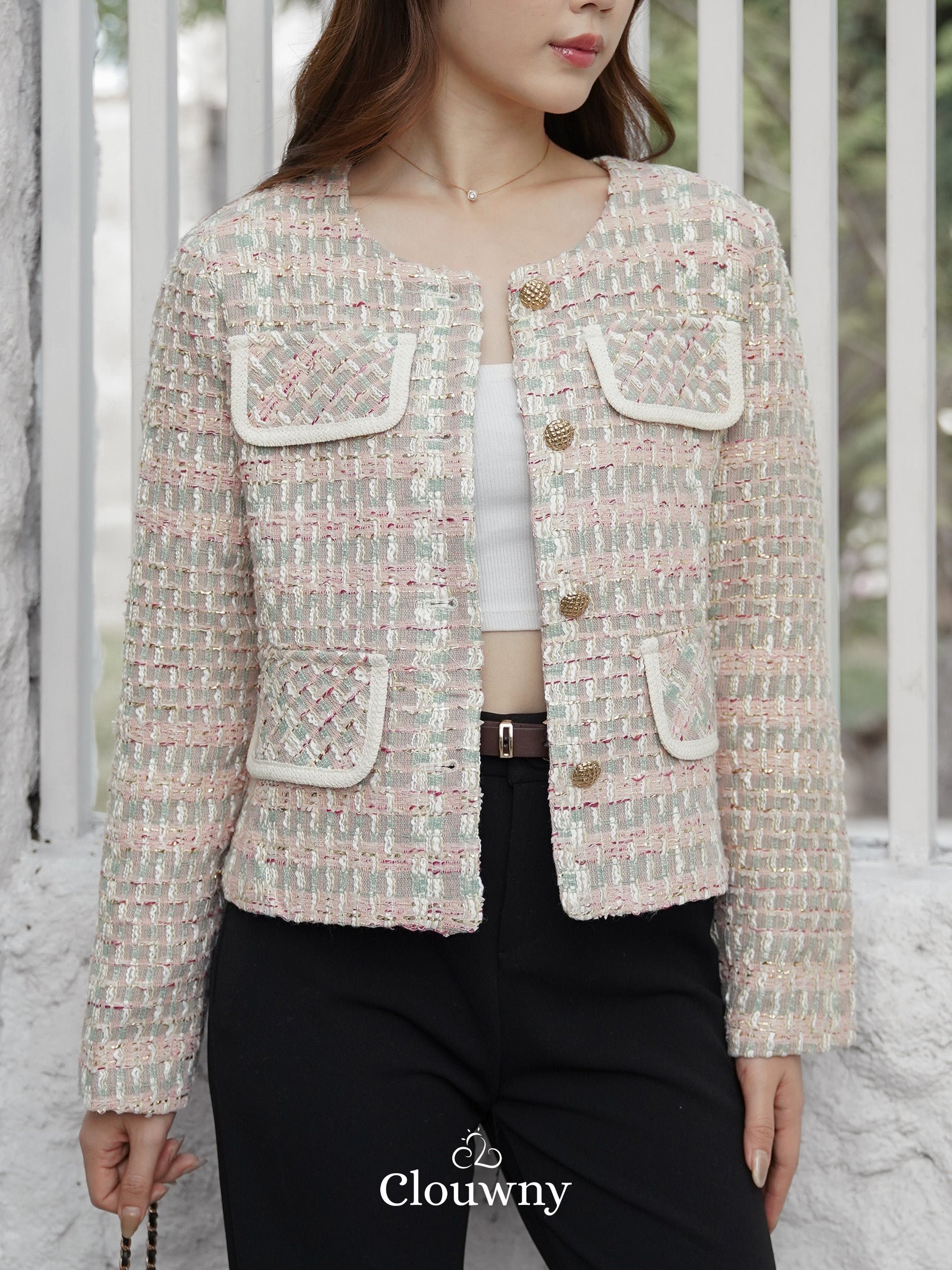 Elevate your style with our Geya Tweed Blazer. Made with high-quality materials, this blazer offers a classic yet trendy look. Perfect for any occasion, it will keep you both comfortable and stylish. Upgrade your wardrobe with this must-have piece.