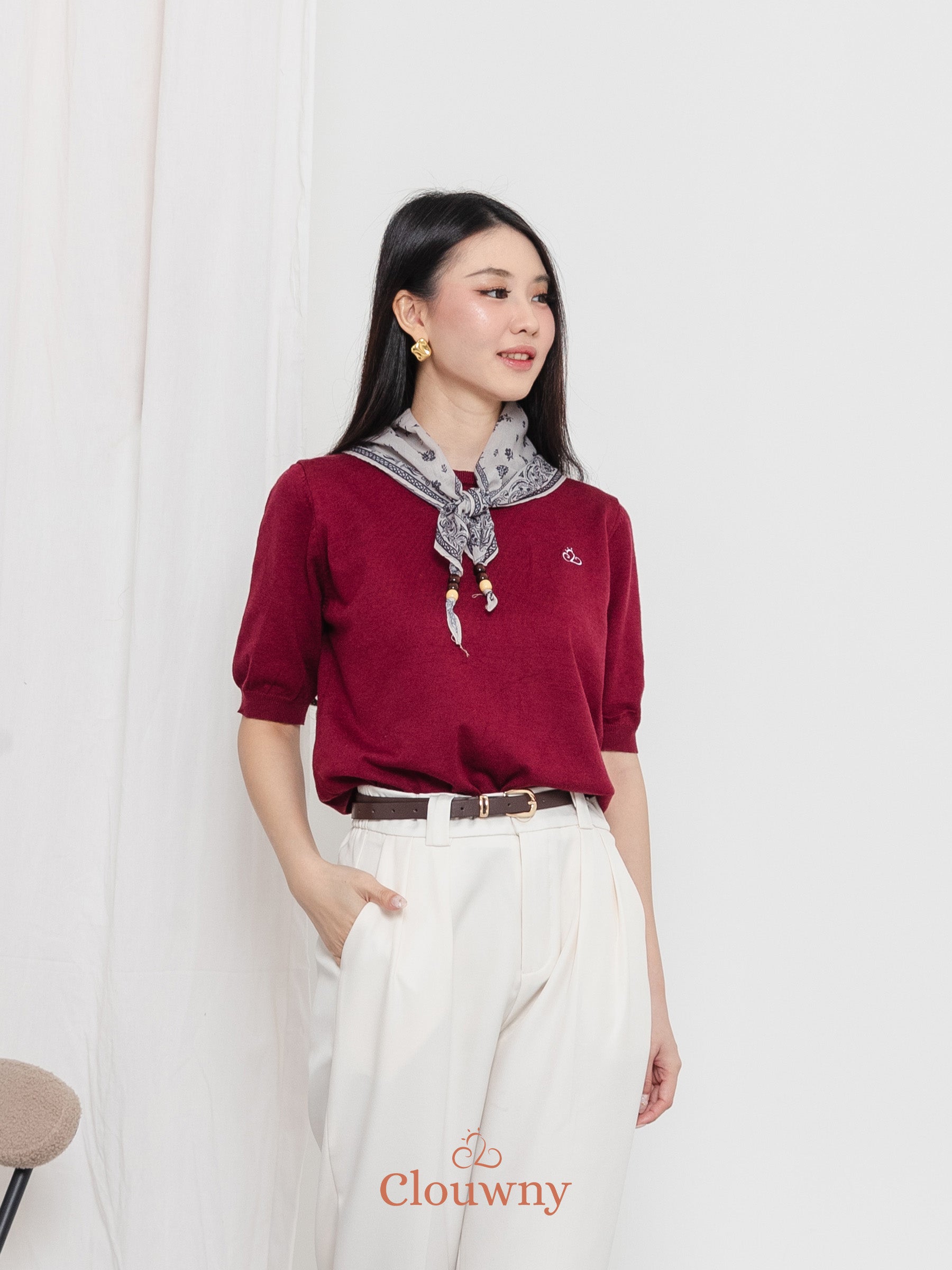 Libra Scarf Knit Top - Maroon
