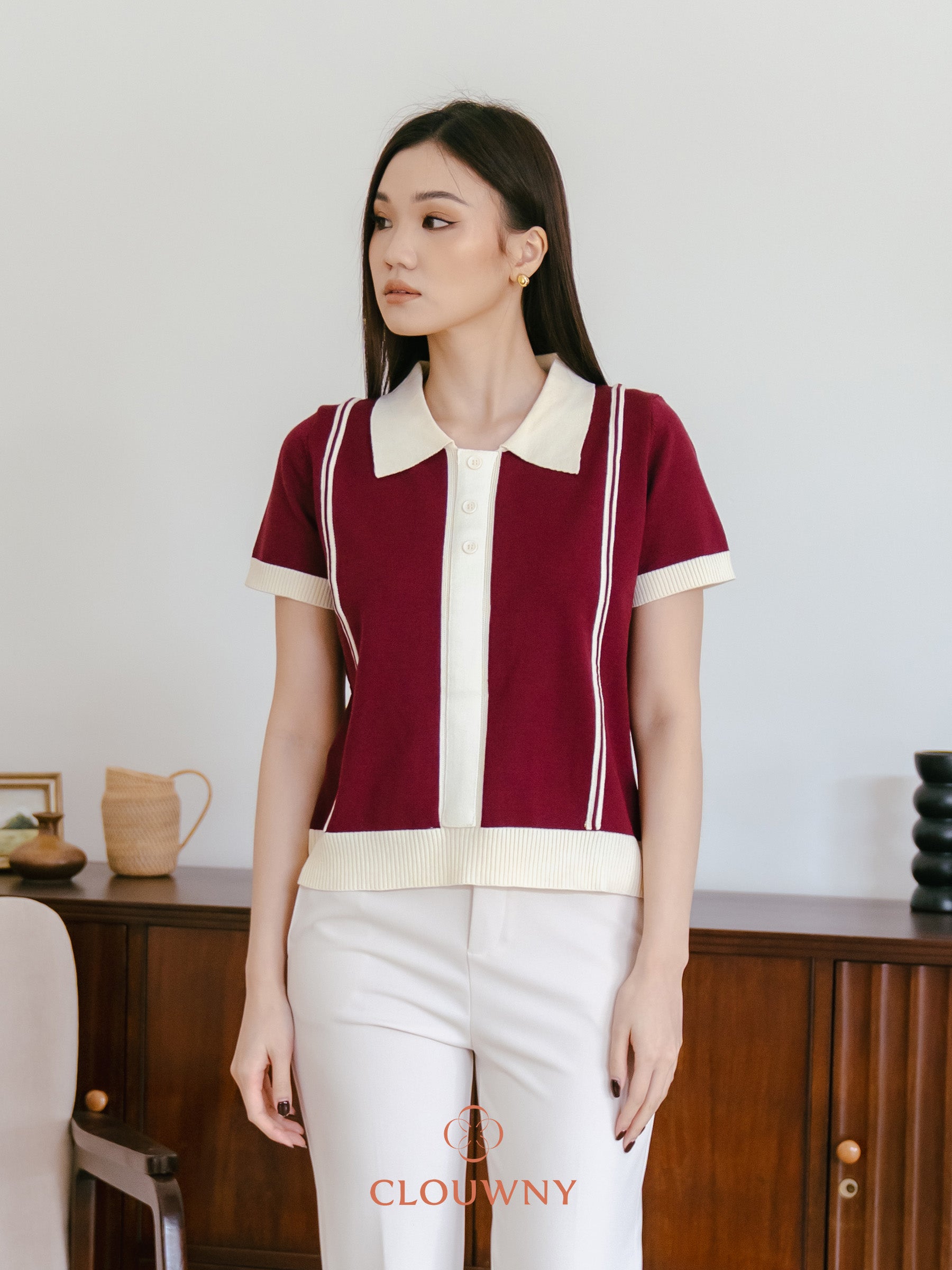 Maina Triple Button Knit Top - Burgundy