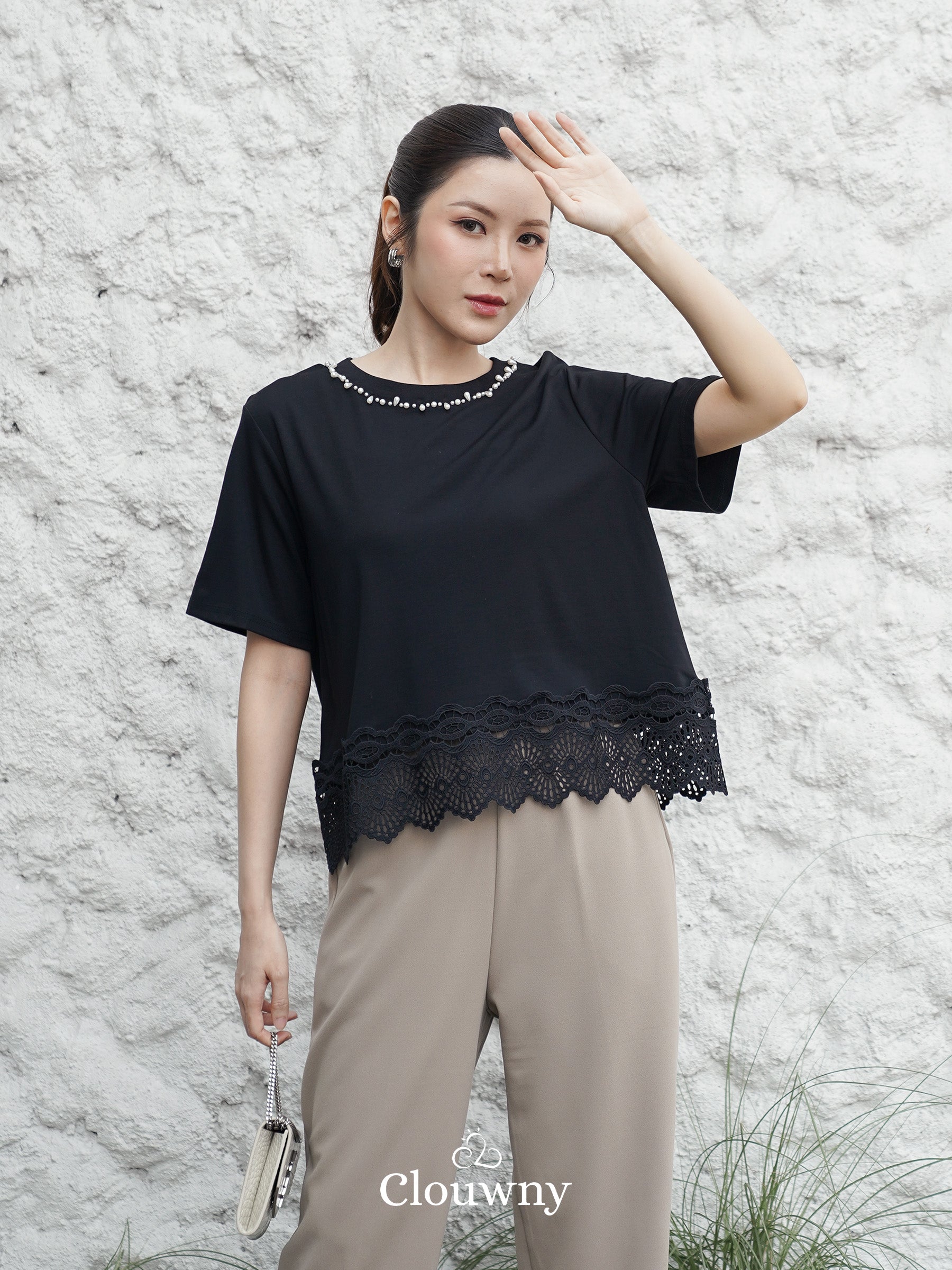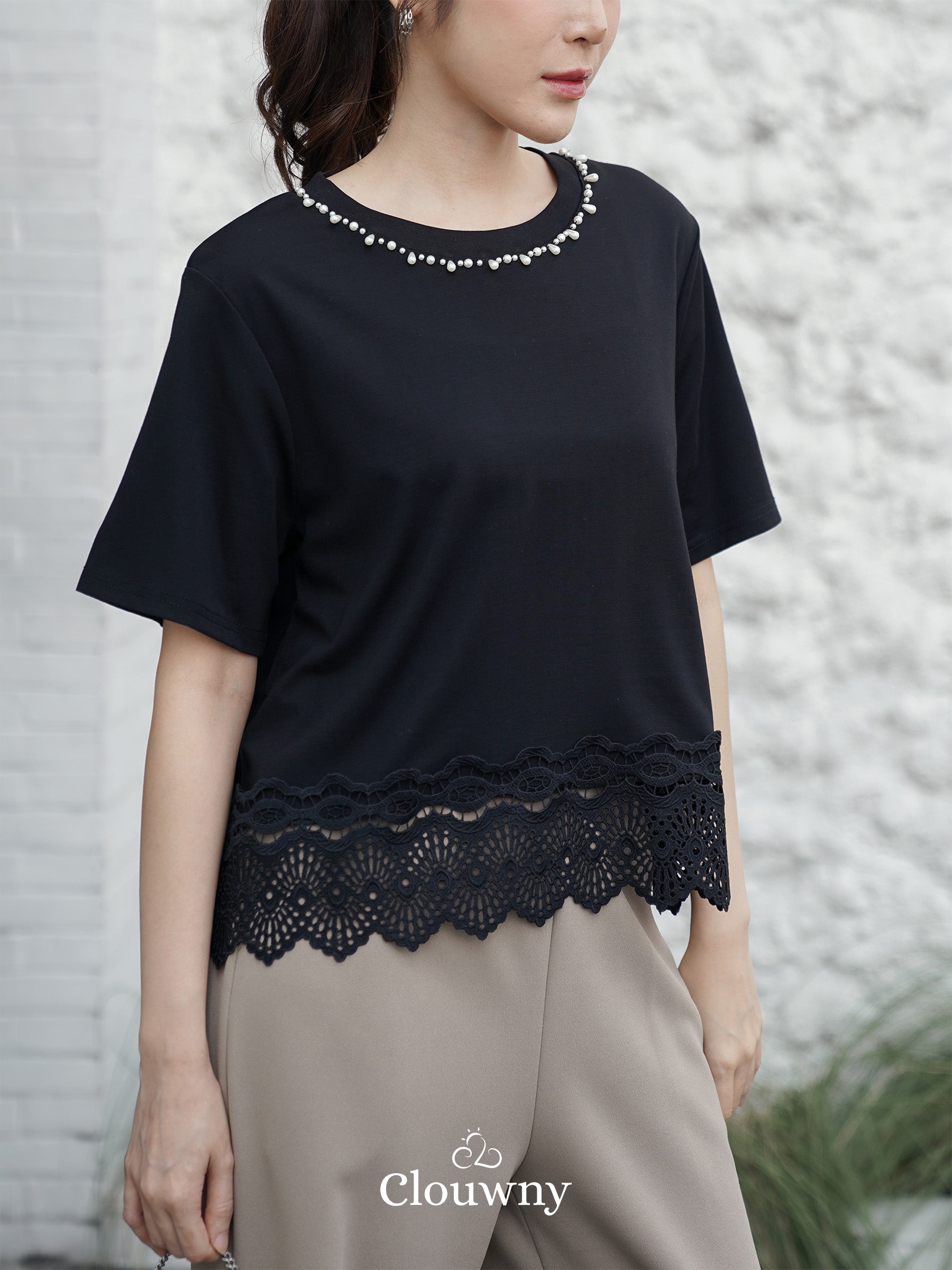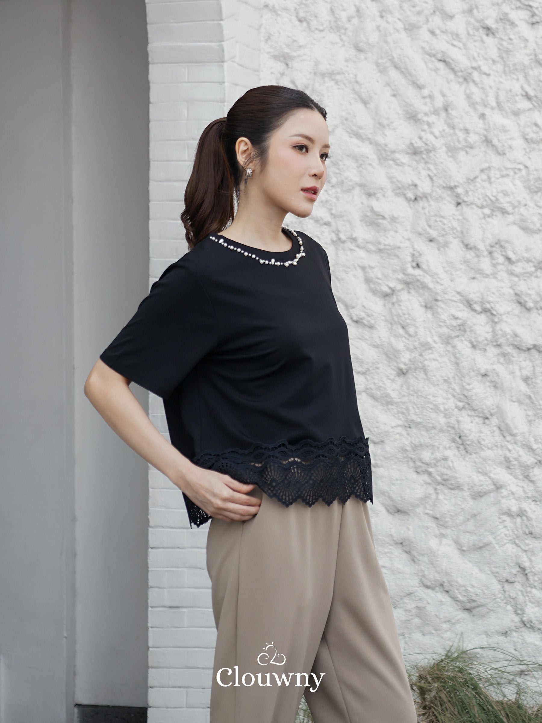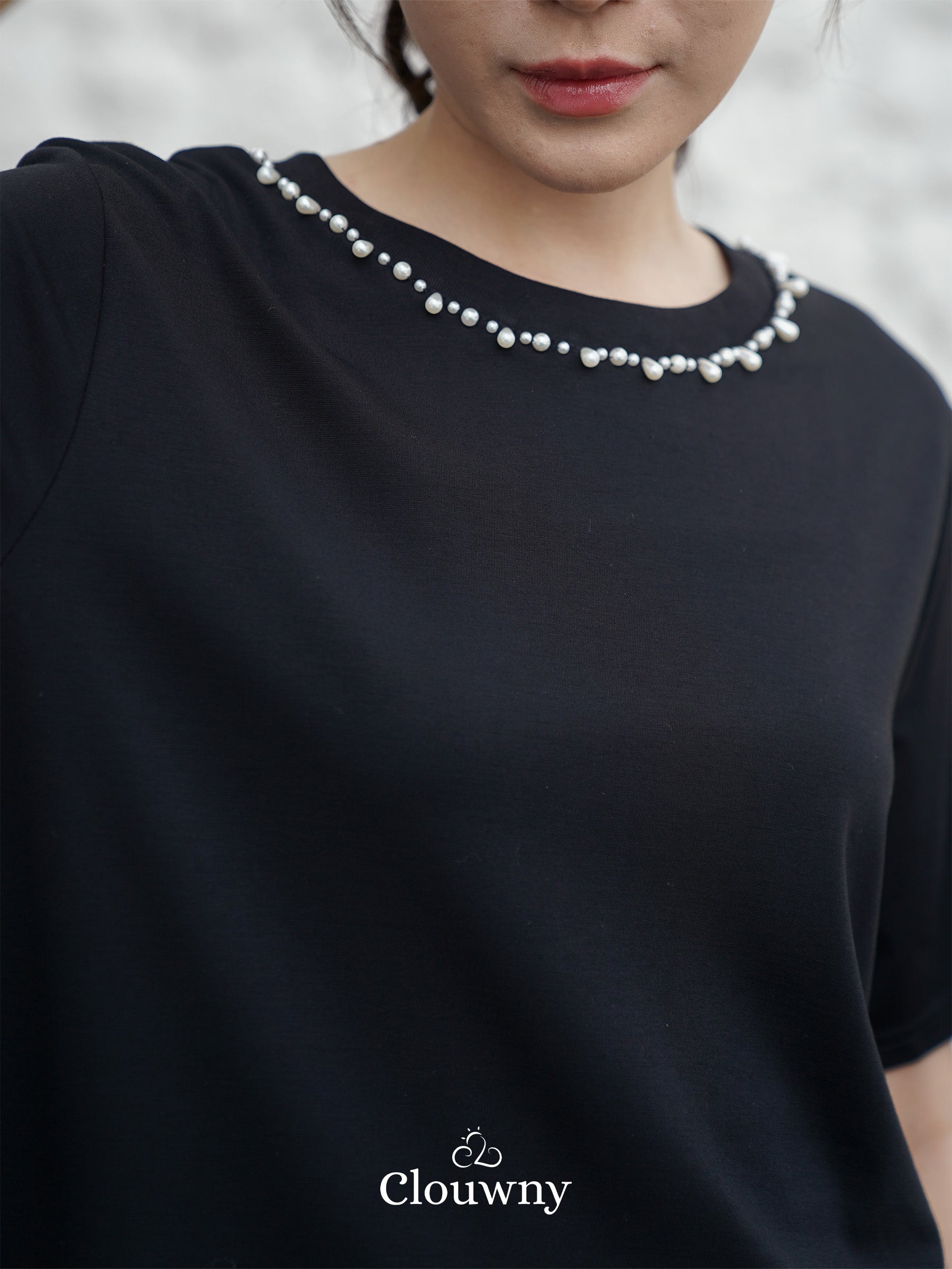 Introducing the playful Megan Pearl Blouse - your new go-to for adding a touch of elegance and fun to any outfit! With delicate pearl embellishments and a flattering fit, this blouse is perfect for both everyday wear and special occasions. Upgrade your wardrobe with the Megan Pearl Blouse.