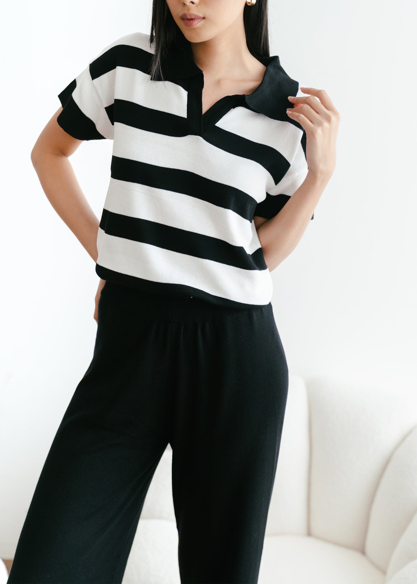 Unleash your fun and flirty side with our Minjoo Stripes Set! This statement set features bold black stripes, adding a playful touch to your ensemble. Made with high-quality materials, it's both stylish and comfortable, making it perfect for any occasion. Get ready to make a statement!