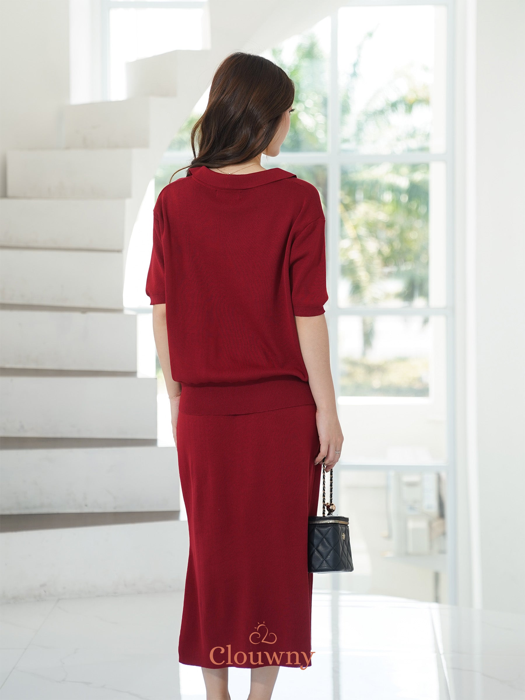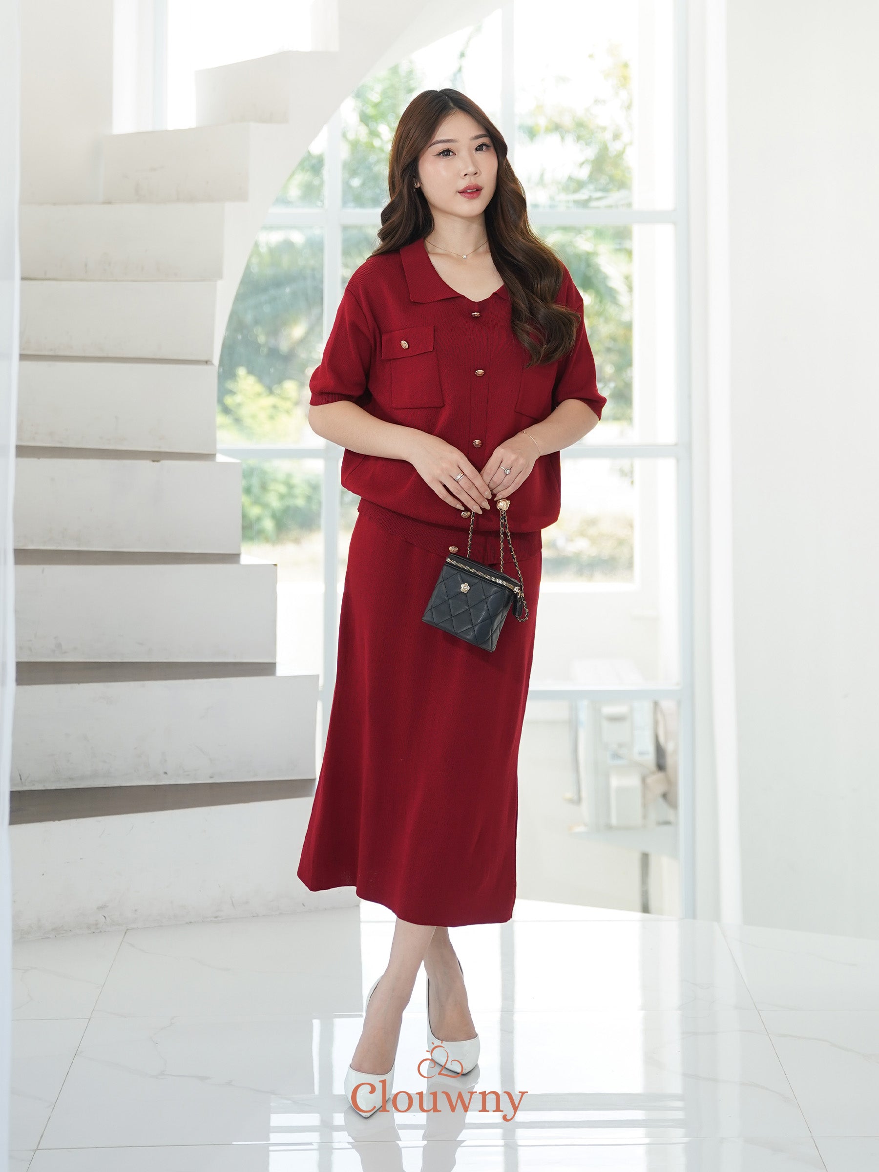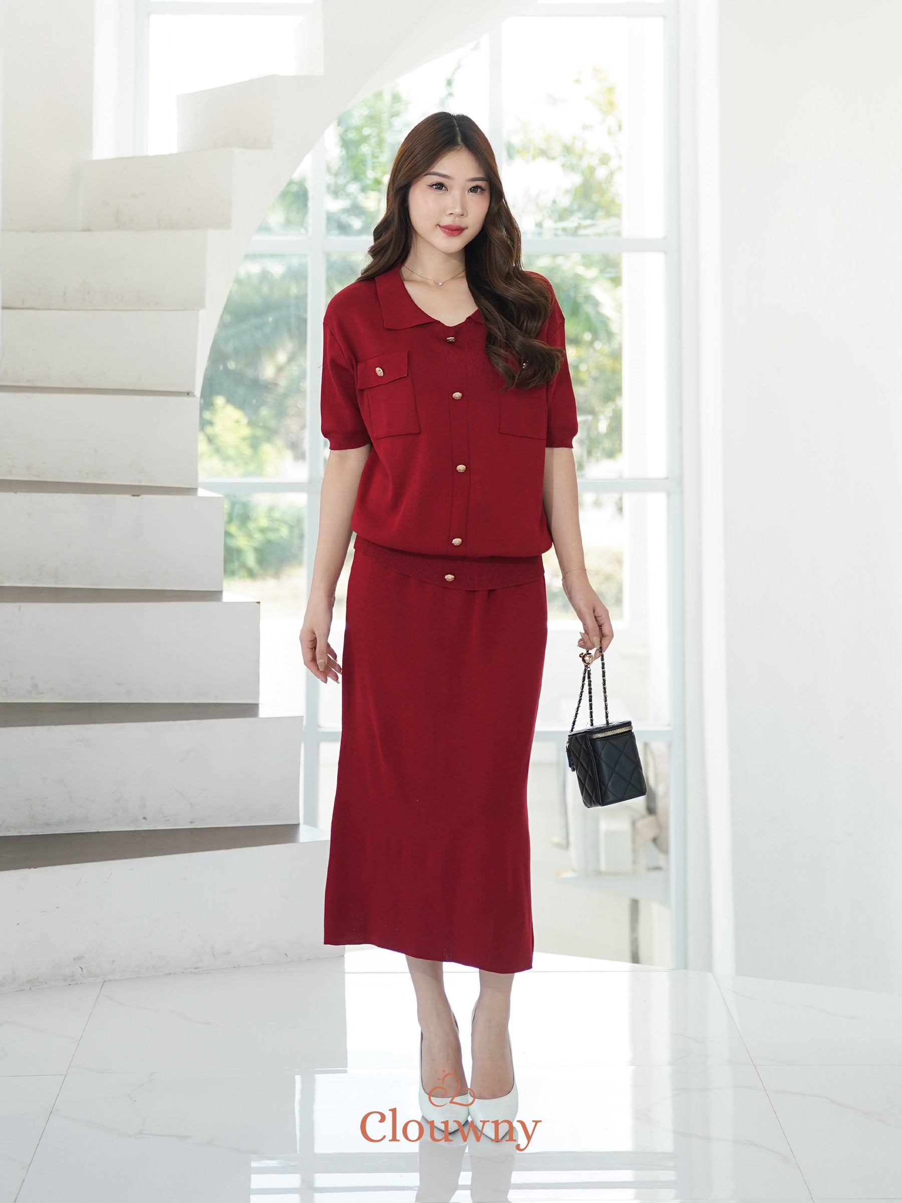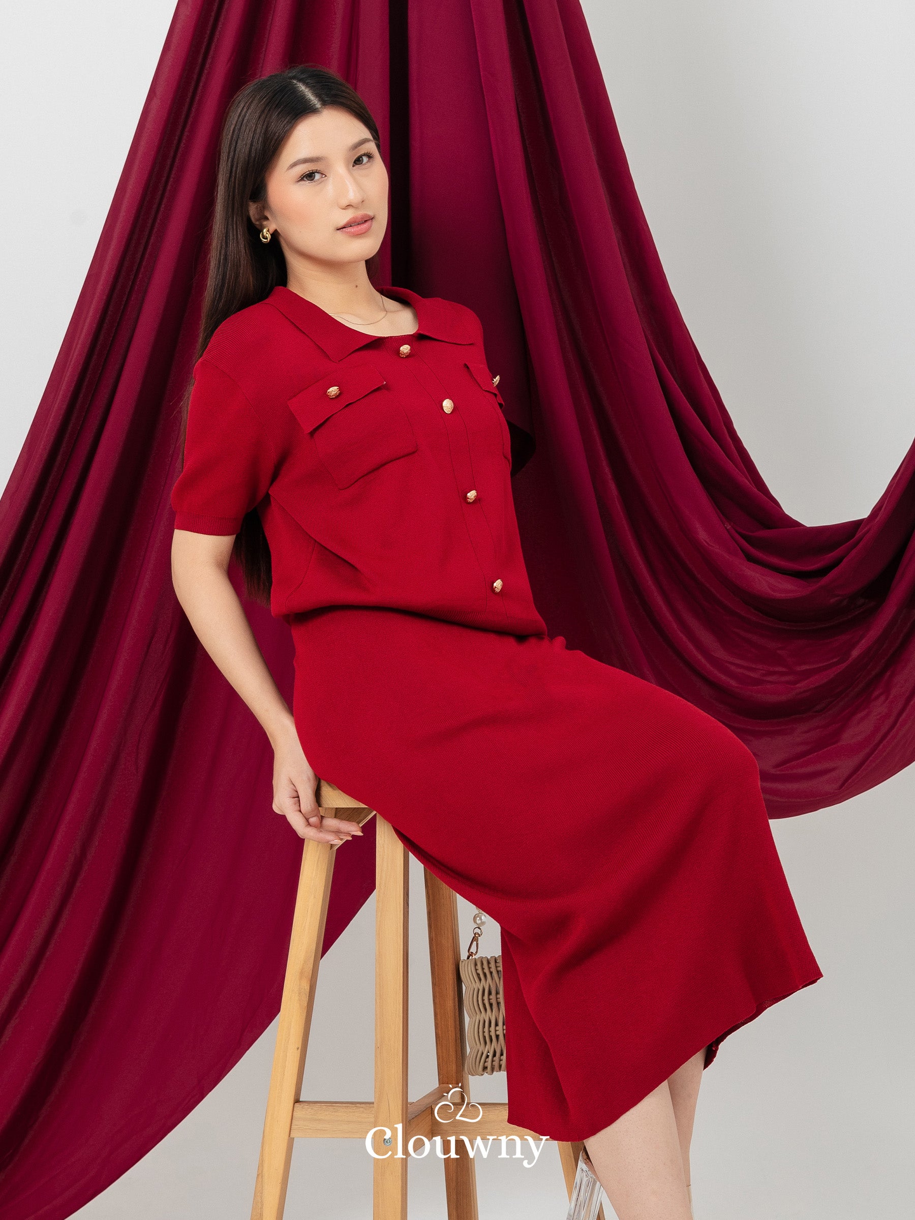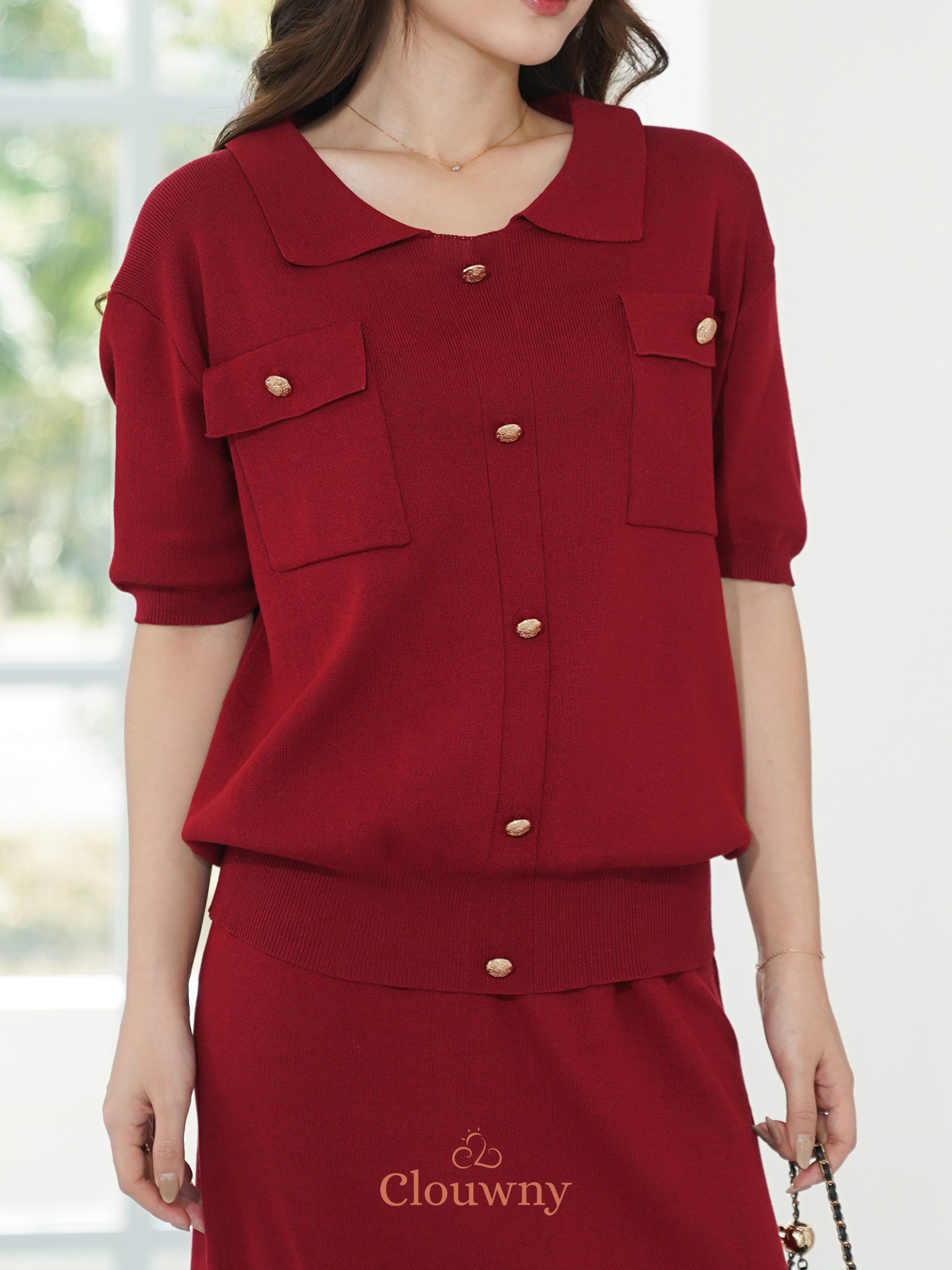 Missy Button Knit Set - Maroon