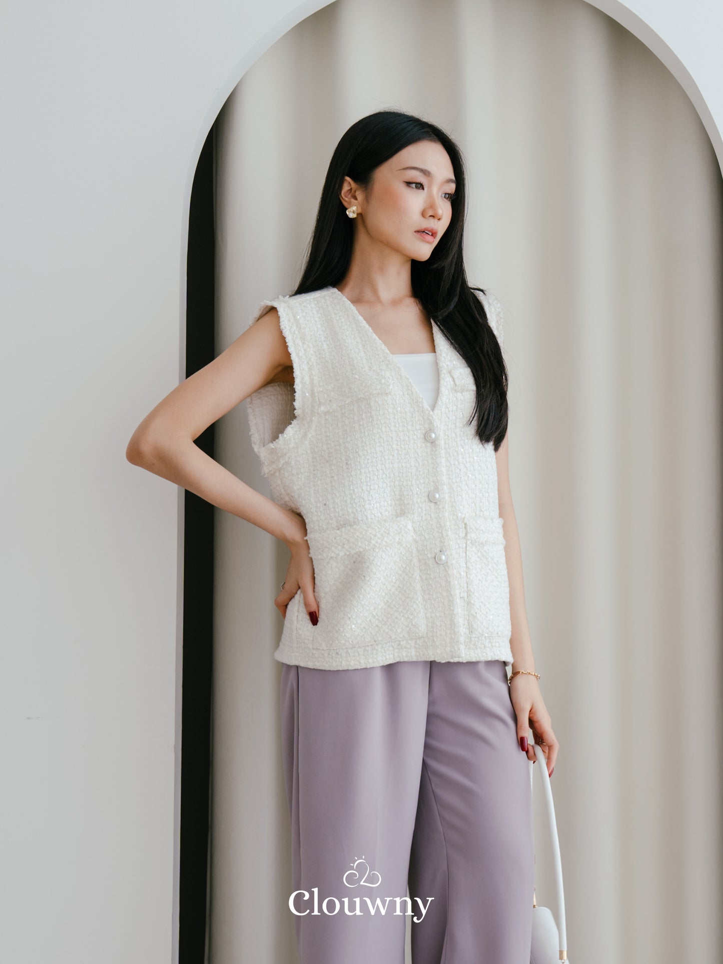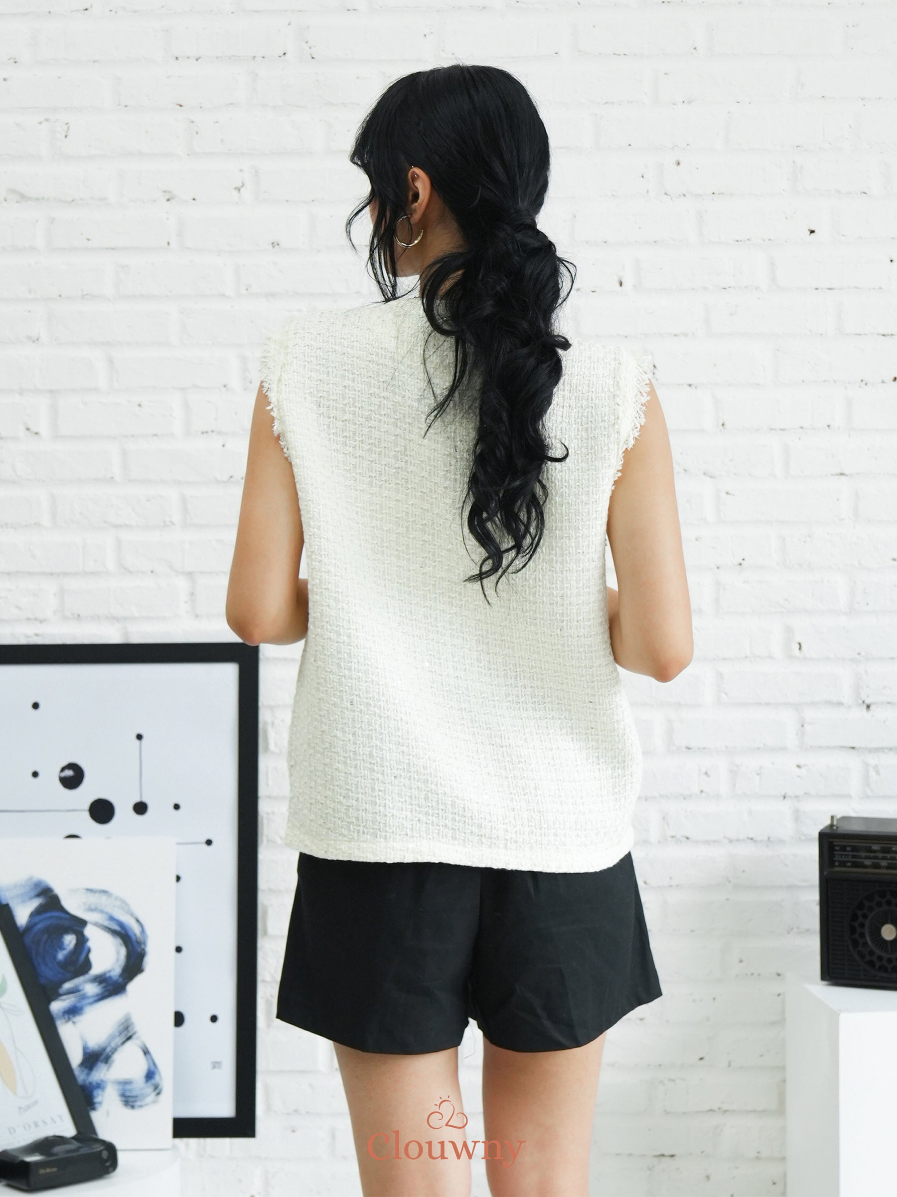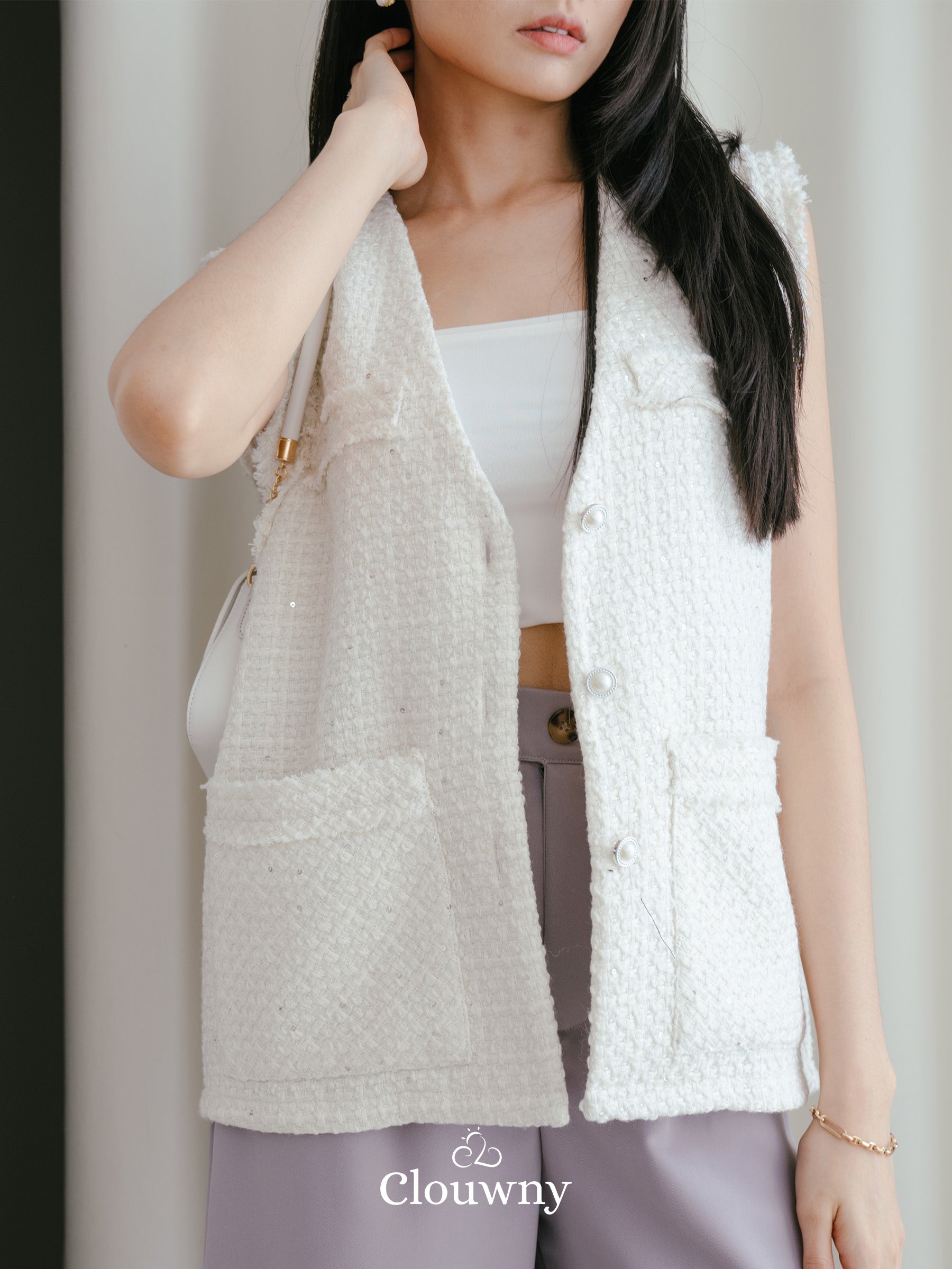 This Nada Tweed Vest is the ultimate fashion statement. Made with premium tweed, it exudes sophistication and style. With its comfortable fit and timeless design, this vest is perfect for any occasion. Upgrade your wardrobe and show off your playful side with the Nada Tweed Vest.
