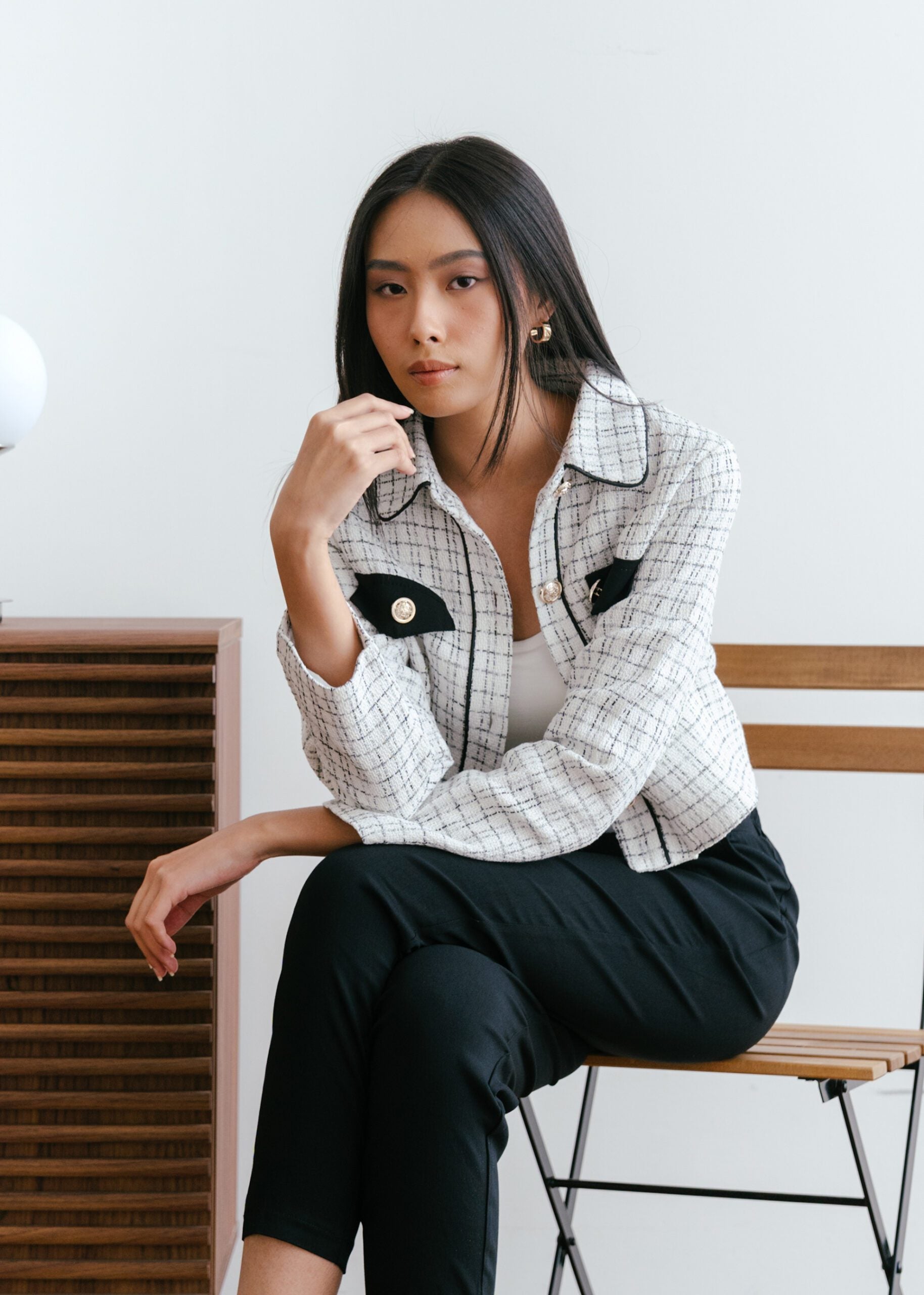 Elevate your style with our Nira Long Tweed Blazer in sleek black. Made with high-quality tweed material, this blazer is perfect for any occasion. Its longer length adds a touch of sophistication while still maintaining a playful vibe. Stand out from the crowd with this must-have addition to your wardrobe.