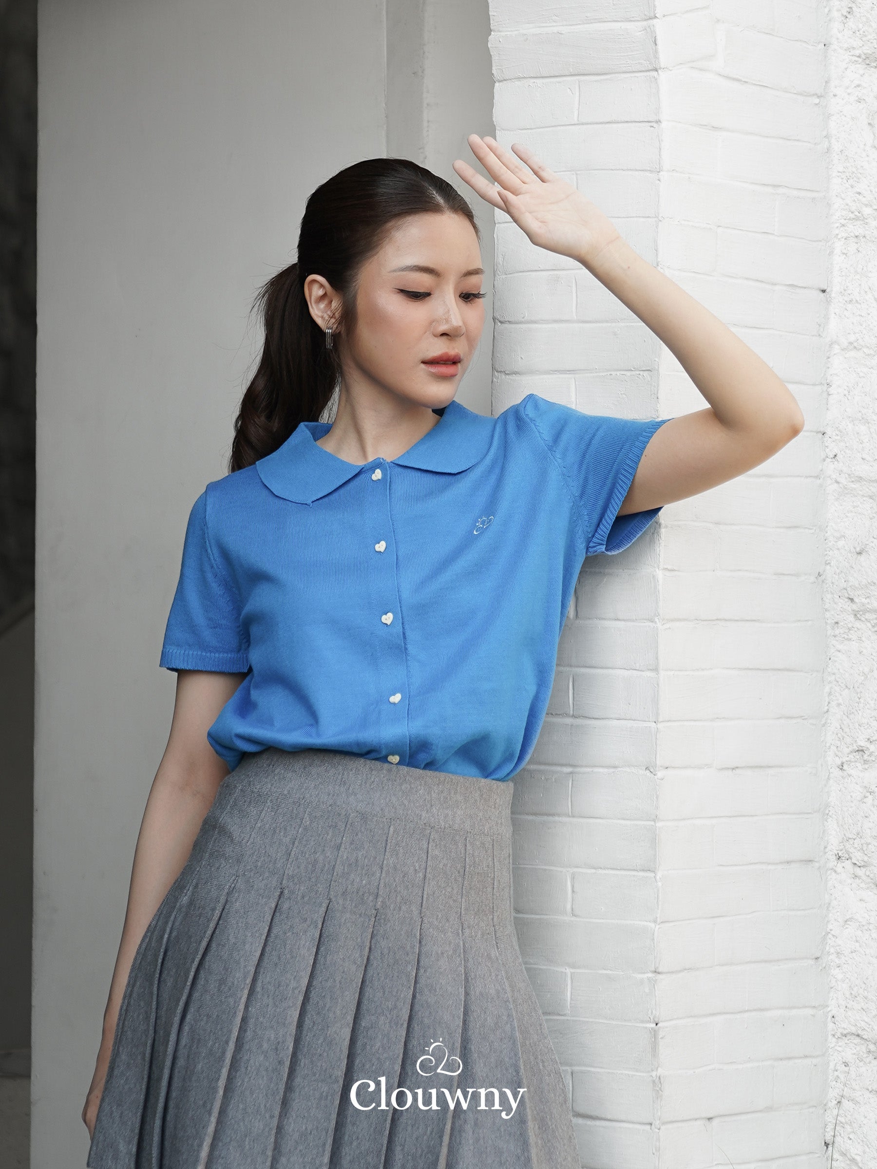 Noza Collar Knit Top - Blue
