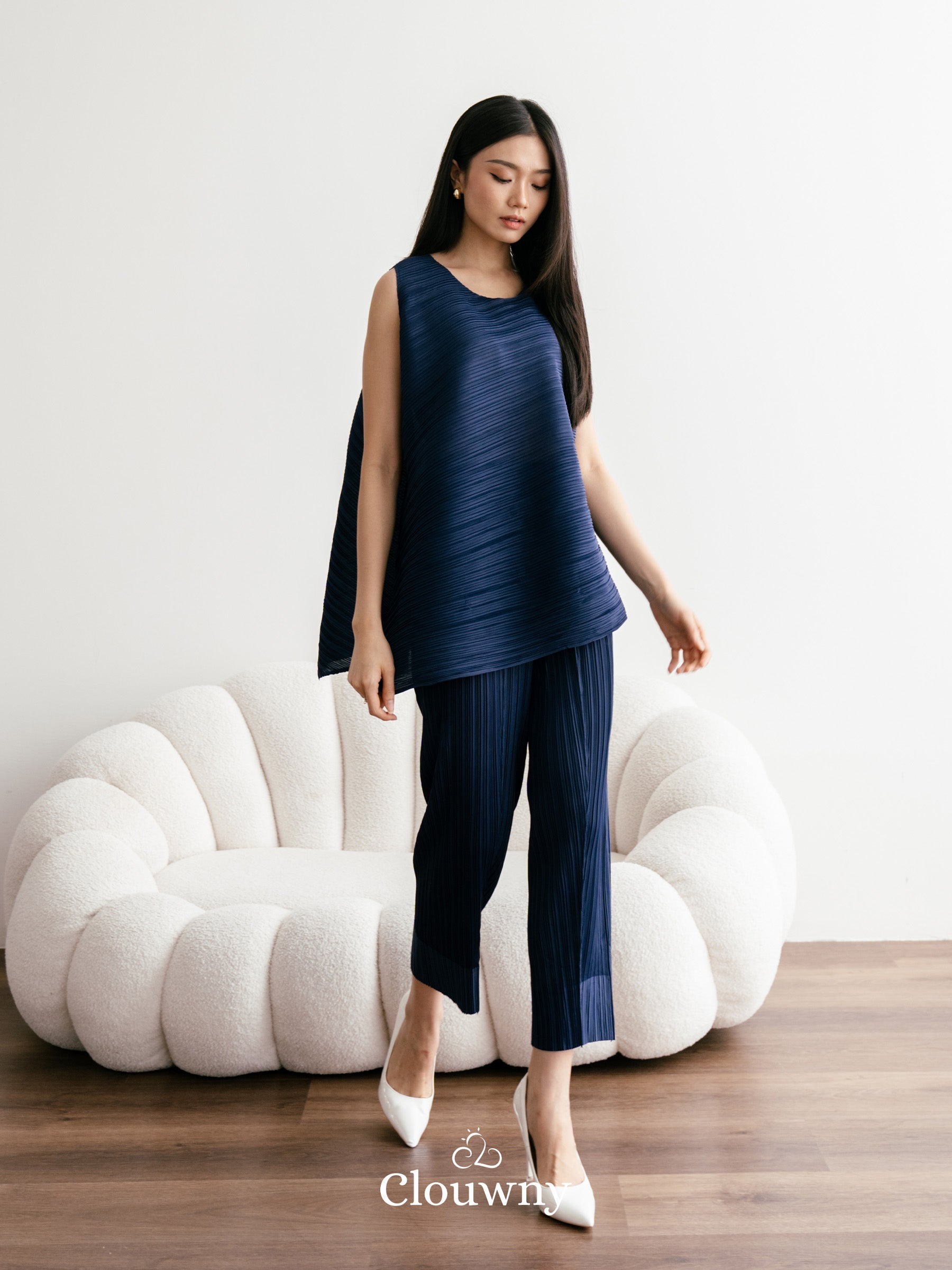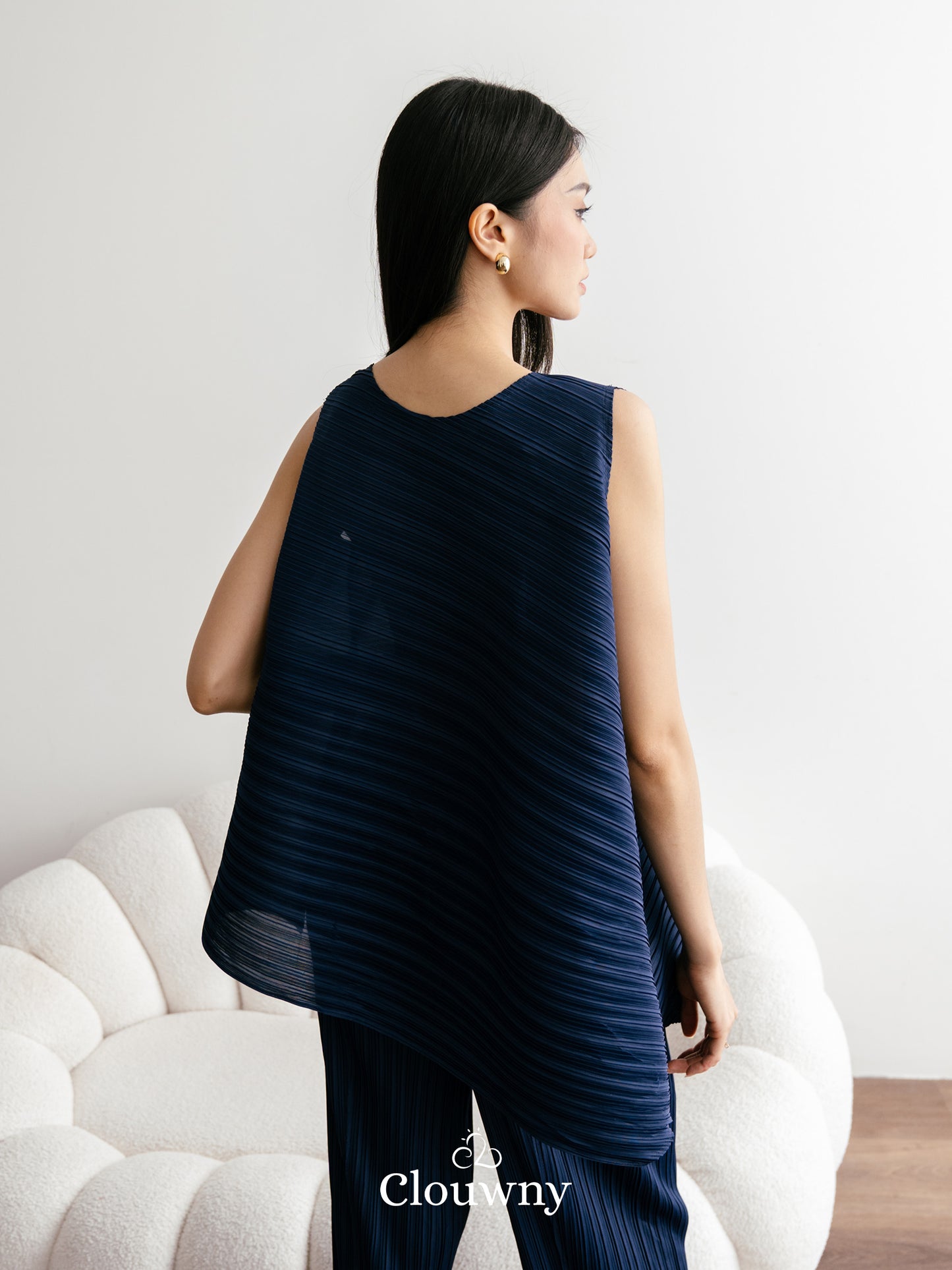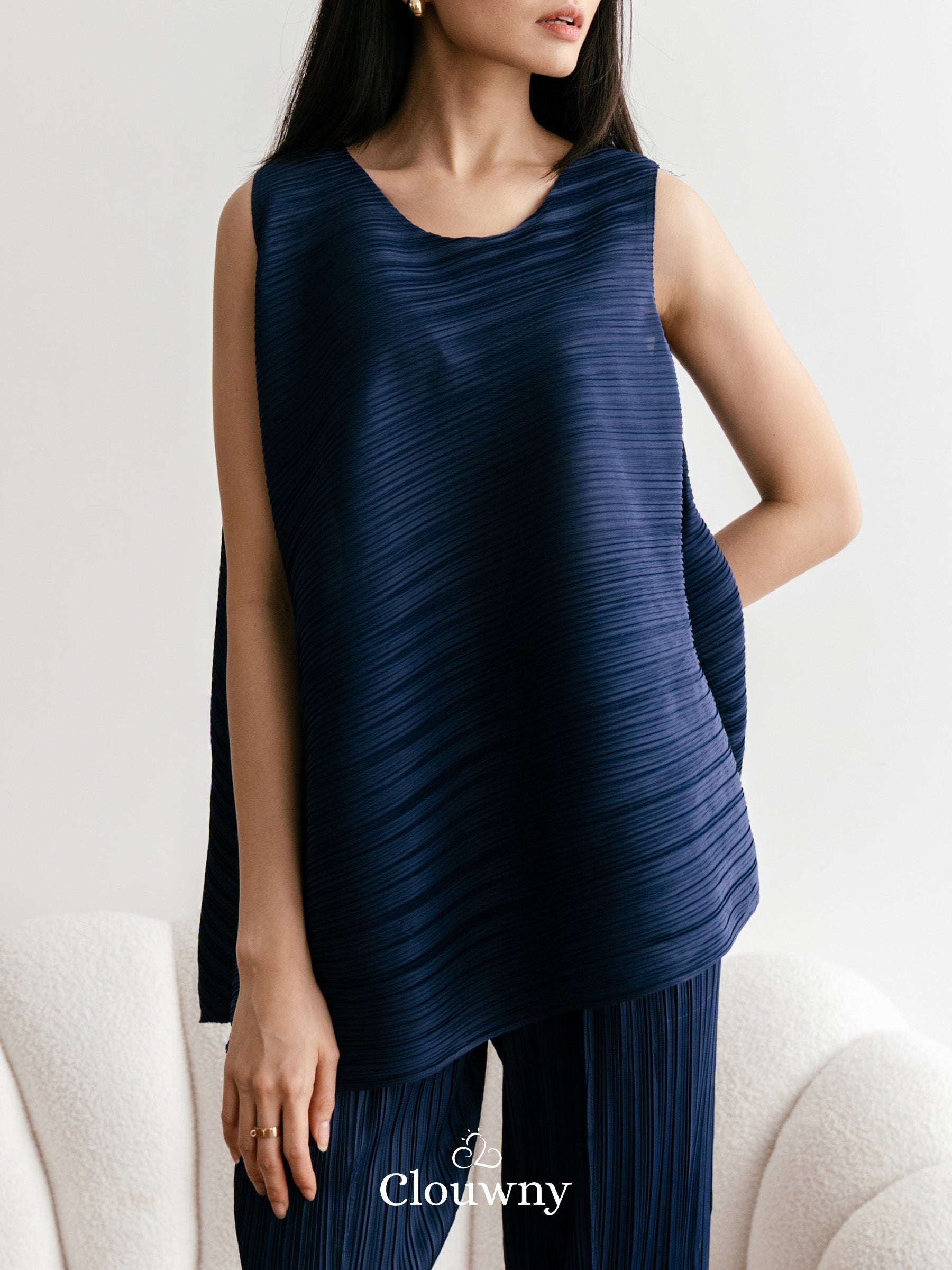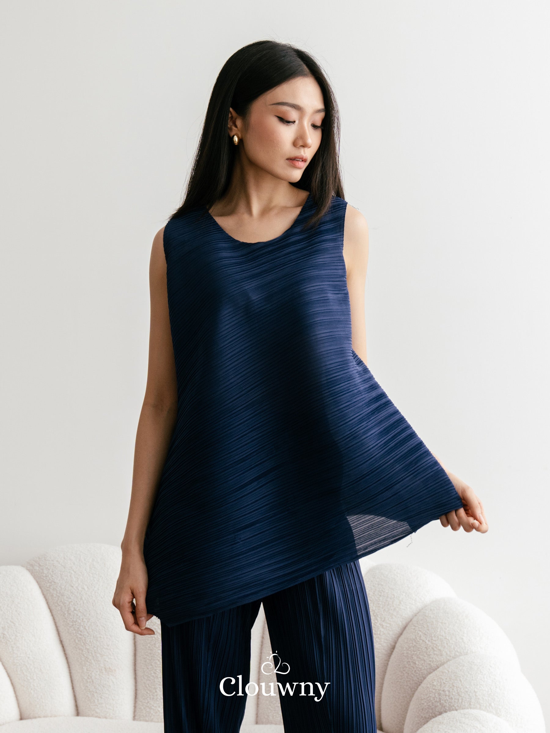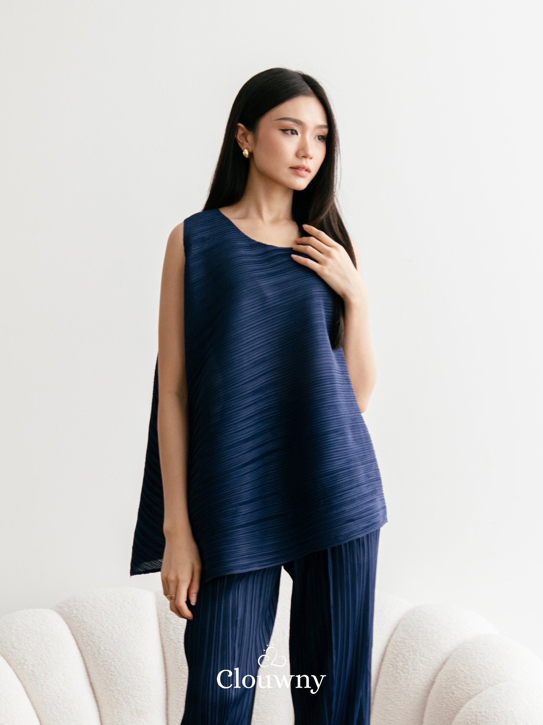 Olza Pleats Top - Navy