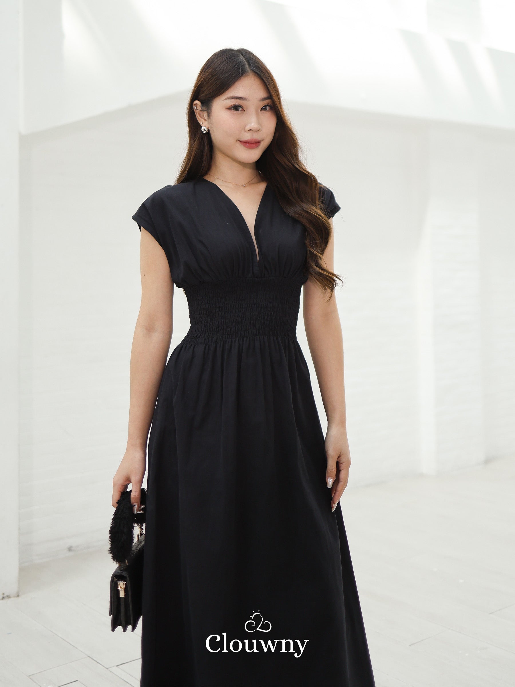 Orin Rubber Vneck Dress - Black