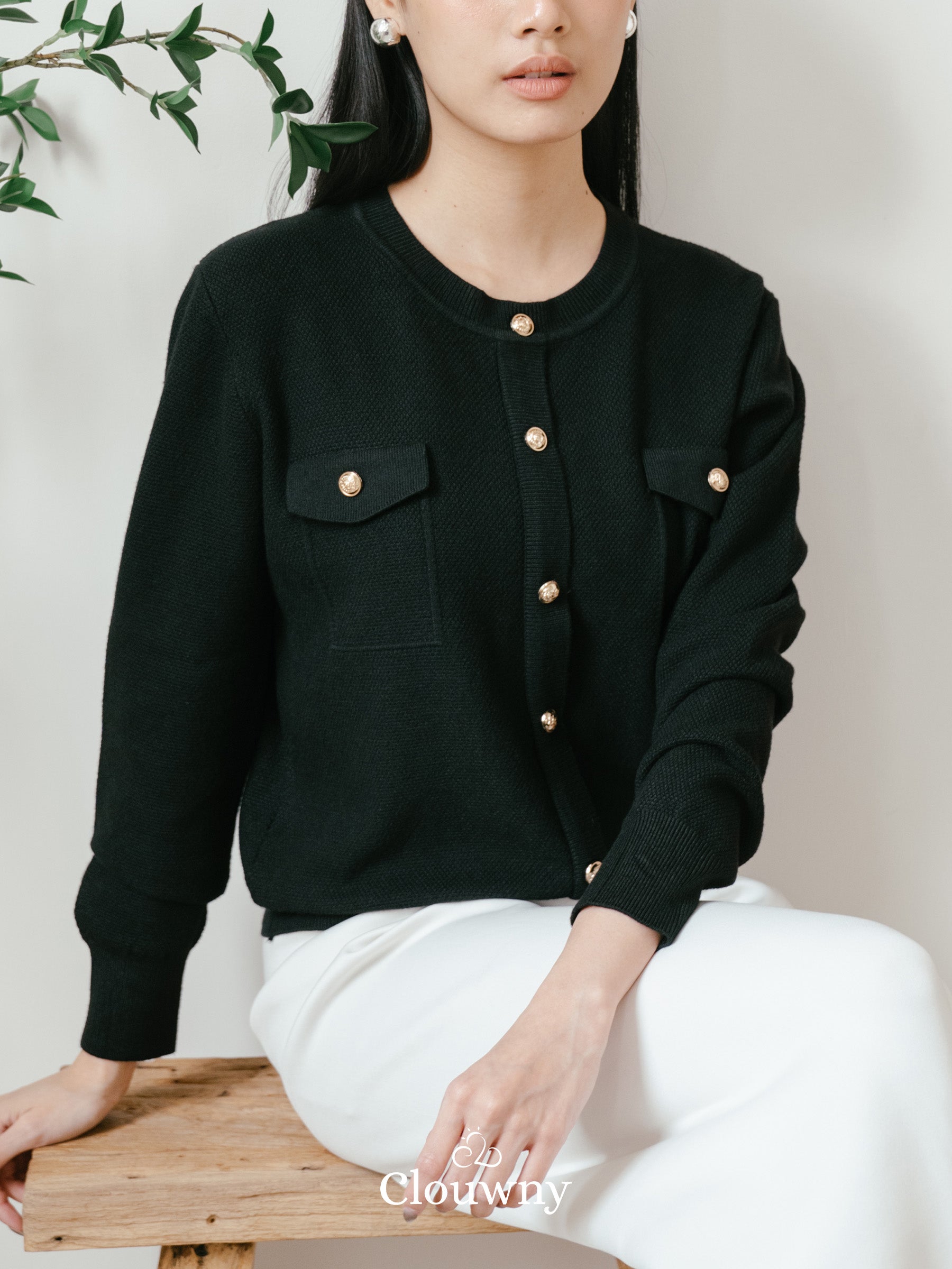 Pomp Button Top - Black