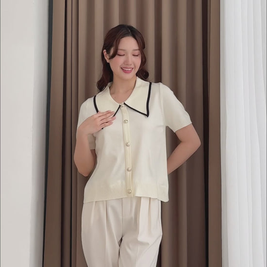 Add a touch of charm to your wardrobe with the Prisca Collar Knit Top. This playful knit features a cute collar that adds personality to your everyday look, while its soft fabric keeps you comfy all day long. Perfect for mixing and matching, it brings a fun twist to casual style with effortless ease.