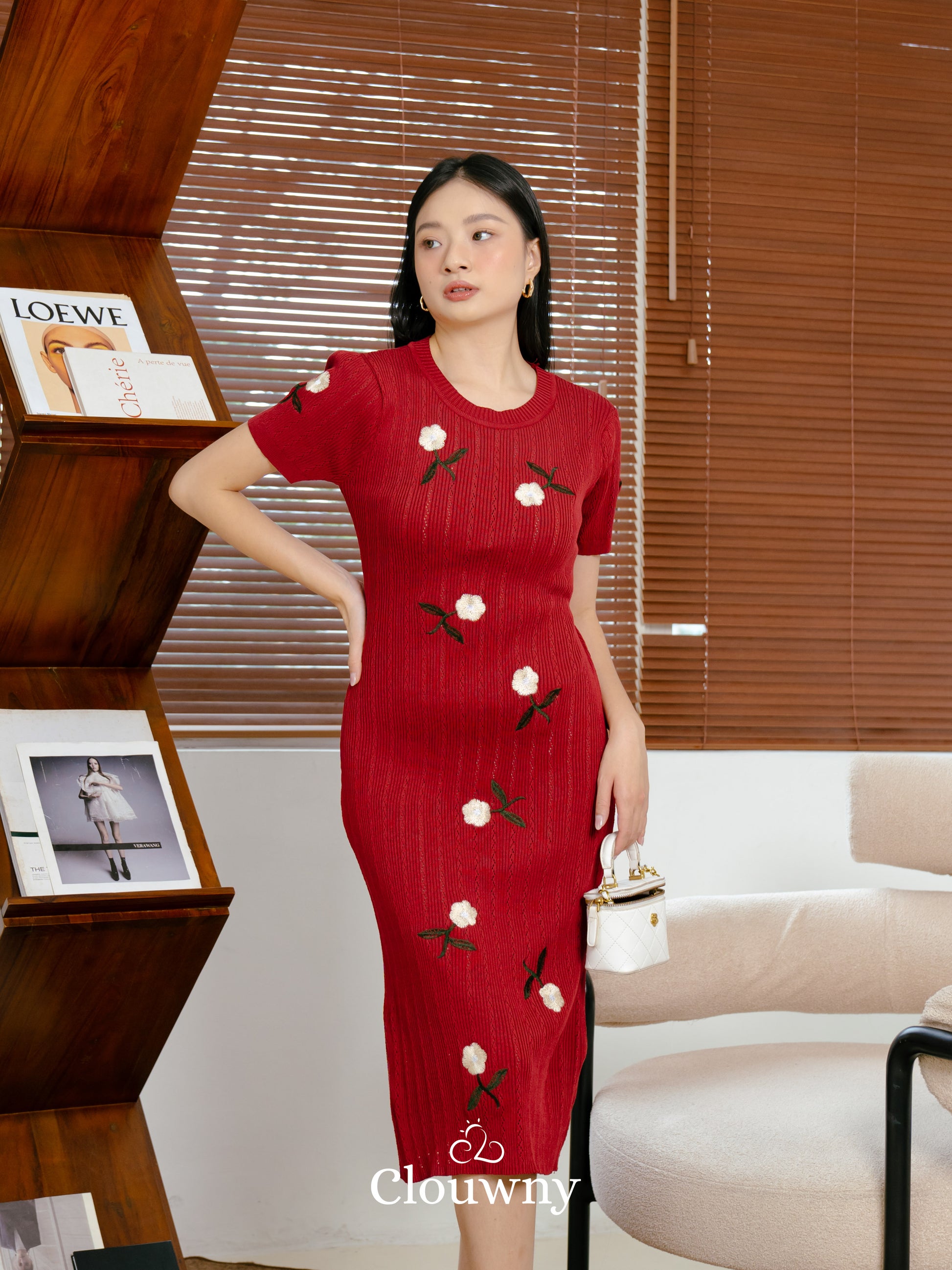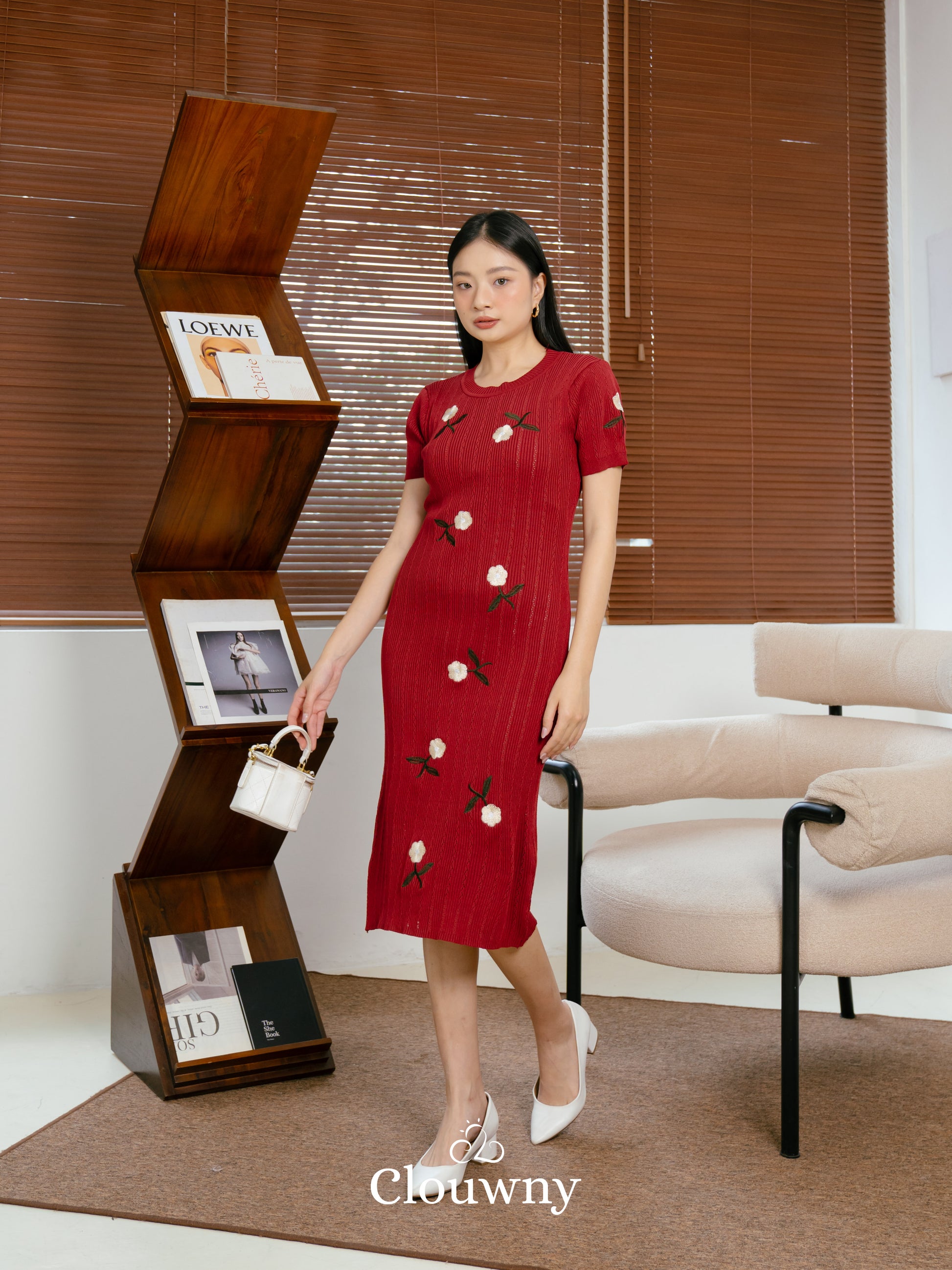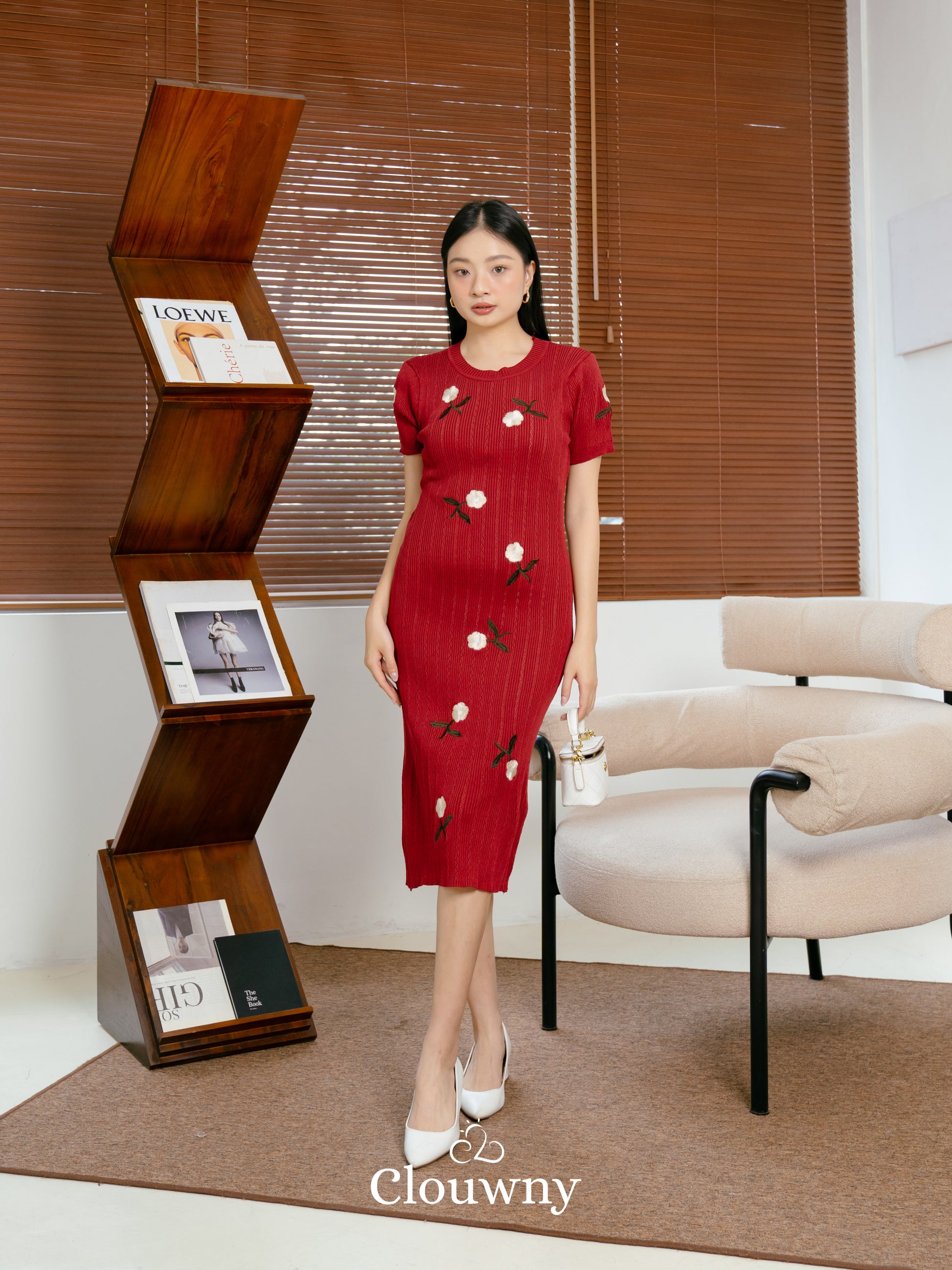Rose Embroidery Dress - Maroon