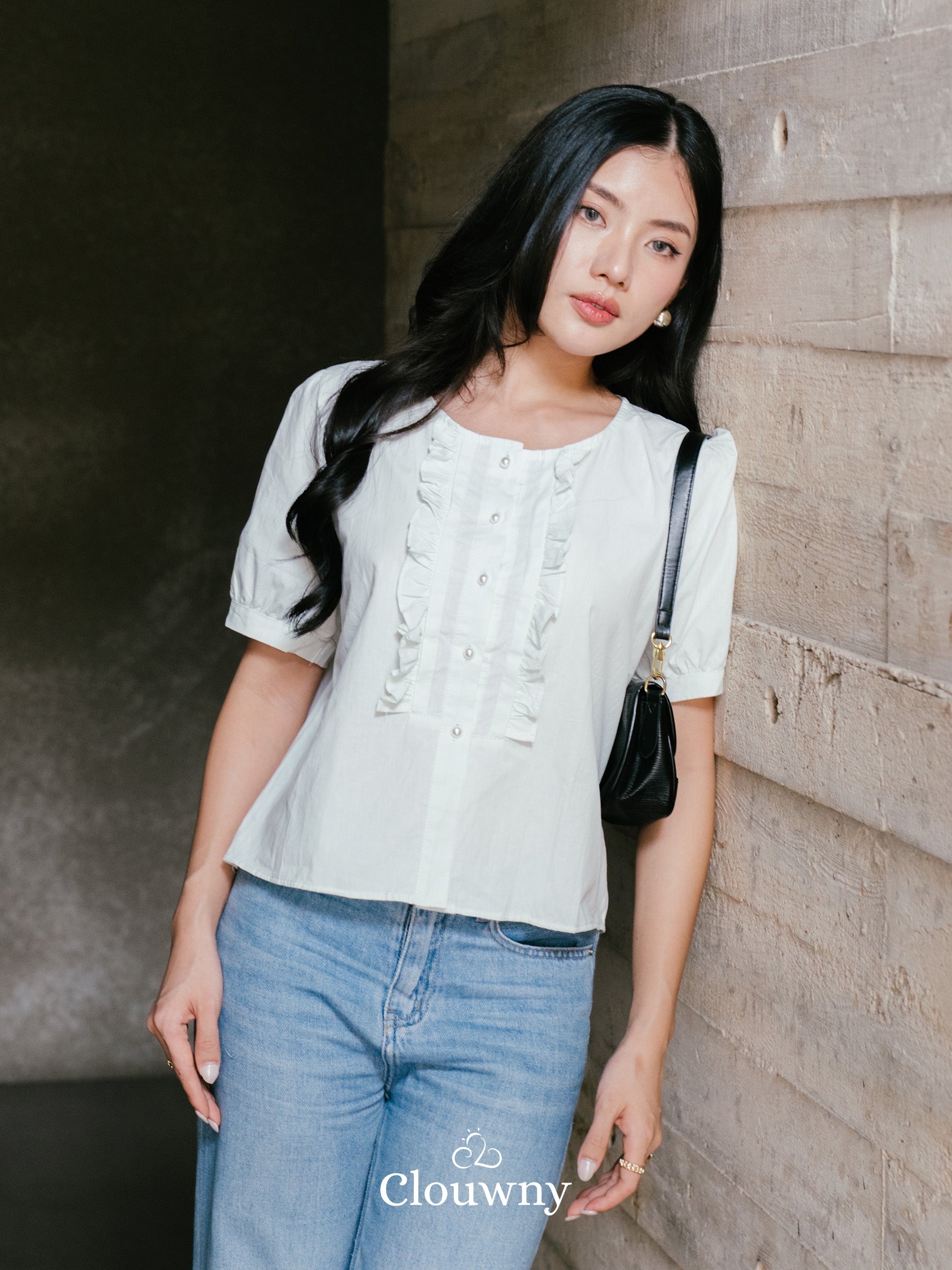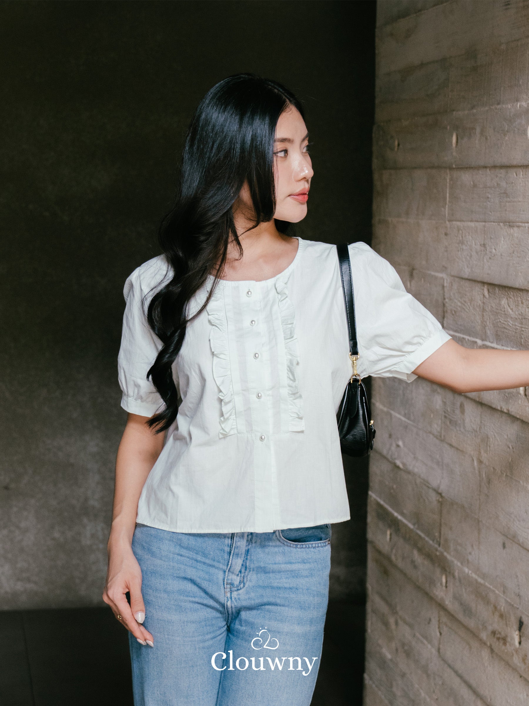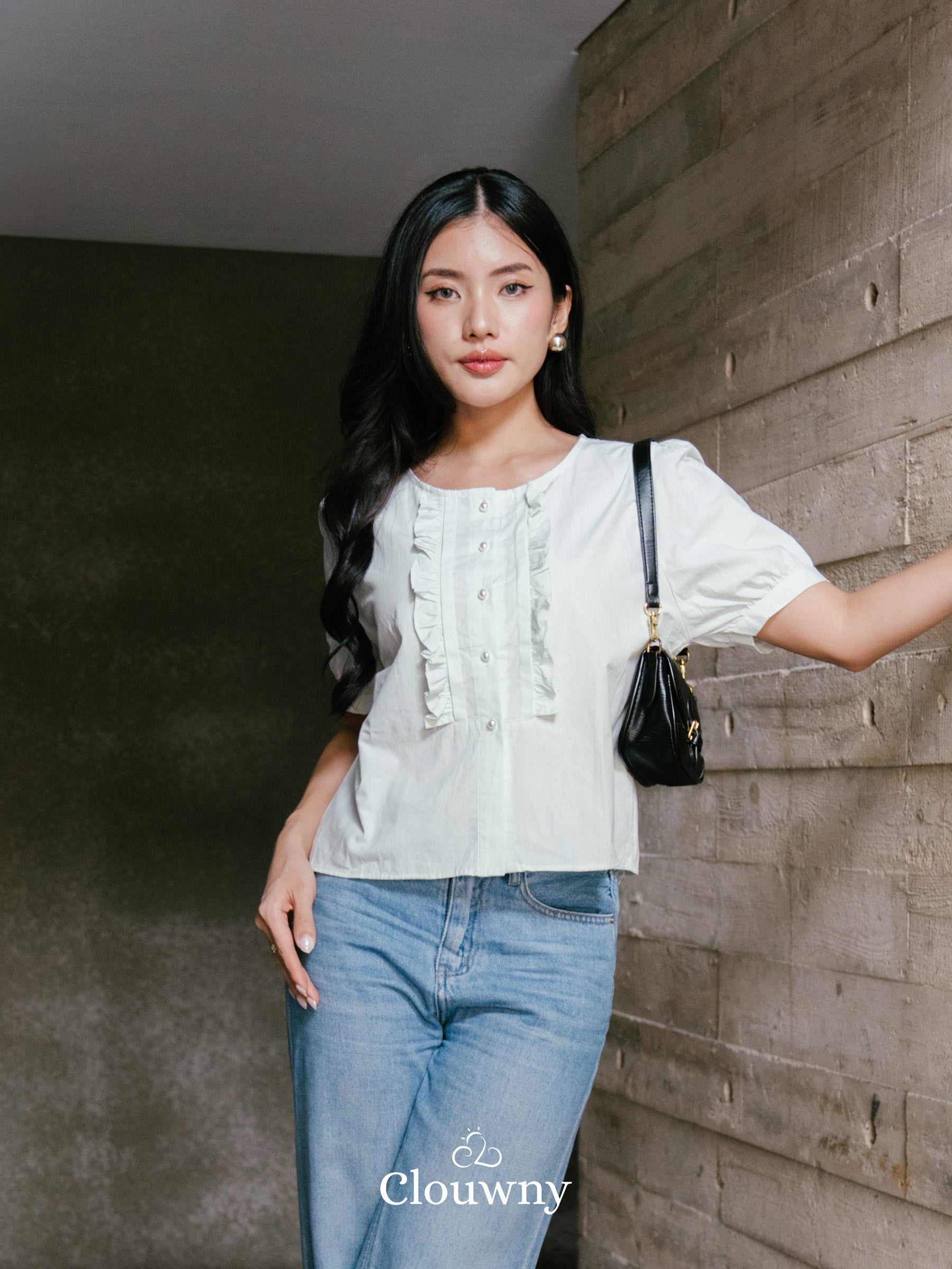 Add a playful touch to your wardrobe with the Sada Ruffle Cotton Blouse. Made from soft cotton, this blouse features delicate ruffles that add a feminine flair. Perfect for any occasion, this blouse will keep you comfortable and stylish.