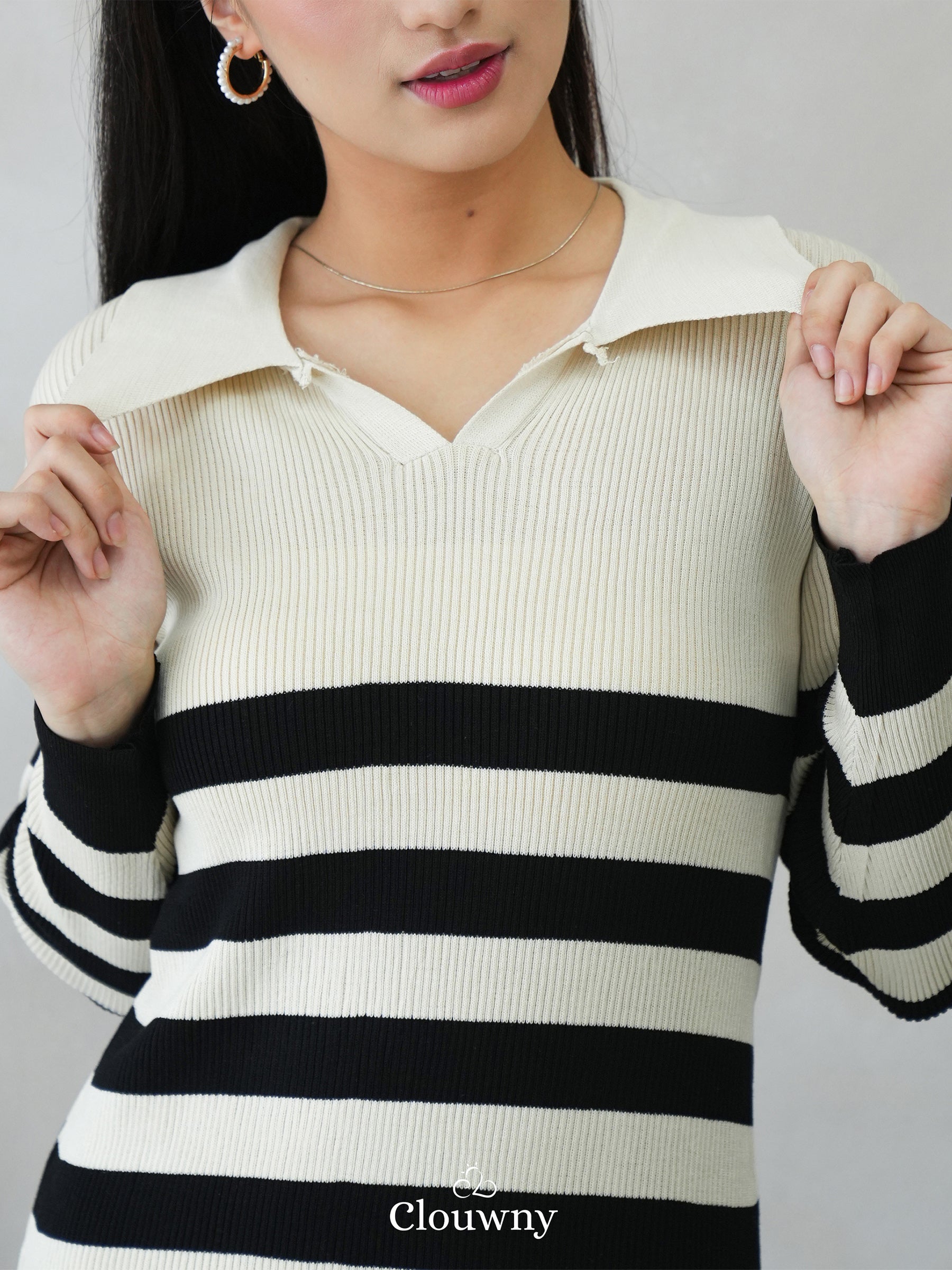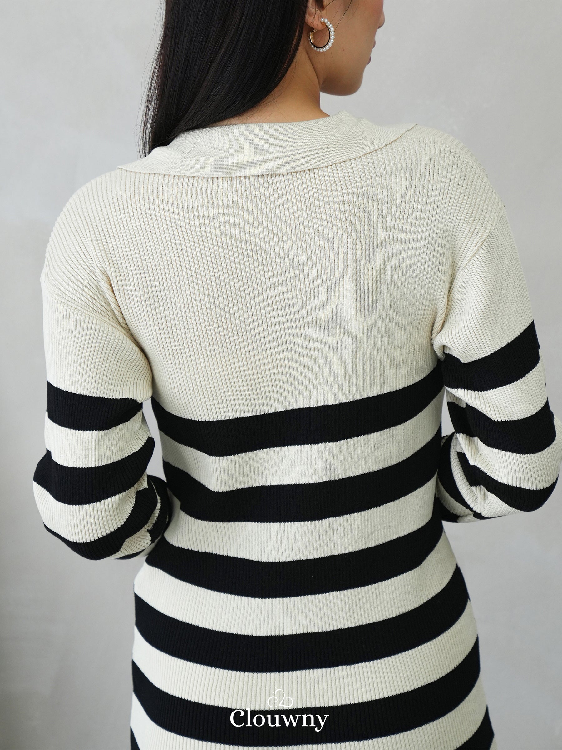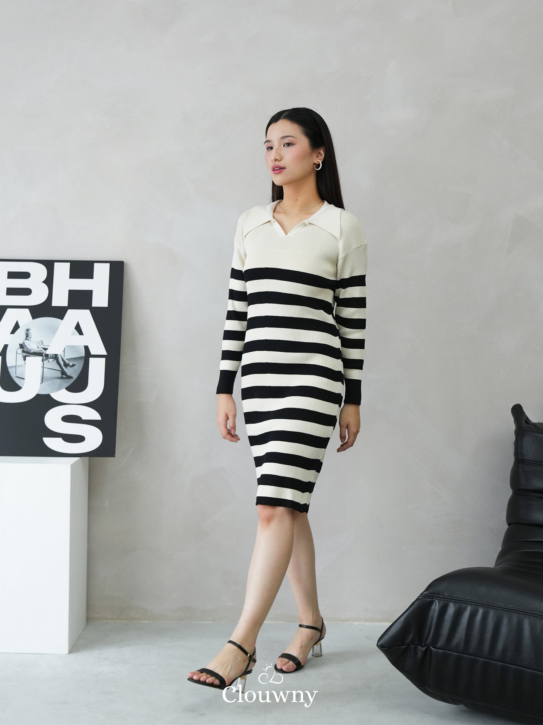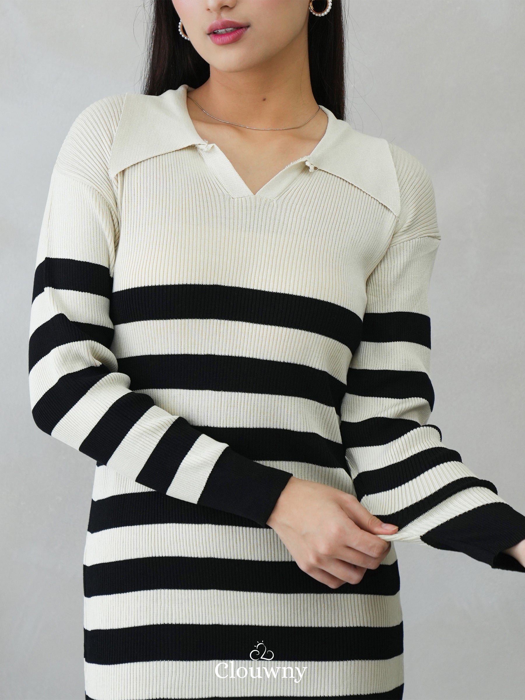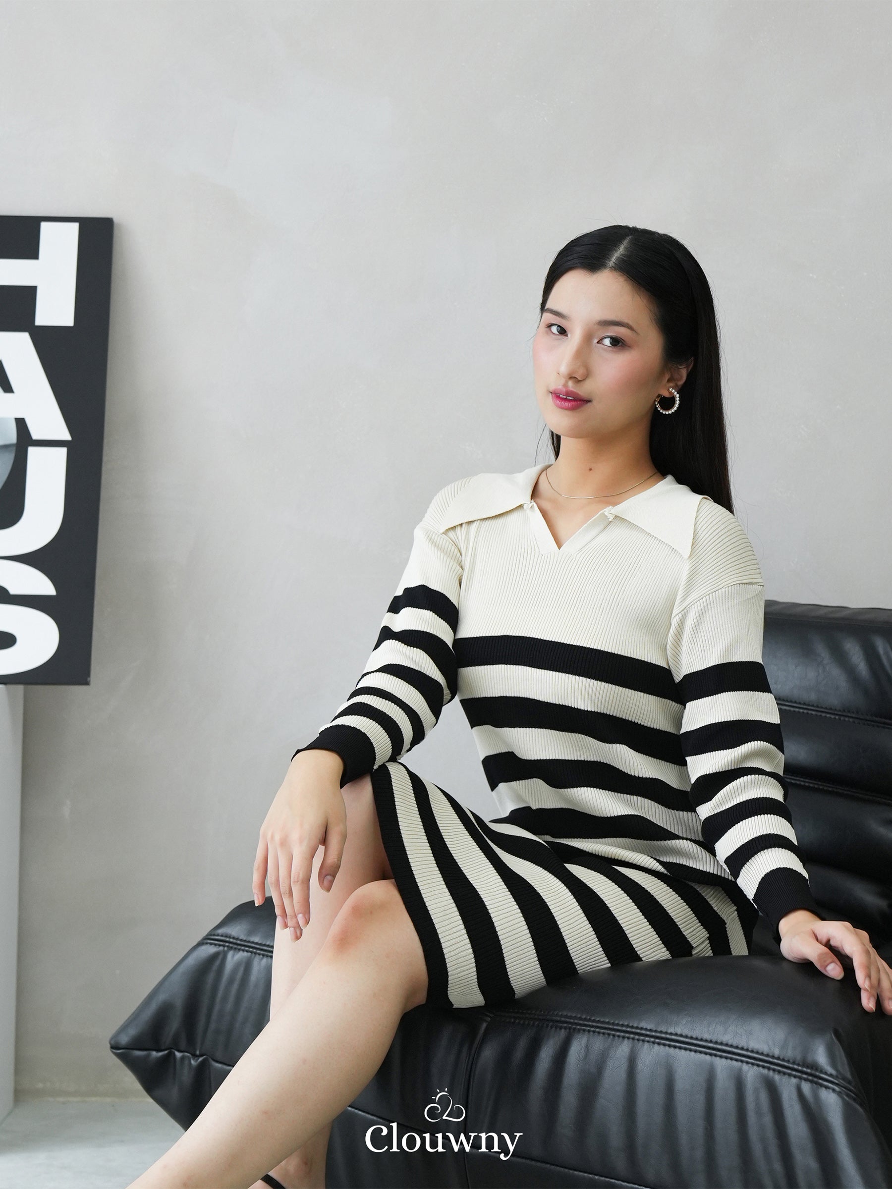 Introducing our Sera Stripes Knit Dress - the perfect combination of style and comfort! With its playful design and soft knit material, this dress will keep you feeling confident and stylish all day long. Its unique stripes add a fun touch to any outfit. Upgrade your wardrobe with our Sera Stripes Knit Dress now.