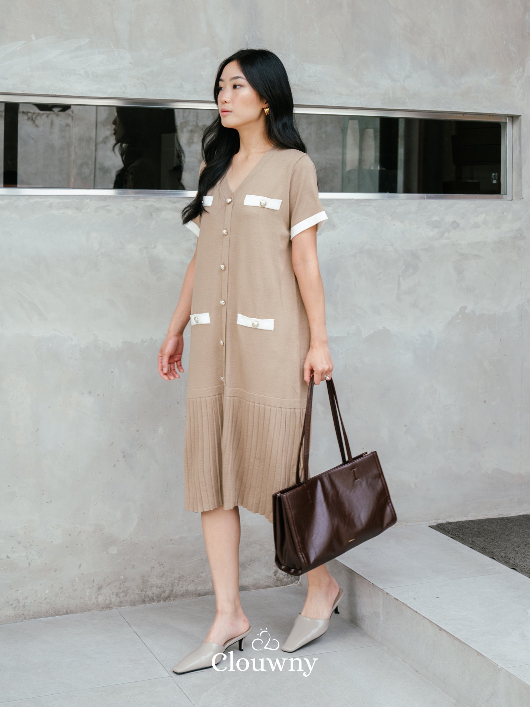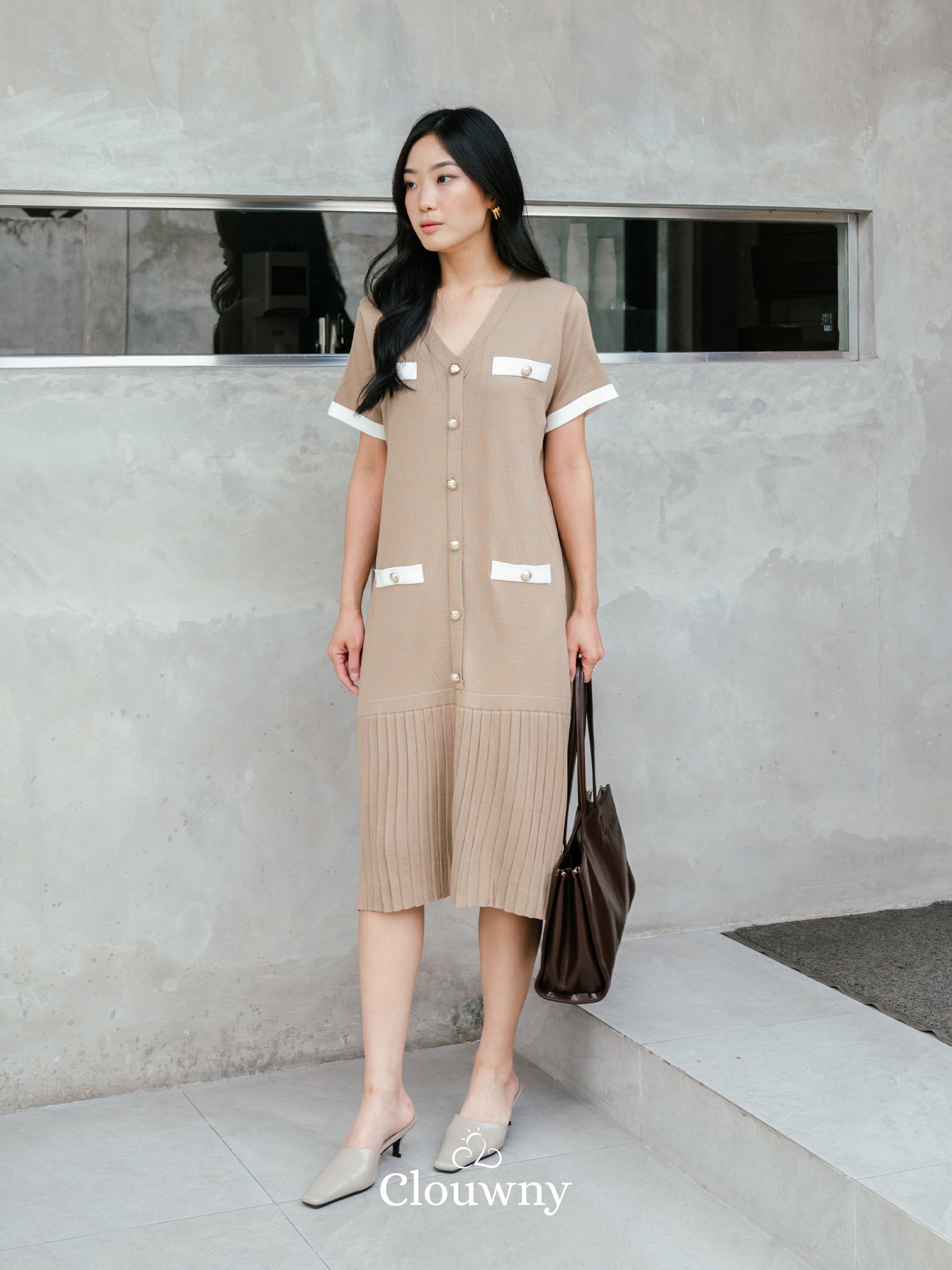 Get ready to turn heads in our Sherra Button Knit Dress! This versatile and stylish piece features a classic beige color and a comfortable knit fabric. The buttons along the front add a touch of sophistication, making this dress perfect for any occasion. Be stylish and effortless in our Sherra dress!