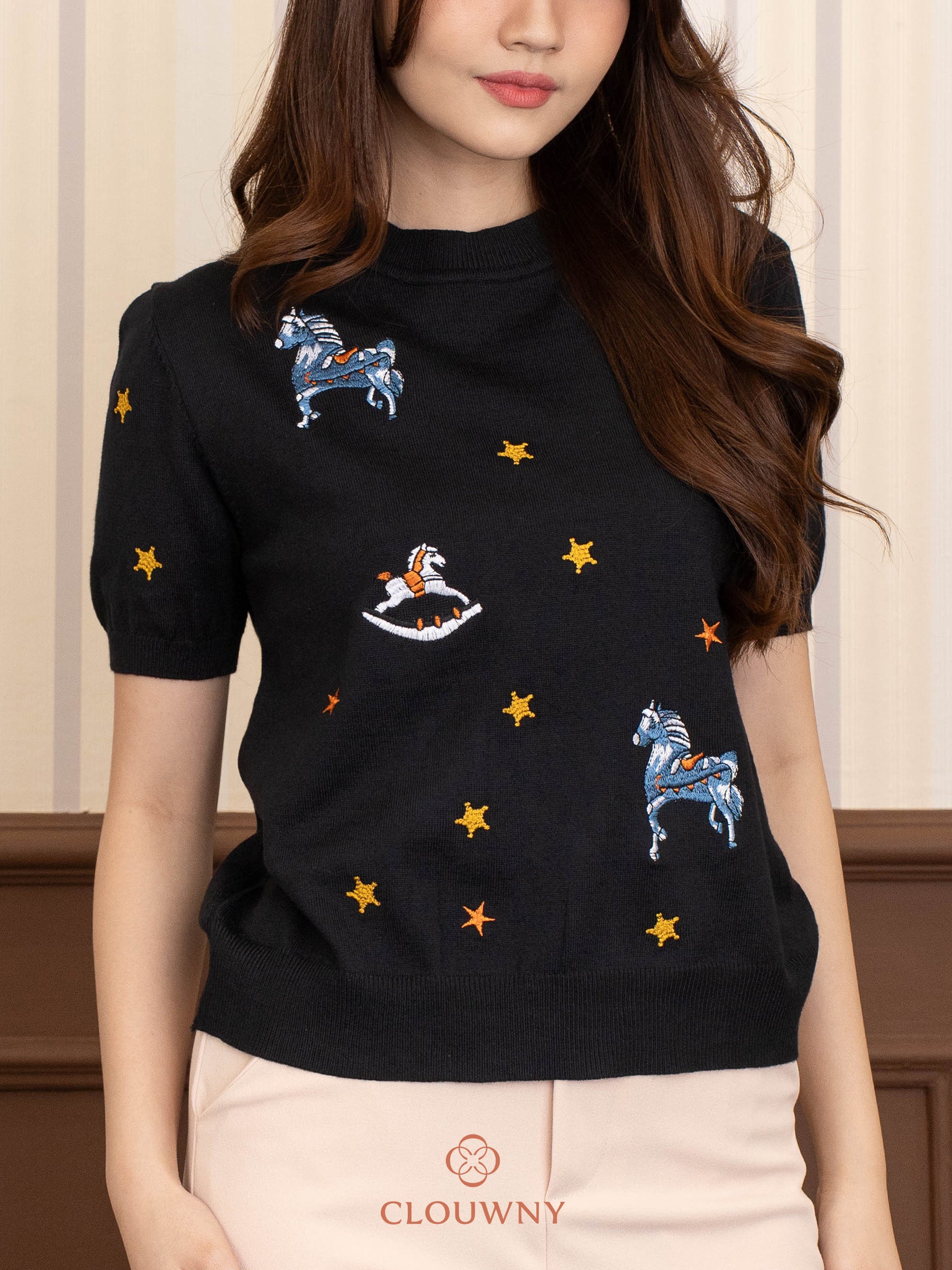 Elevate your everyday style with this charming Star Horse Knit Top. Featuring a playful horse motif with star accents, this cozy knit piece combines comfort with contemporary flair. Perfect for casual outings or relaxed weekends, it pairs effortlessly with your favorite jeans or skirts. Crafted for a flattering fit, this versatile top brings a touch of whimsy to your wardrobe.