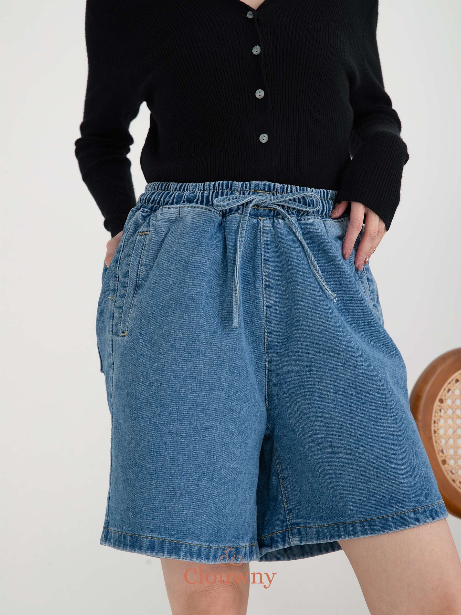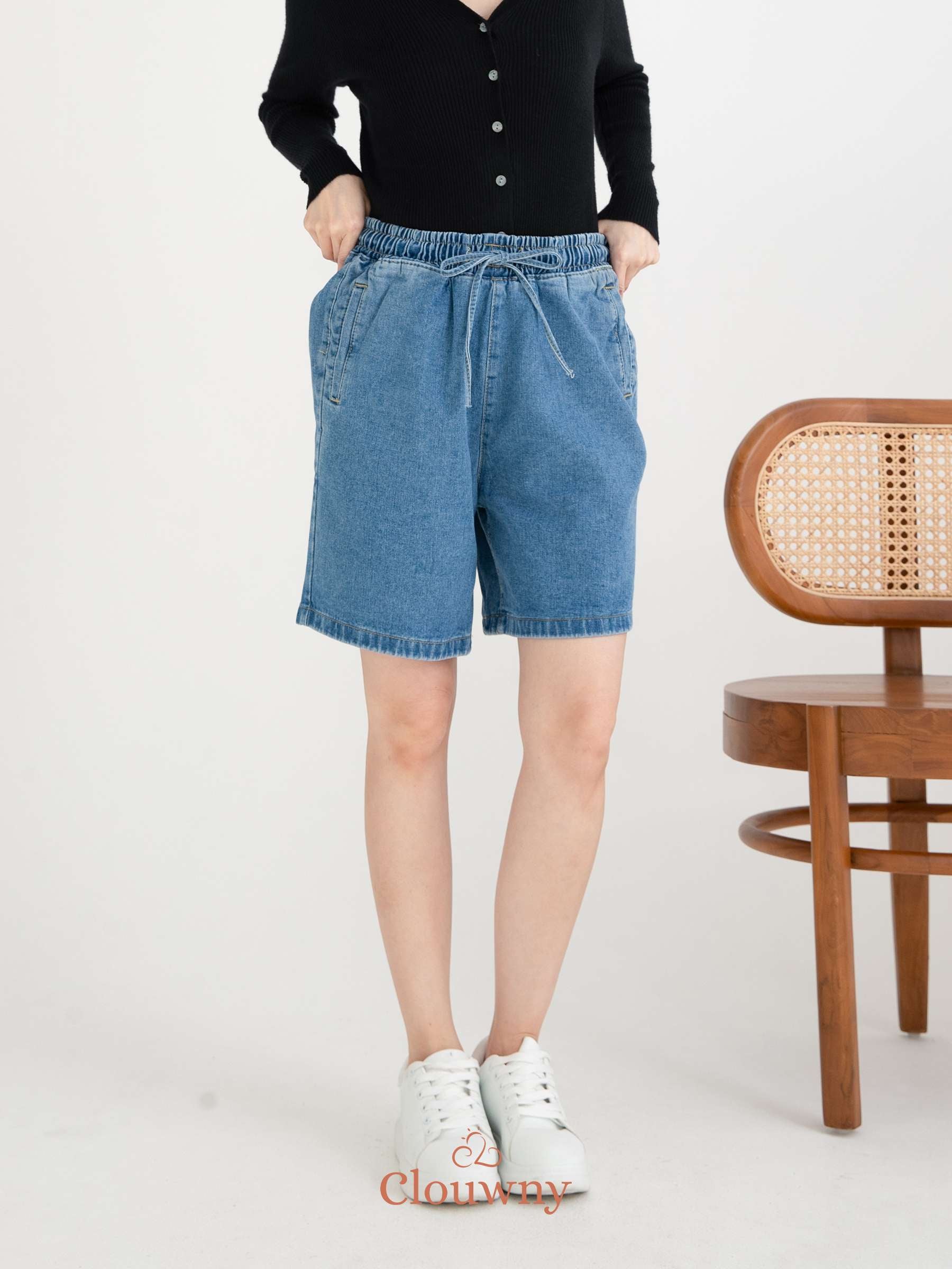 Tia Denim Midi Short Pants - Light Blue