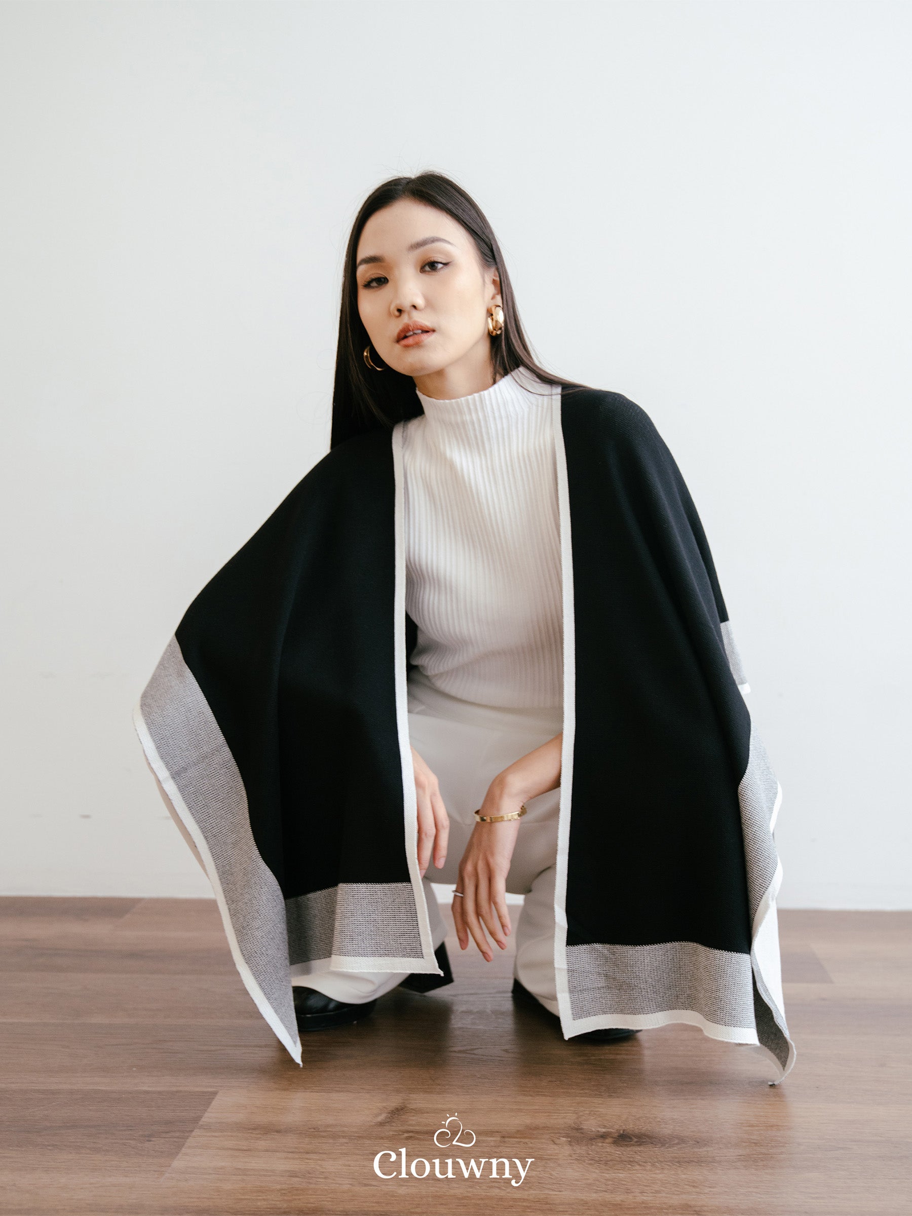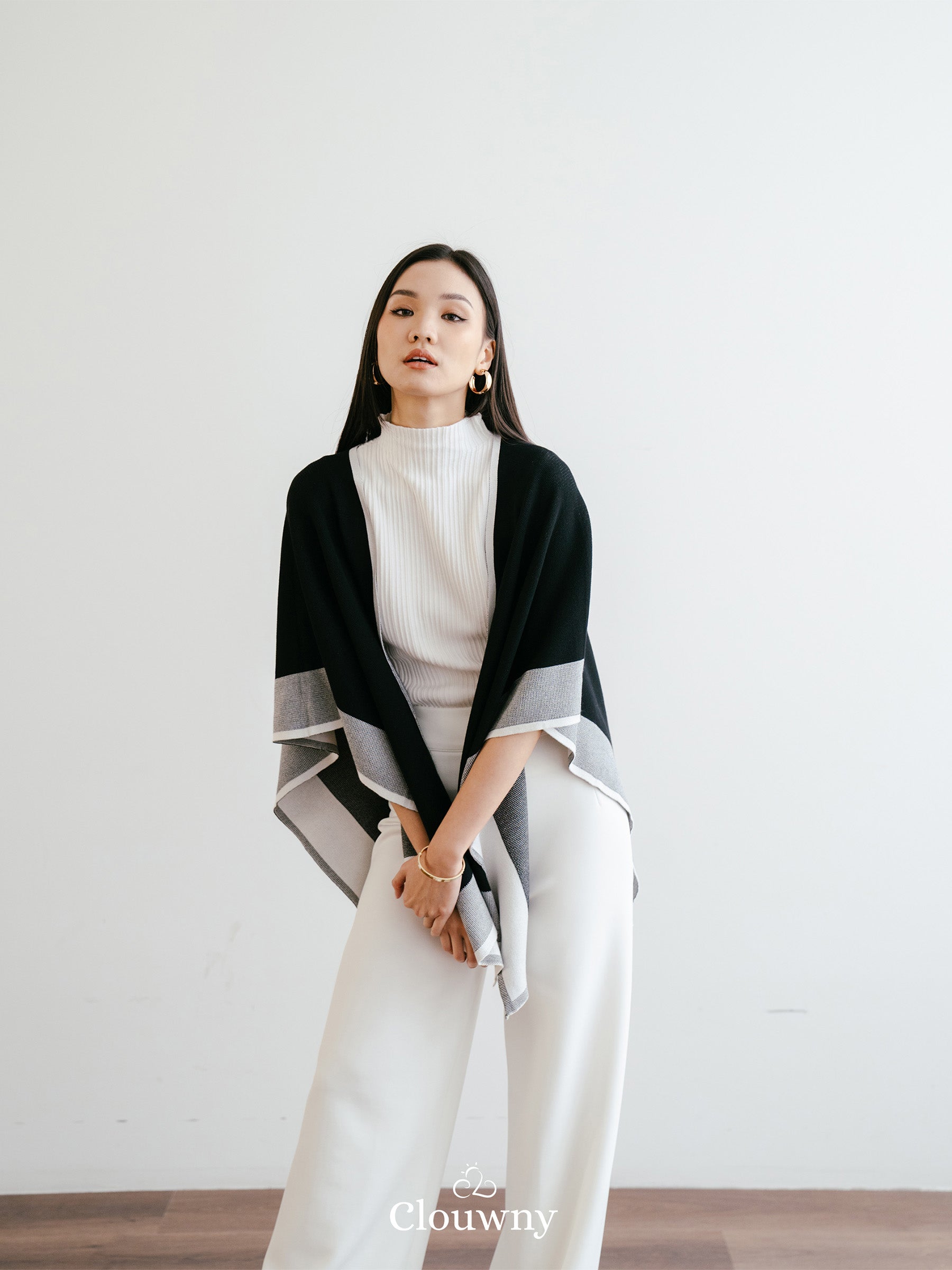 Stay stylish and warm with our Two Tone Scarf Outer in sleek black. The perfect addition to any outfit, this scarf features a unique two tone design that adds a touch of personality. Keep cozy this season with this must-have accessory.