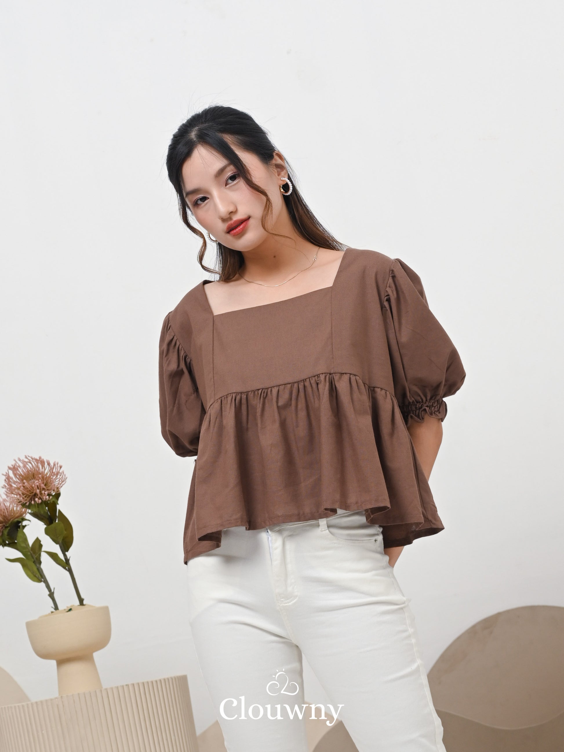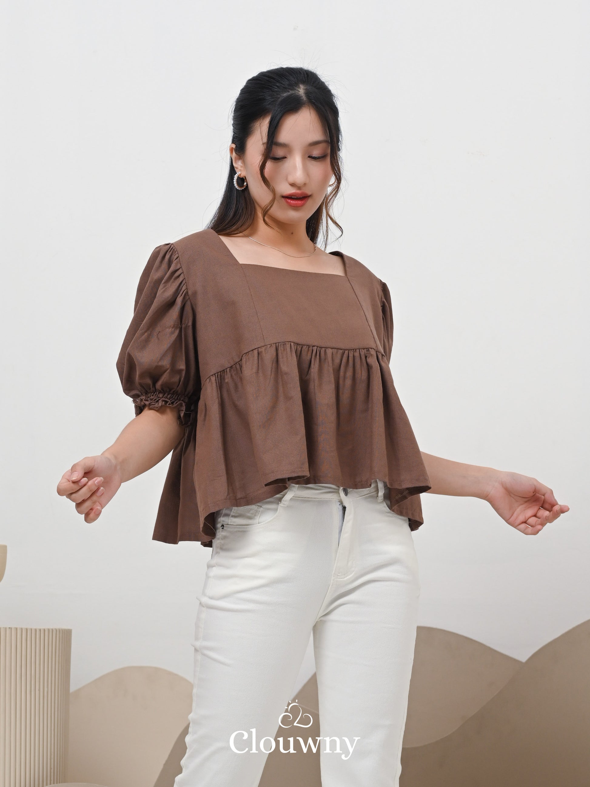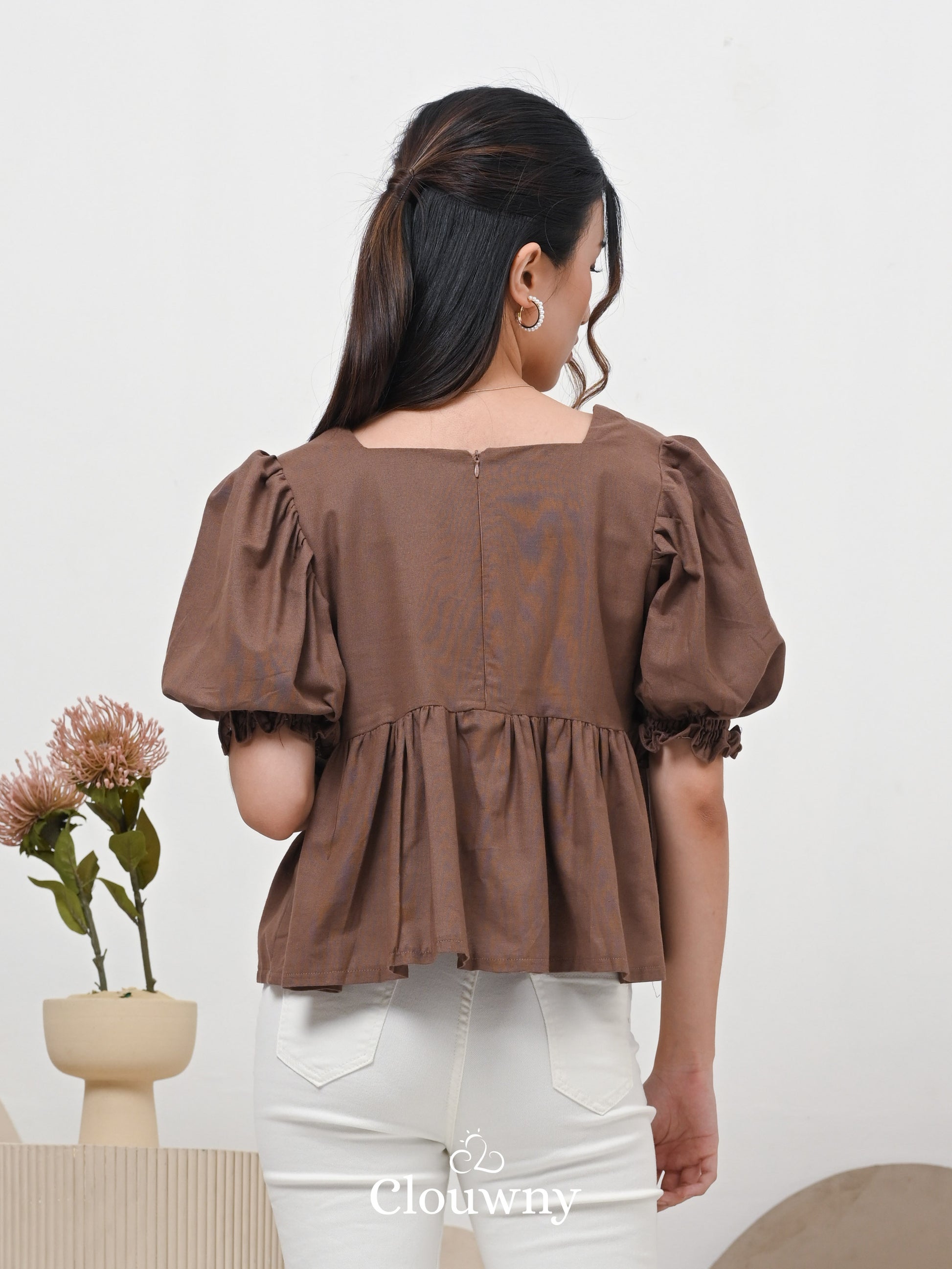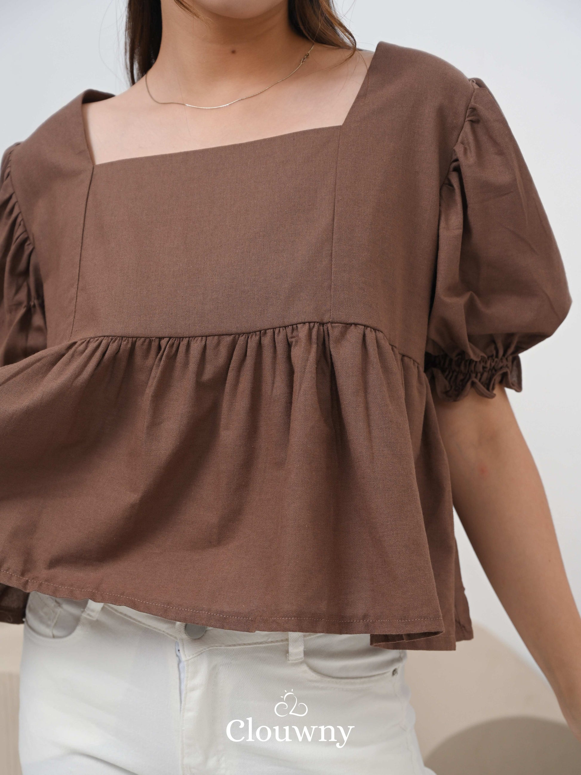 Una Square Blouse Top - Coffee