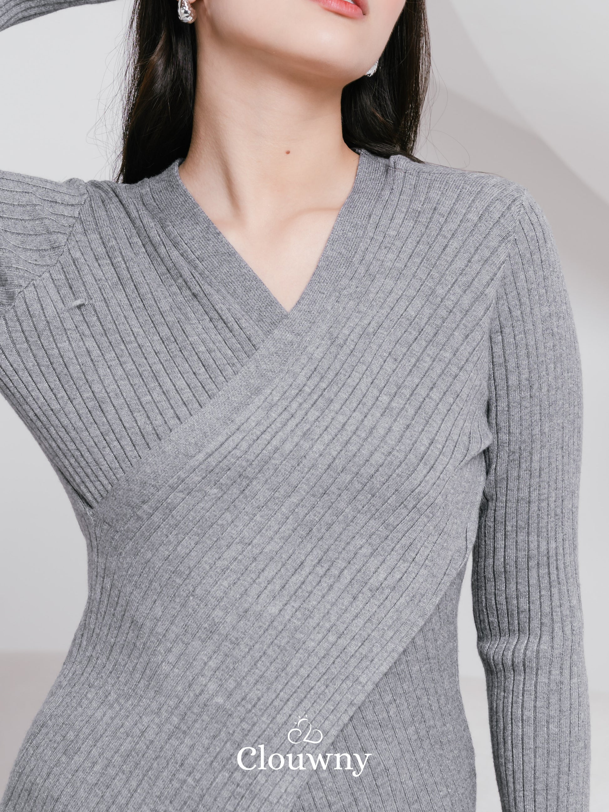 Viera Vneck Knit Longsleeve - Grey