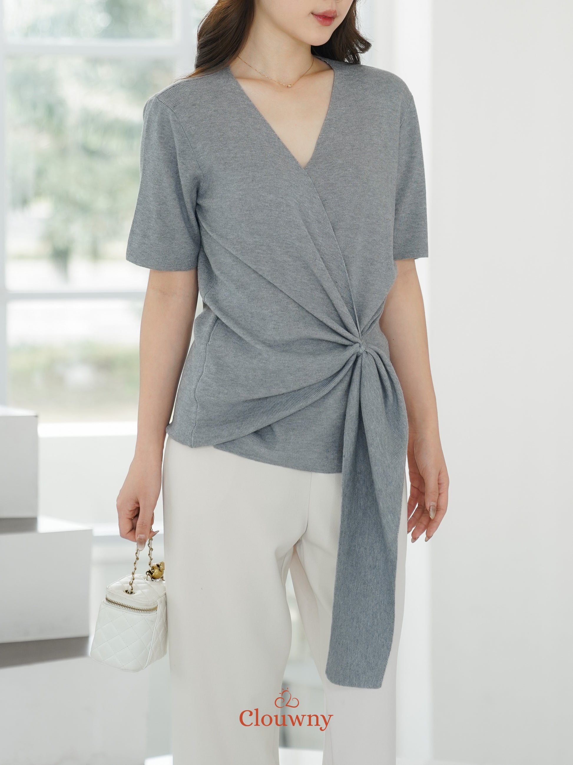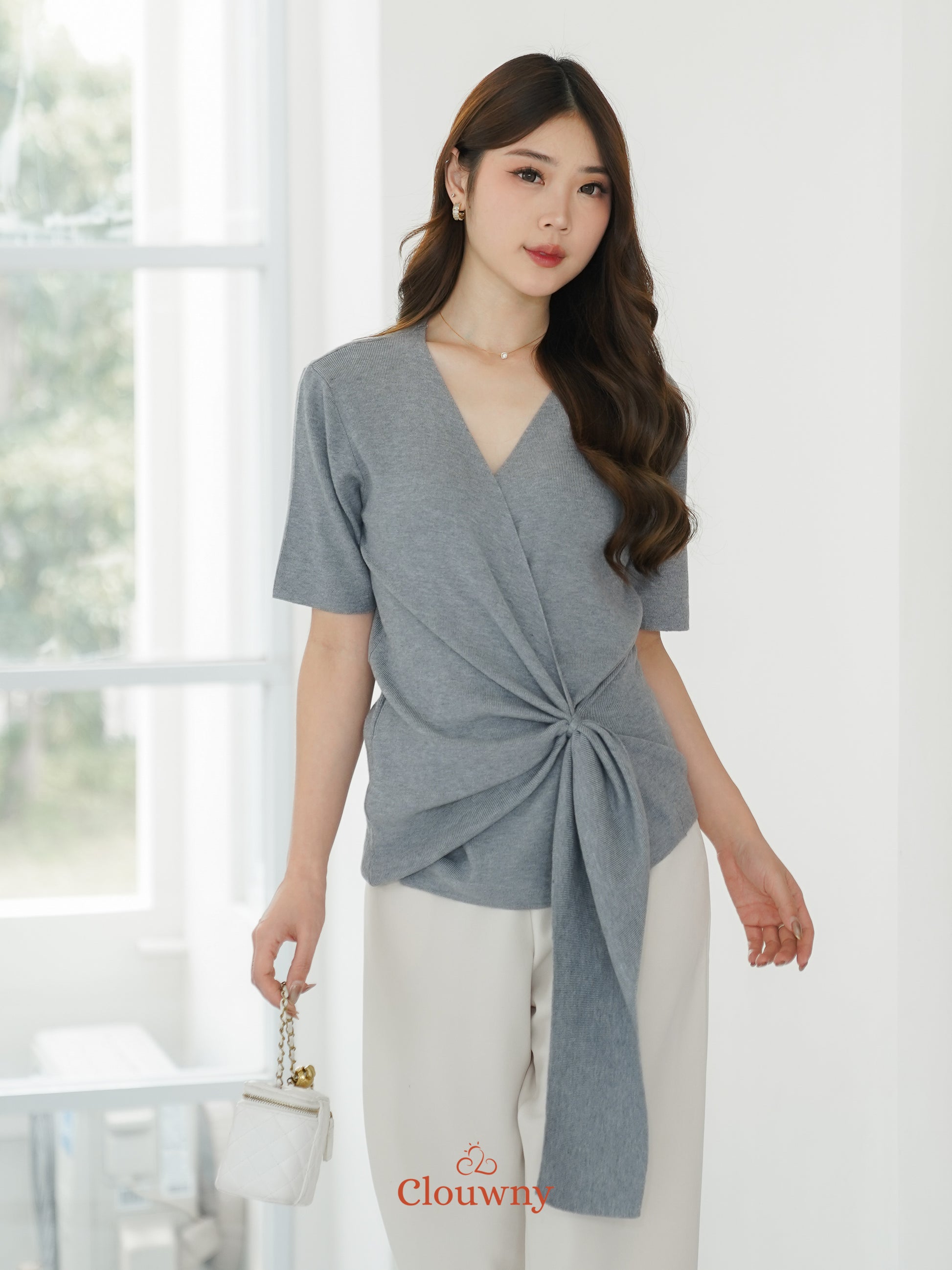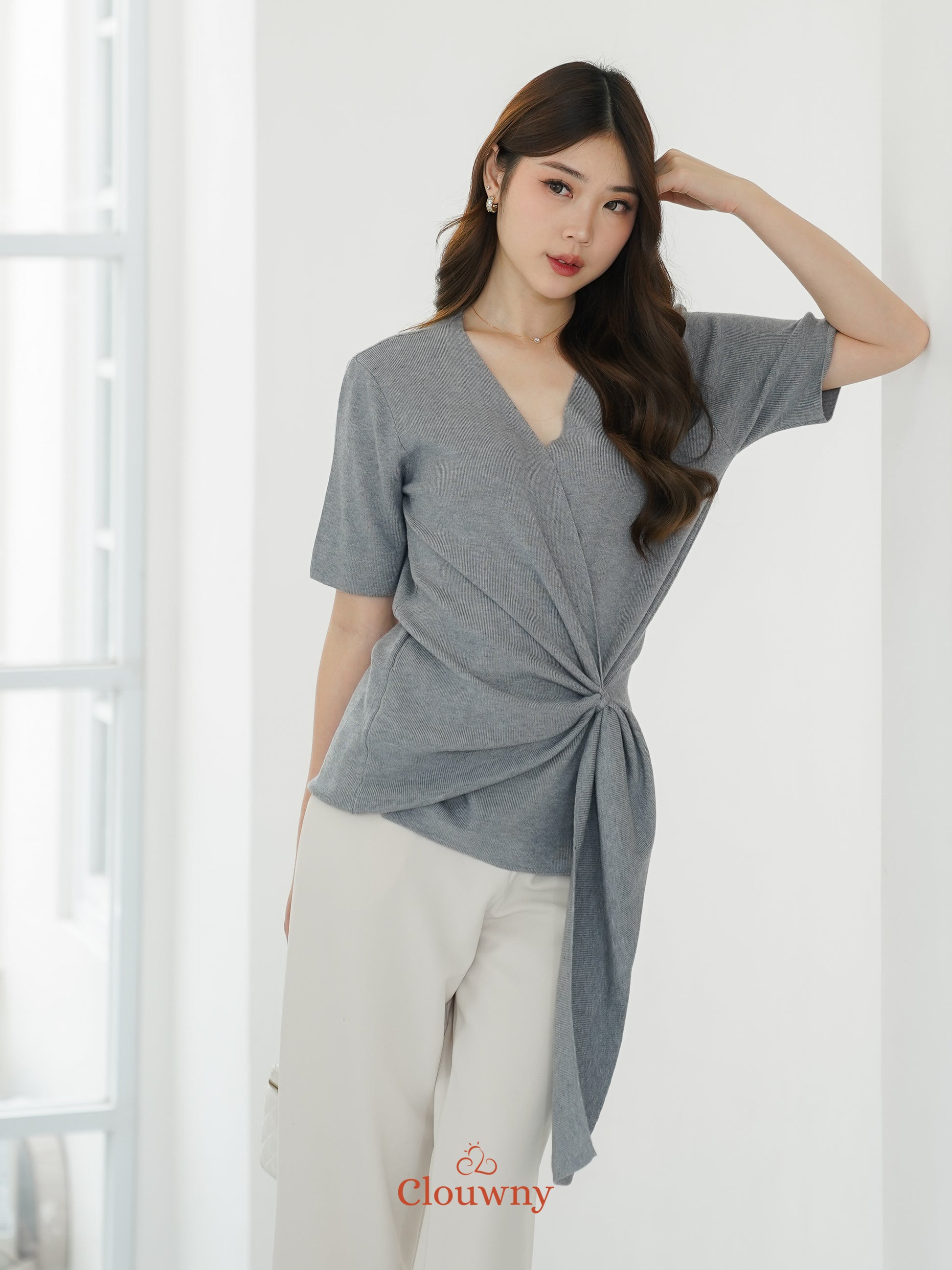 Yala Bow Knit Top - Grey