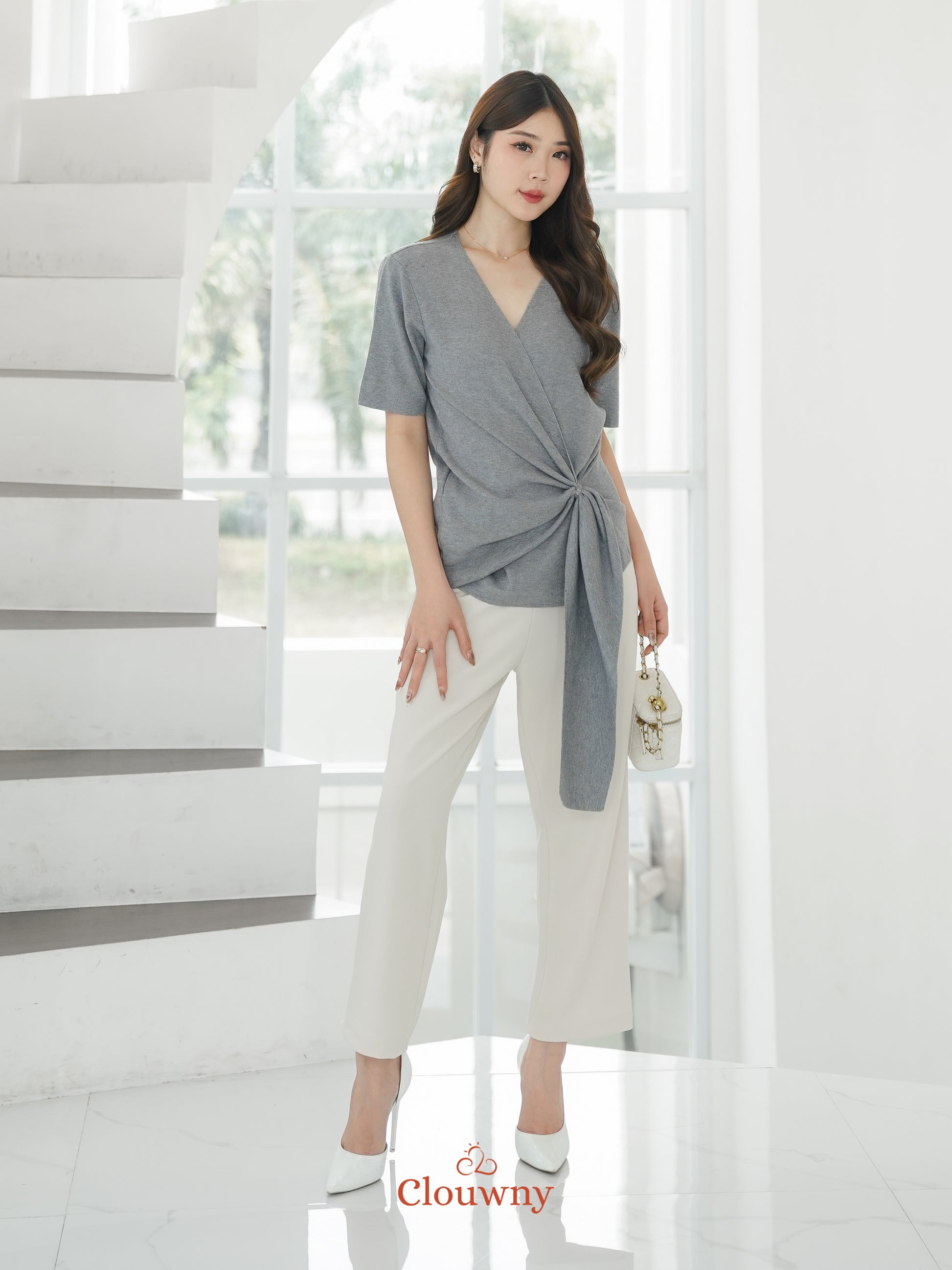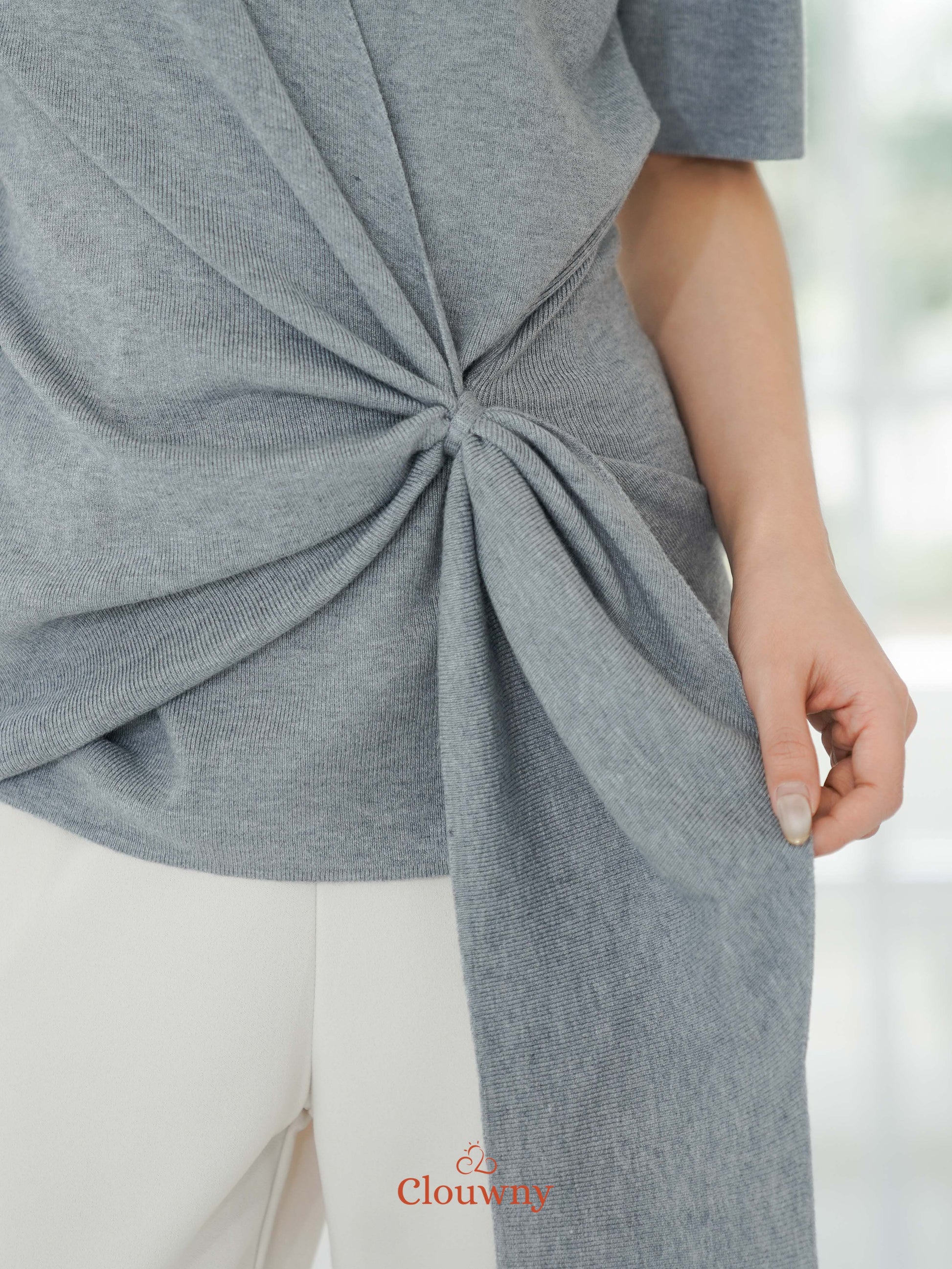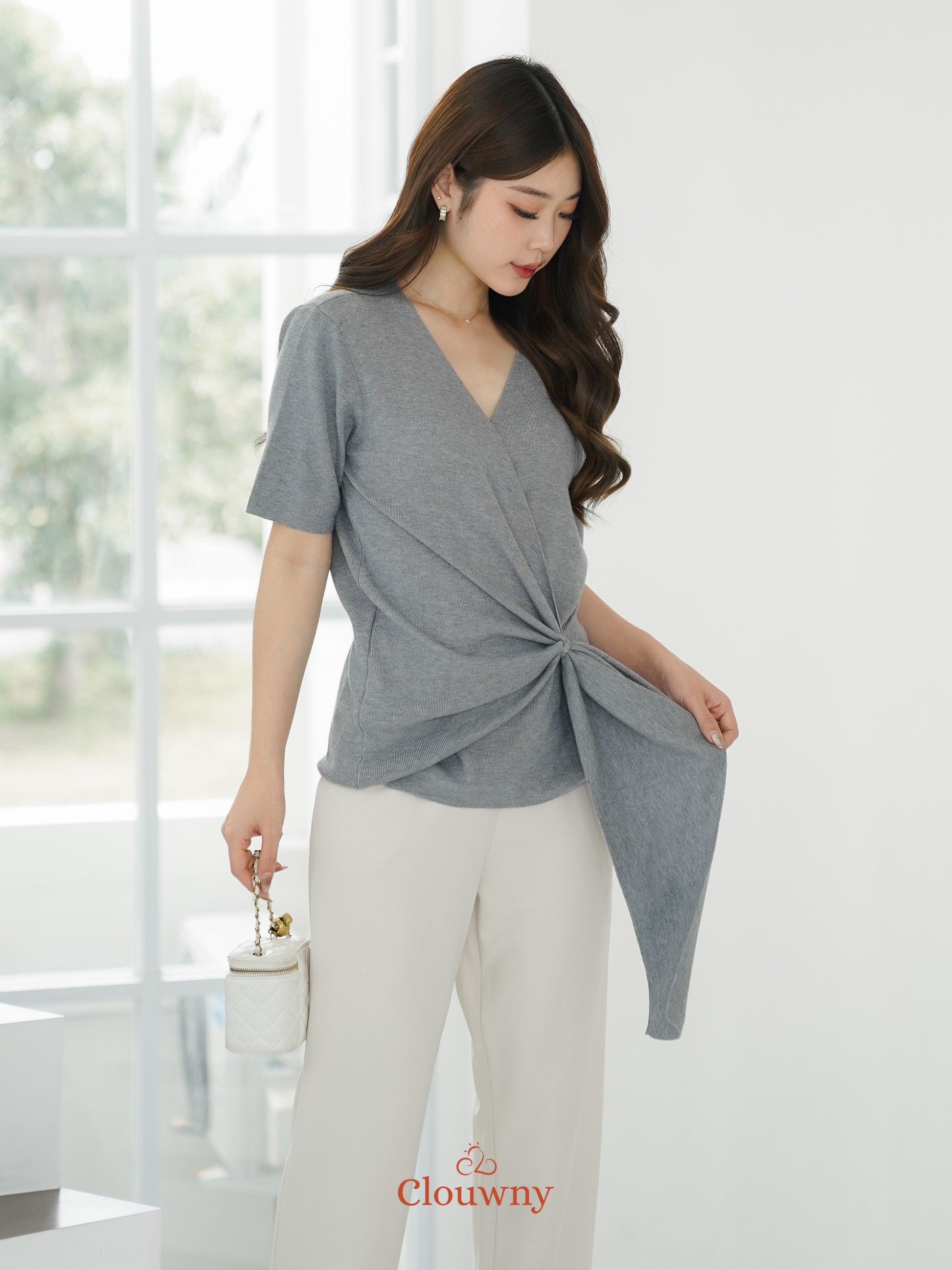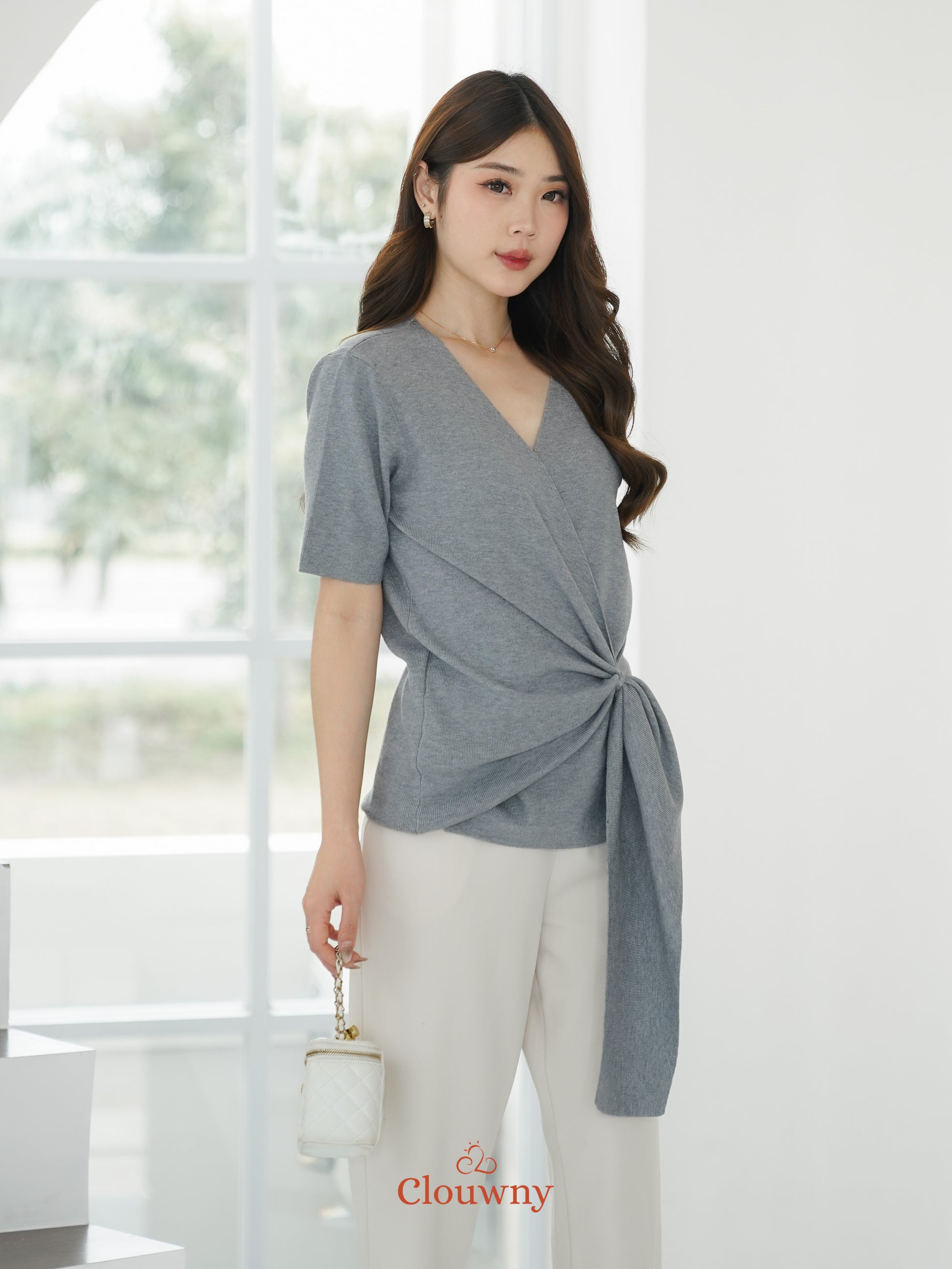 Yala Bow Knit Top - Grey